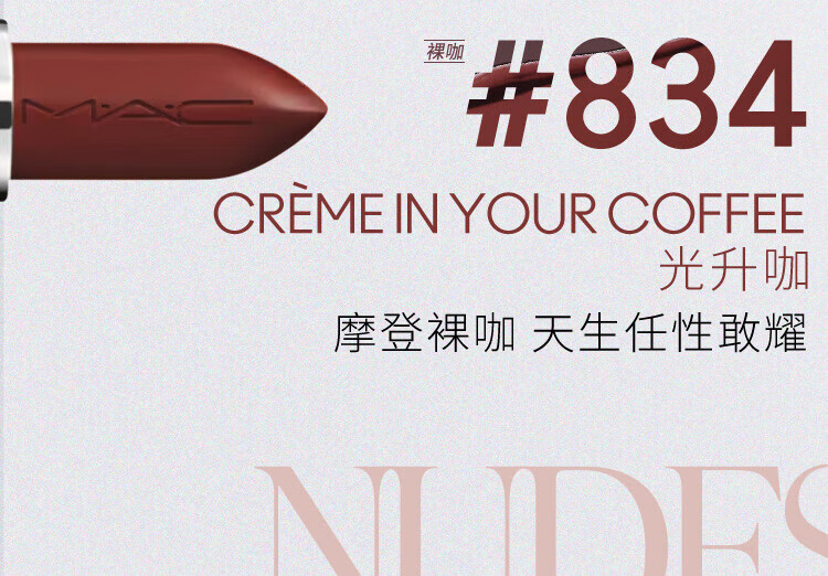 【99成新】M.A.C魅可全新轻缎光大子弹头mac口红#834光升咖 教师节礼物 生日礼物