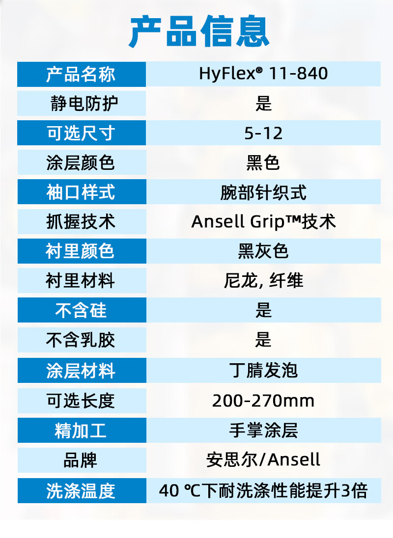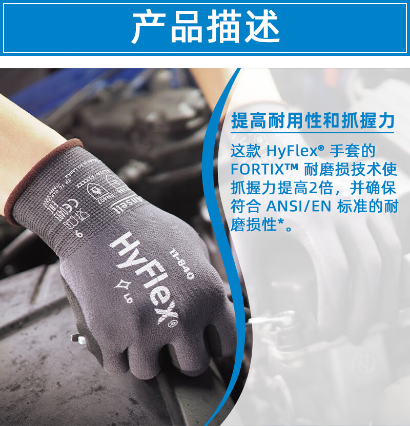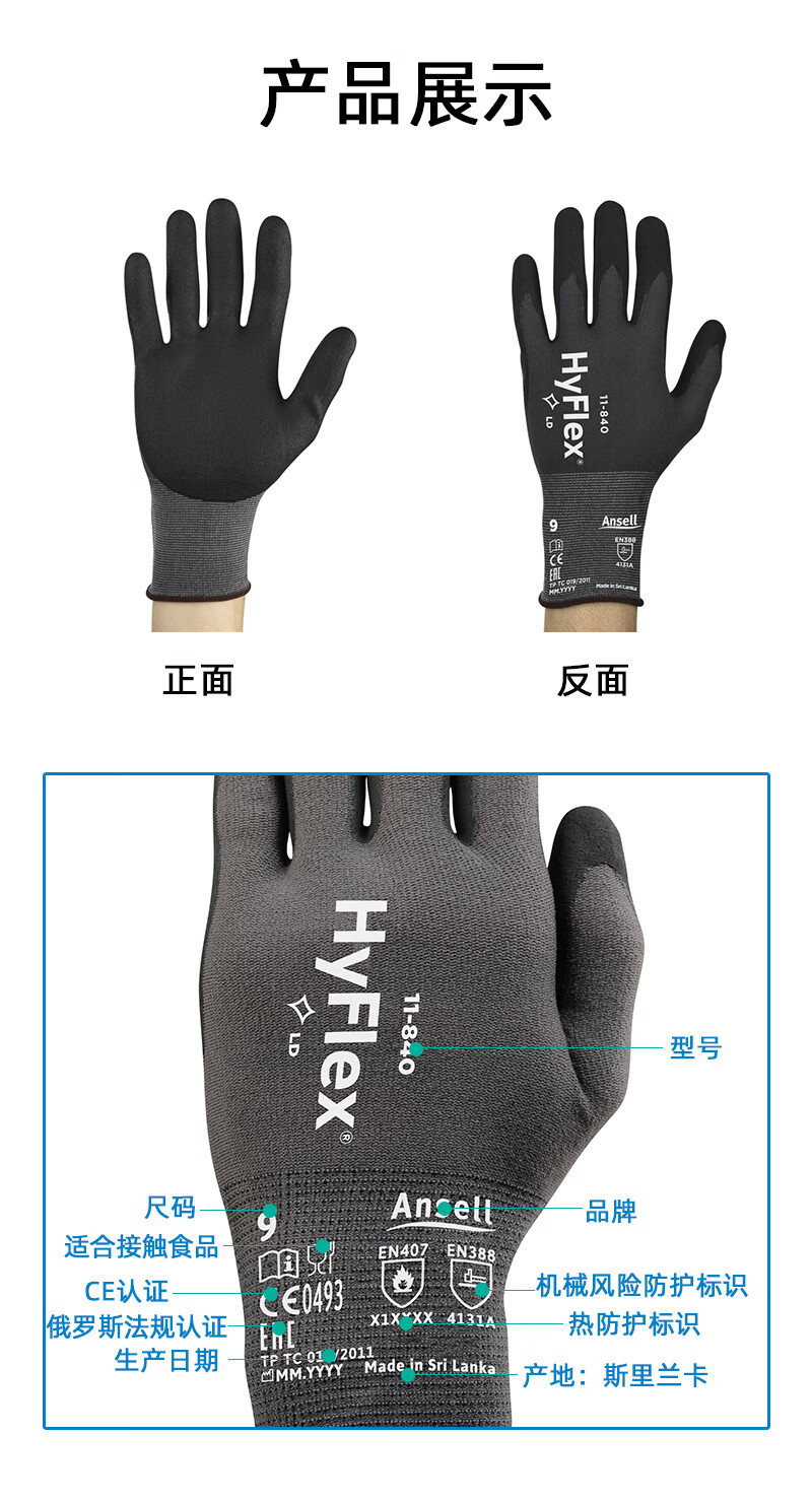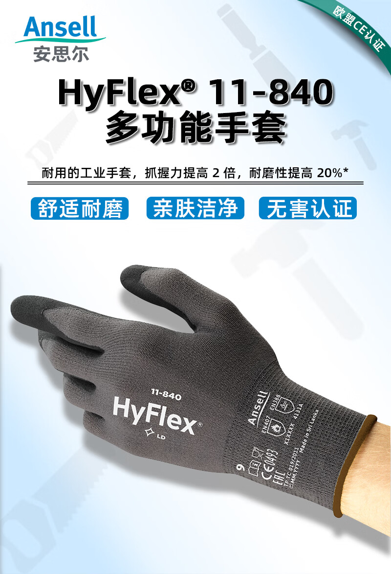 Ansell gants de protection revêtement en mousse de nitrile antidérapants, résistants à l'usure et aux déchirures pour le traitement et l'entretien des machines de meulage, gants de protection du travail 11-840 (1 paire) 9/L