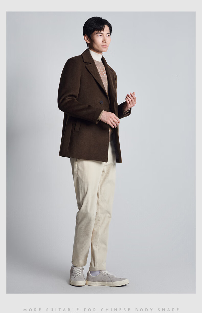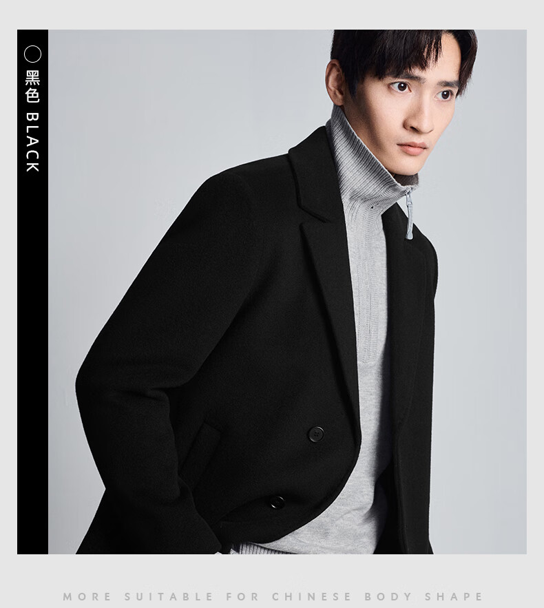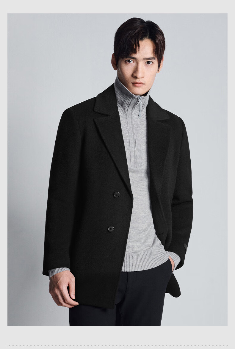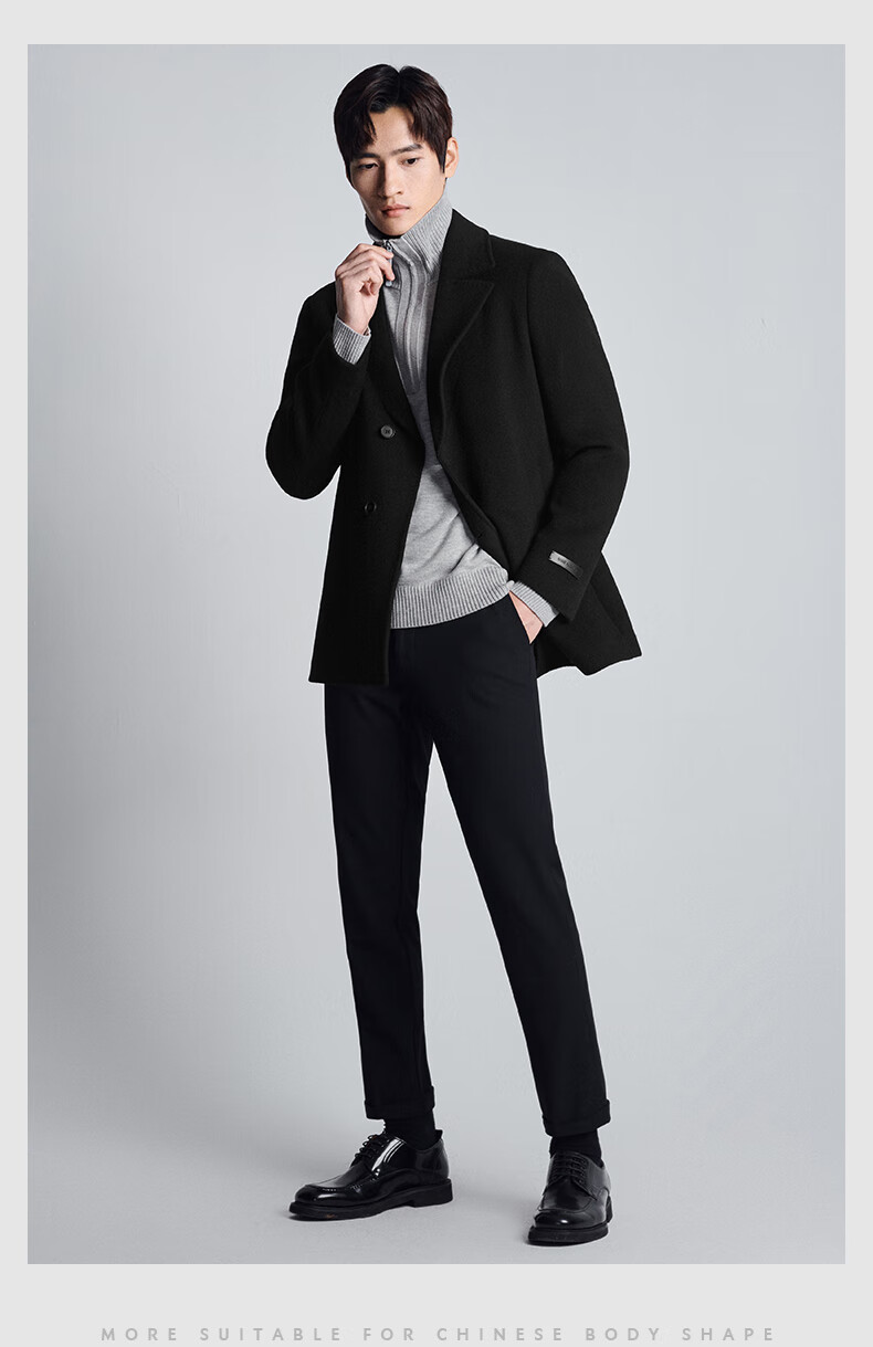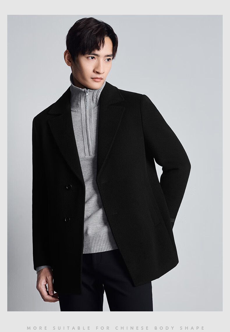 Gute Nachrichten Vogelrevers kurzer Wollmantel Herren Business Casual gerader Wollmantel KEBS243011U Schwarz 50