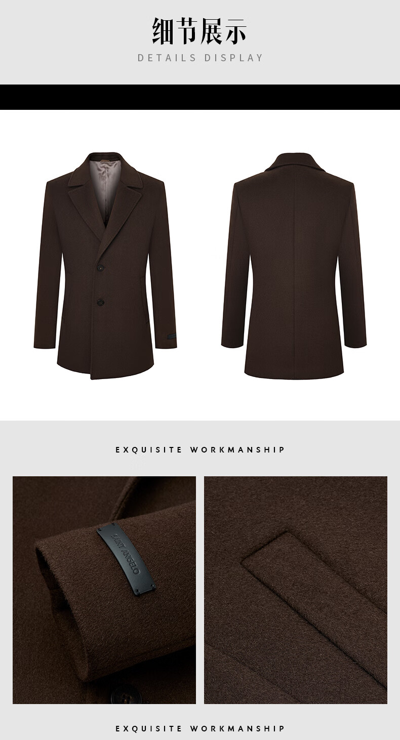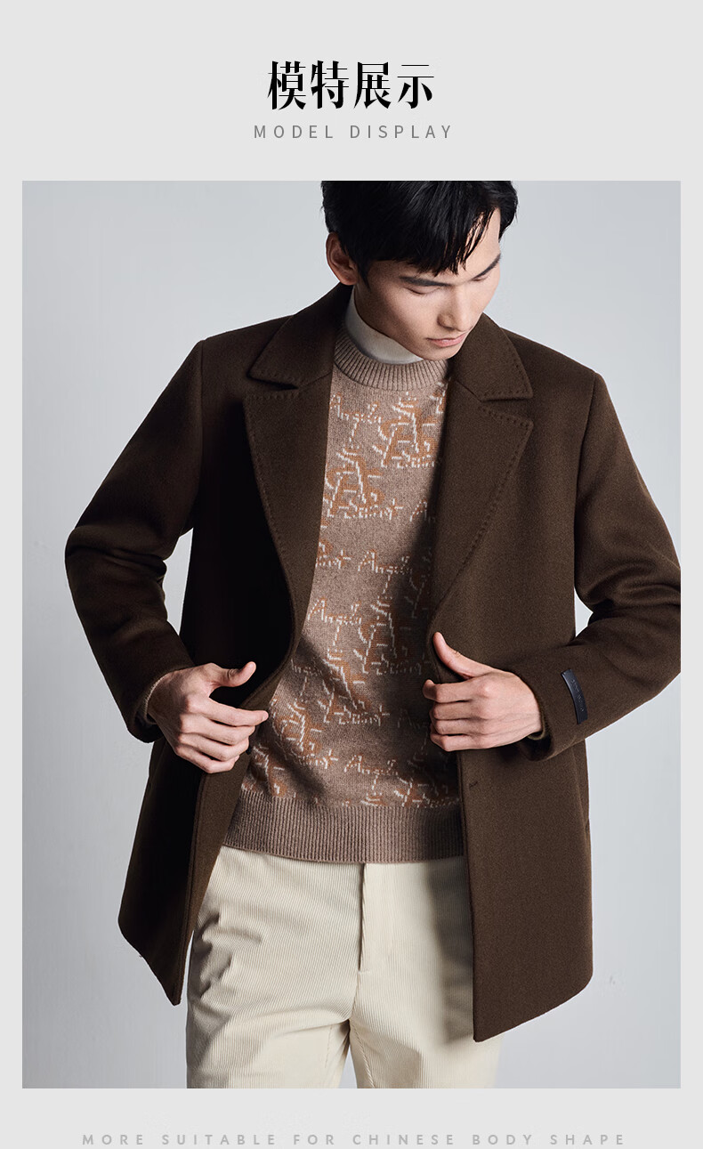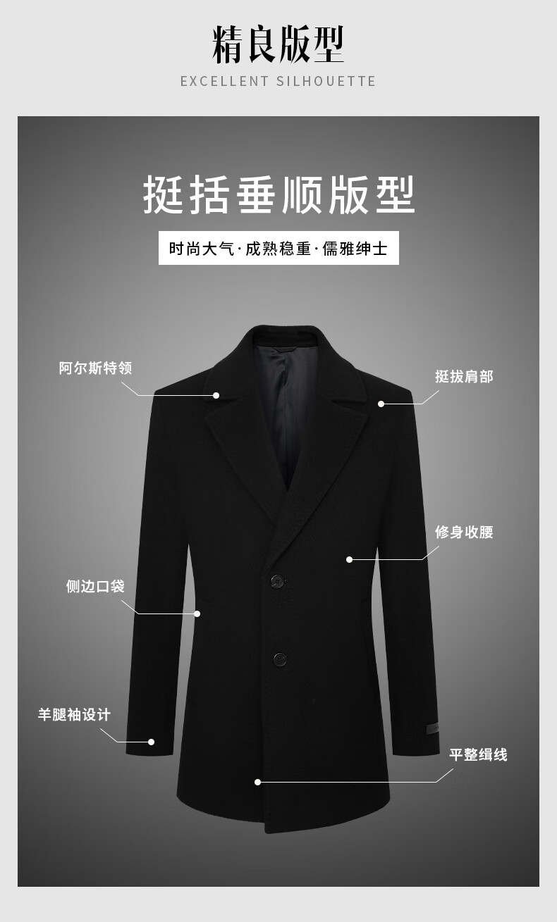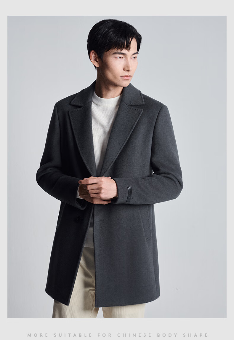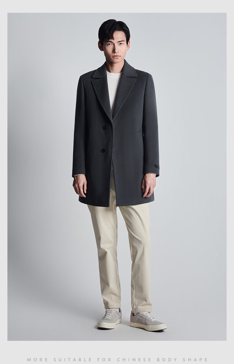 Gute Nachrichten Vogelrevers kurzer Wollmantel Herren Business Casual gerader Wollmantel KEBS243011U Schwarz 50
