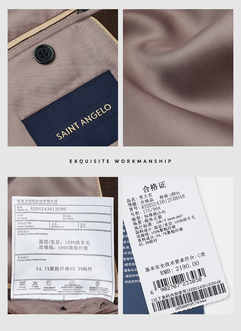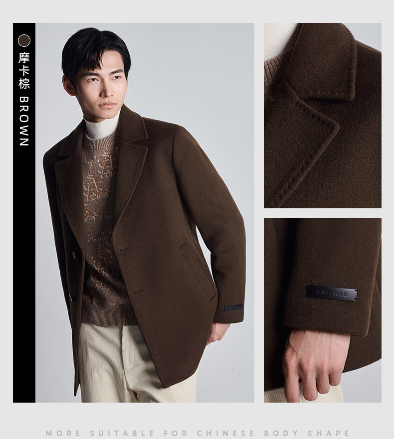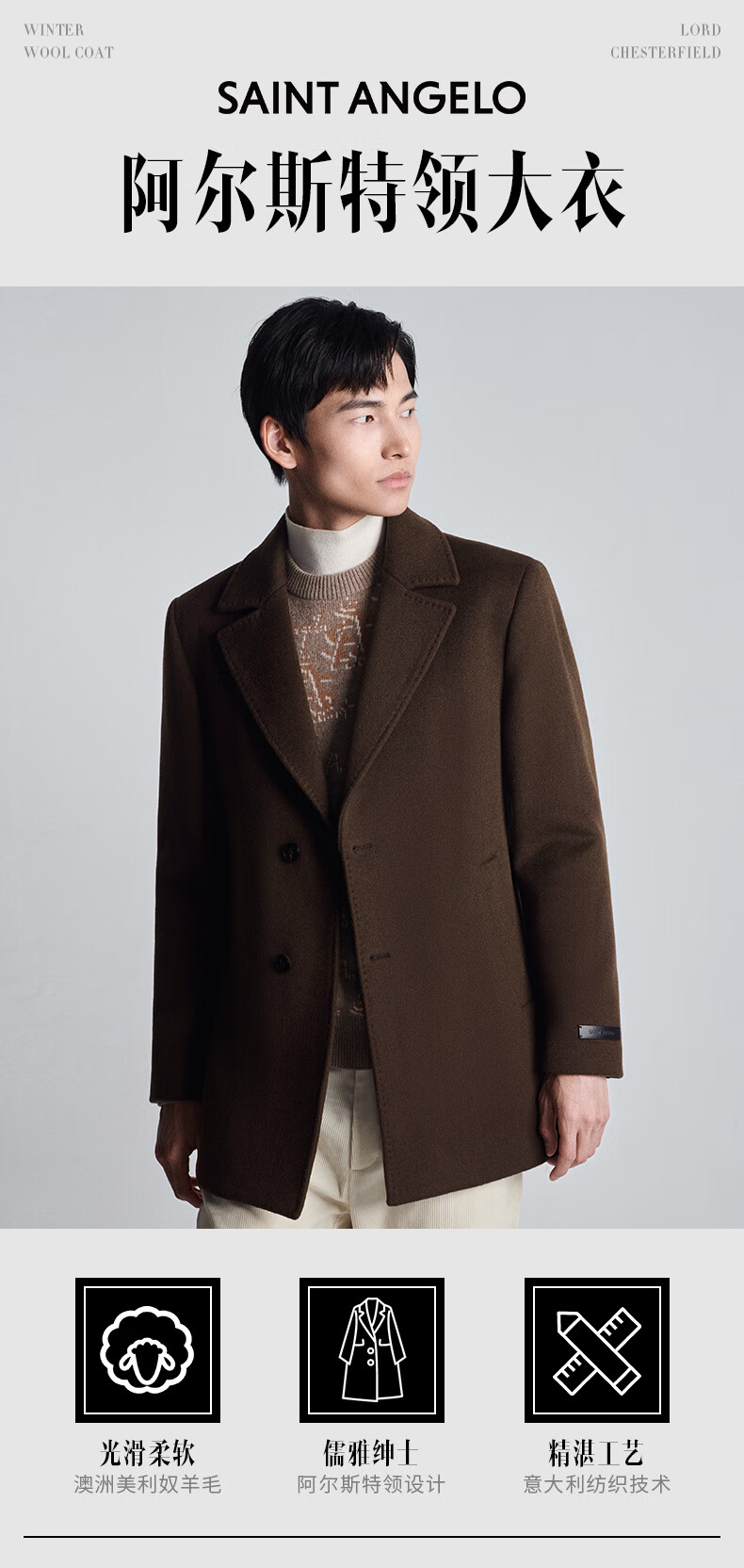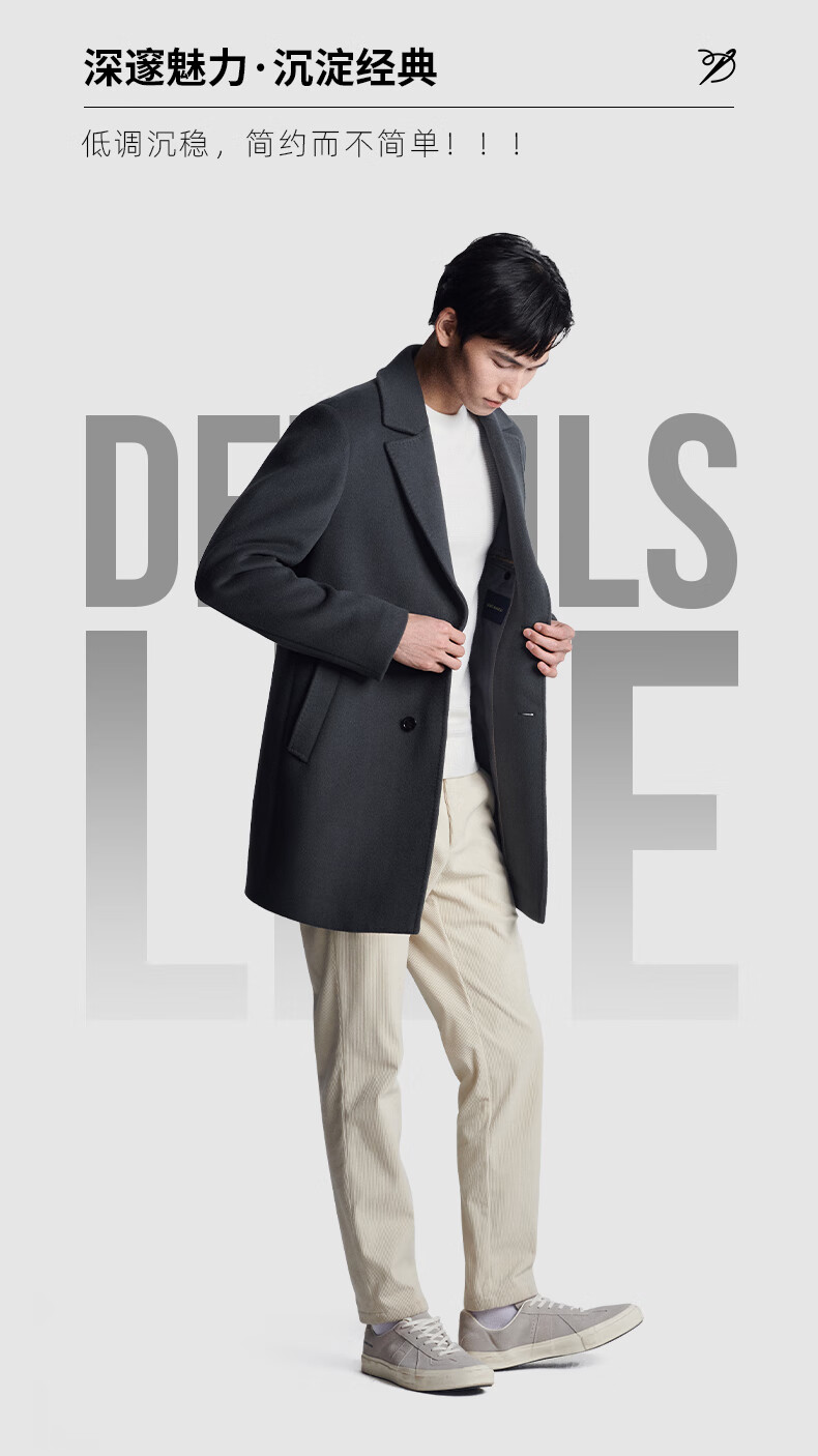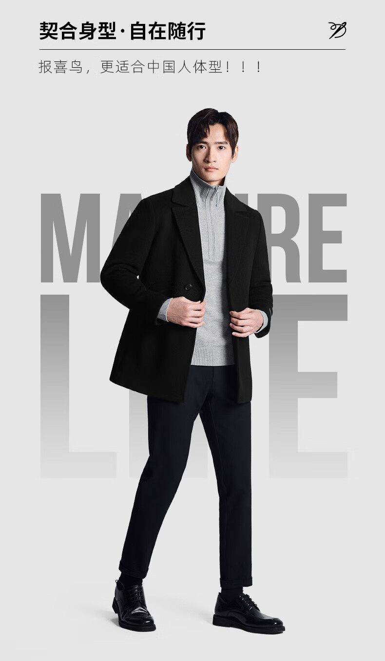 Gute Nachrichten Vogelrevers kurzer Wollmantel Herren Business Casual gerader Wollmantel KEBS243011U Schwarz 50