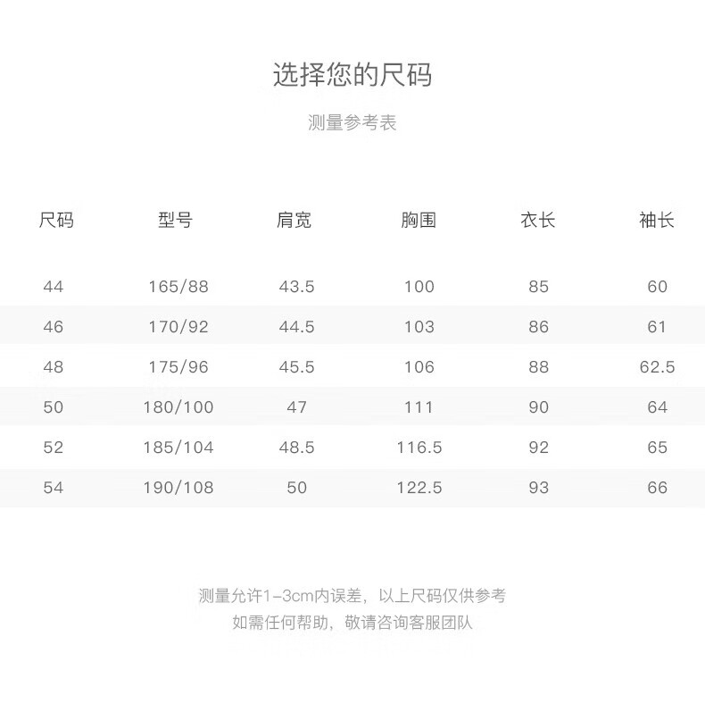 China (cm) 165 / 88-90 170 / 96-98 175 / 108-110 180 / 118-122 185 / 126-130