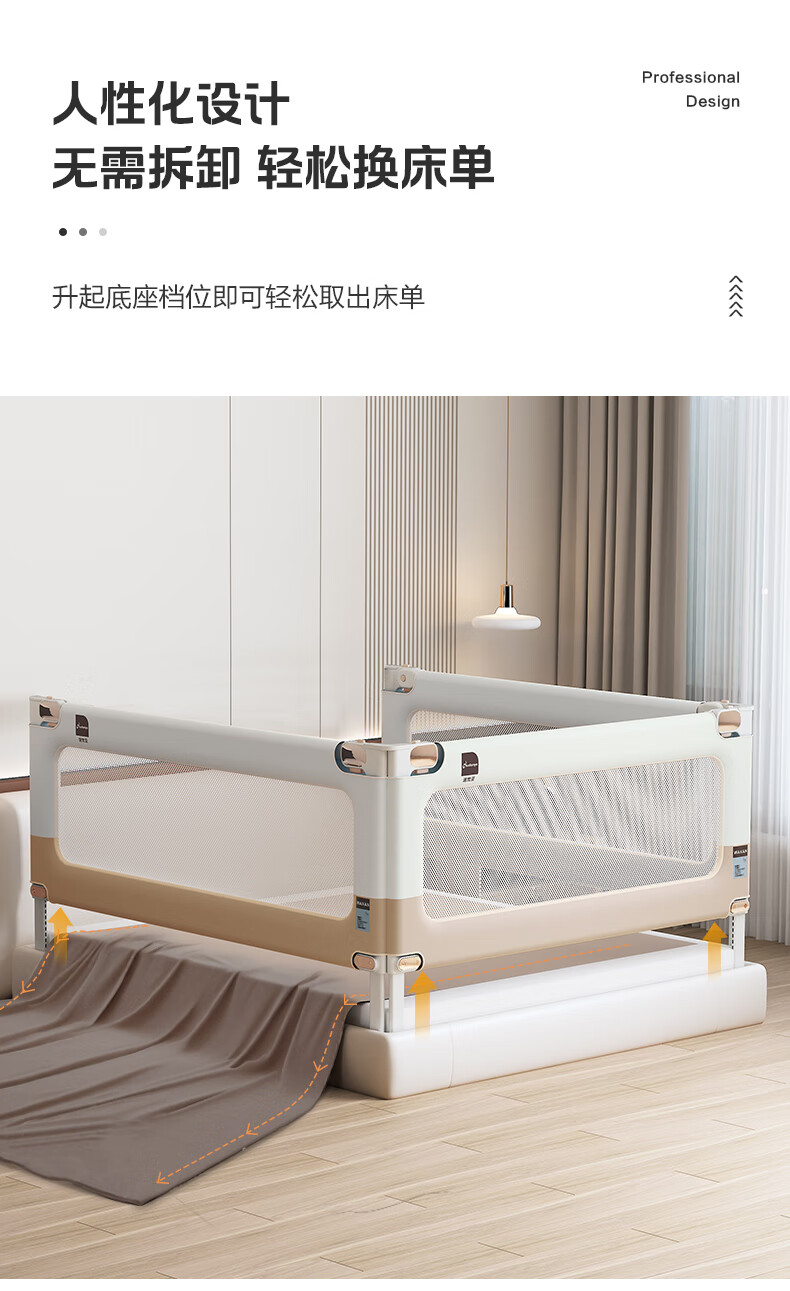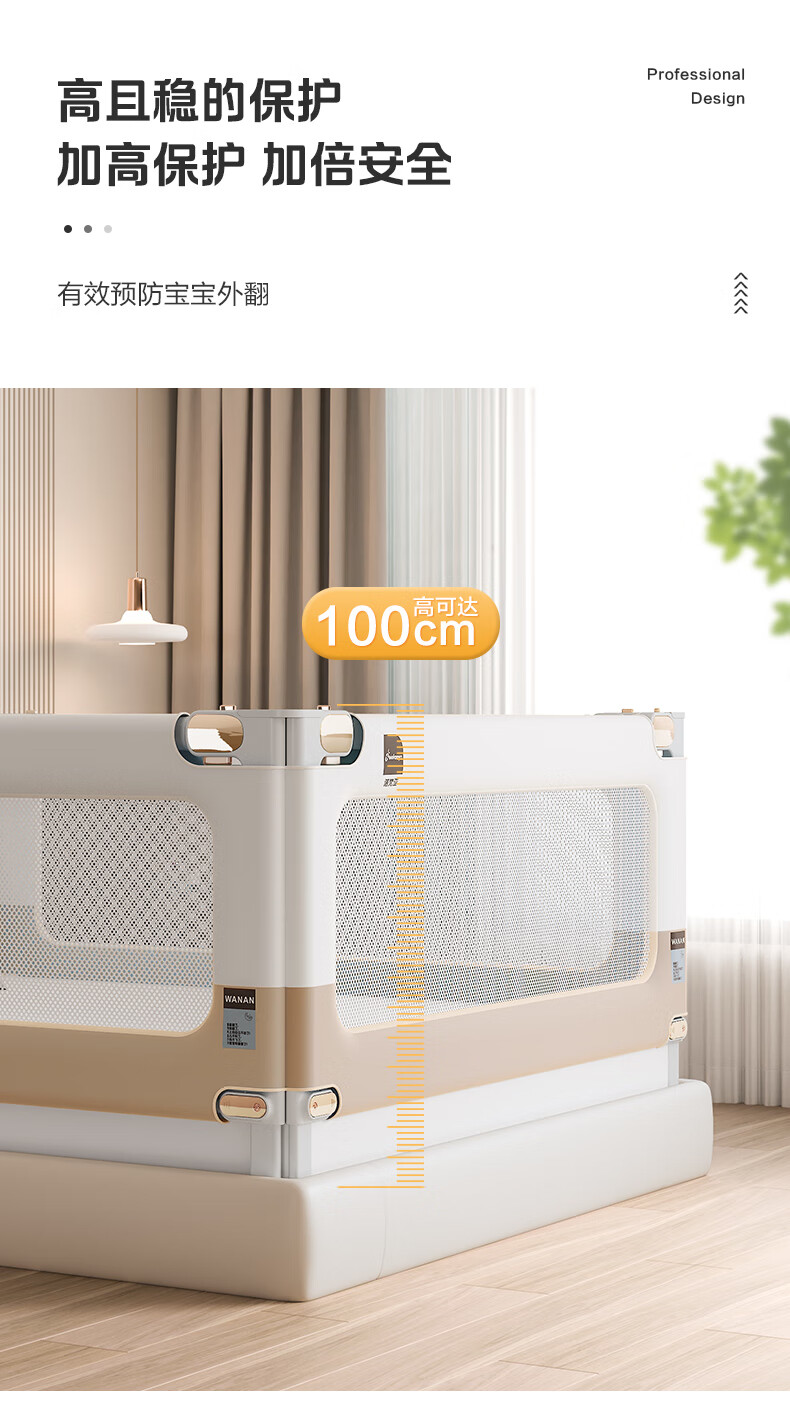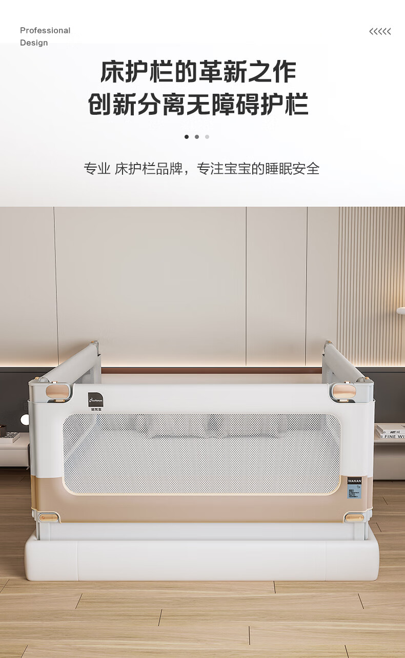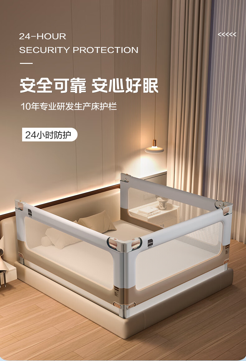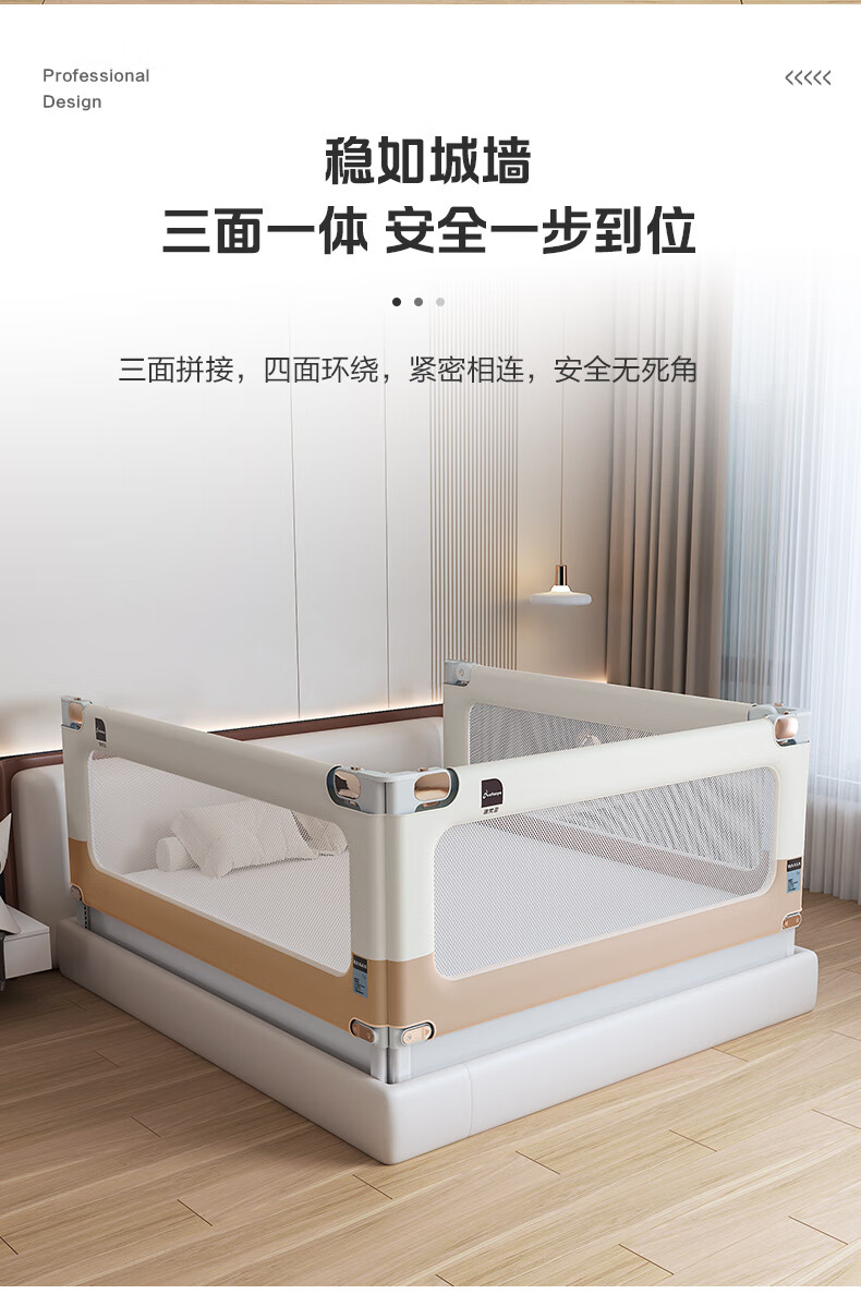 Novanya-Bettzaun, Kinder-Absturzsicherung, Baby-Leitwand, Patchwork, Khaki, 1,8 + 2,0 + 2,0, stanzfreie dreiseitige Installation