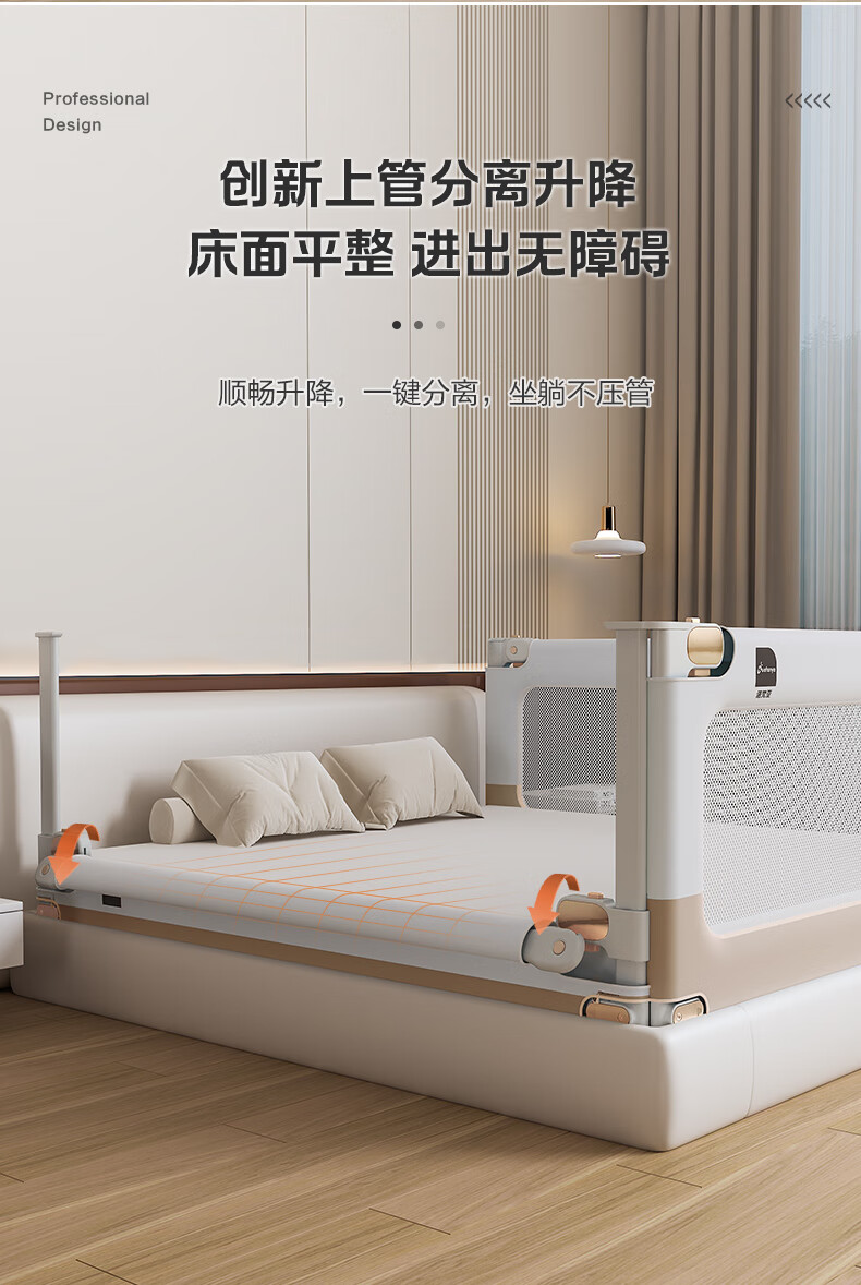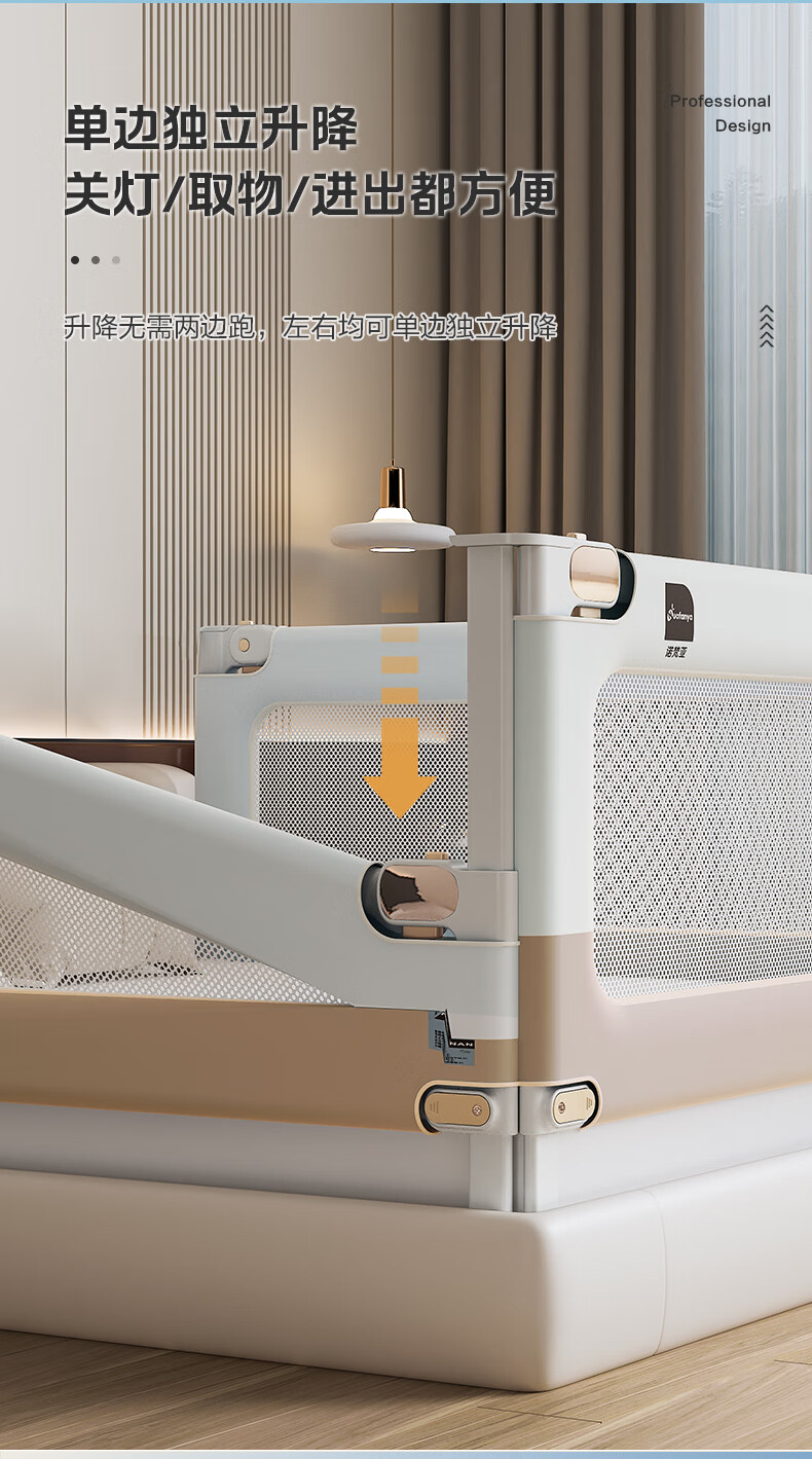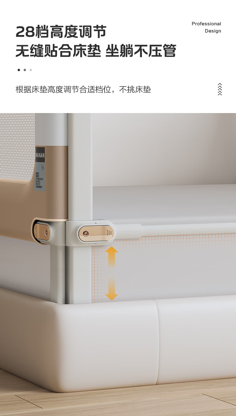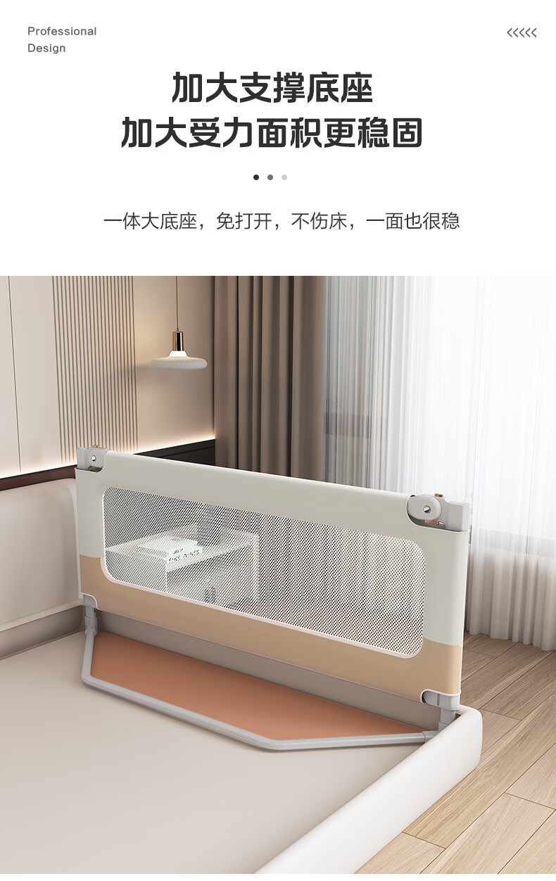 Novanya-Bettzaun, Kinder-Absturzsicherung, Baby-Leitwand, Patchwork, Khaki, 1,8 + 2,0 + 2,0, stanzfreie dreiseitige Installation