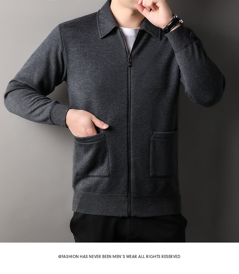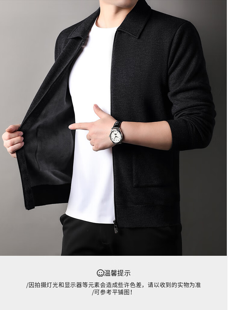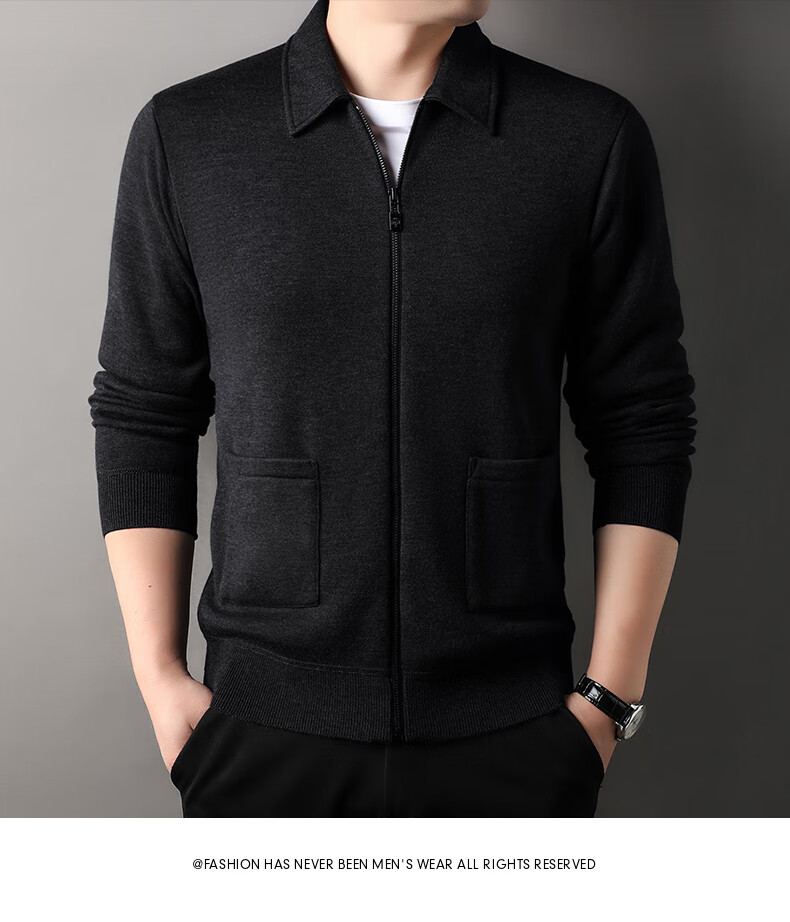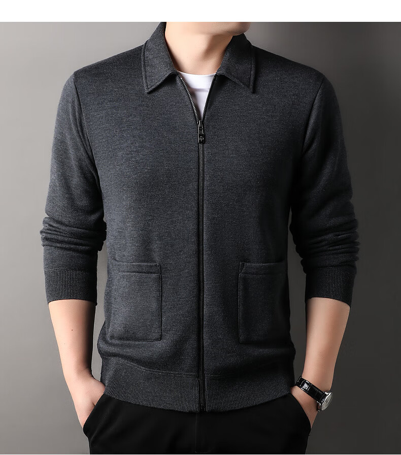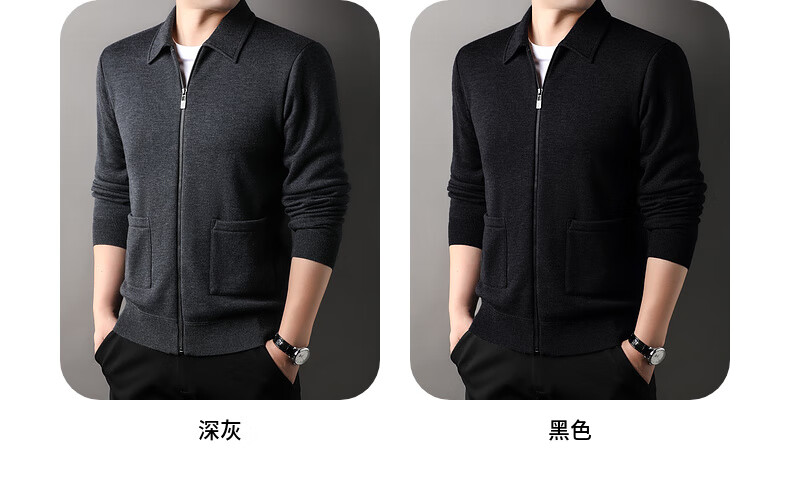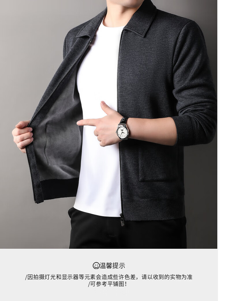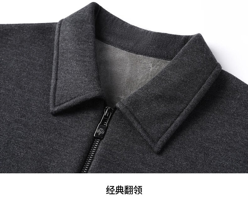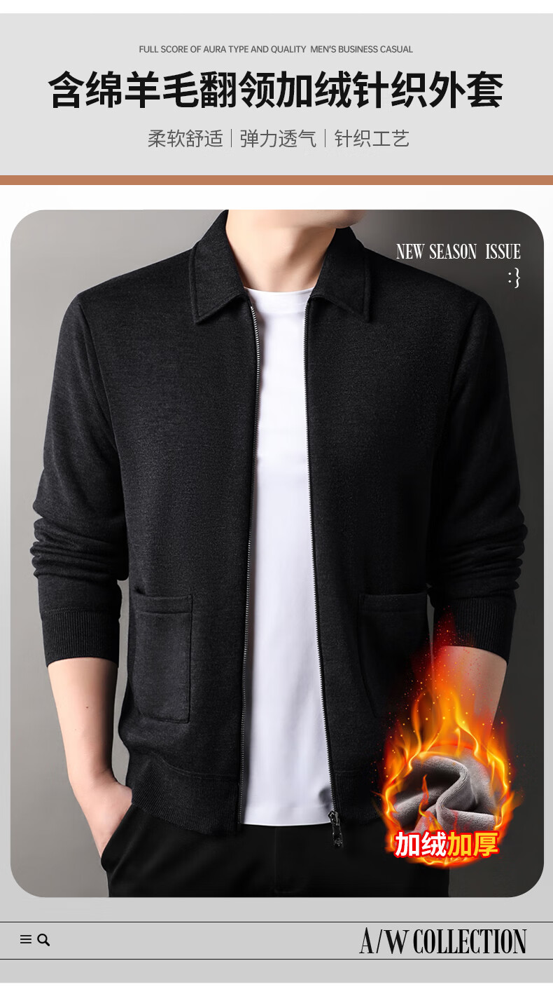 恒源祥针织开衫男士含羊毛翻领休闲加绒加厚保暖毛衣外套中年男装