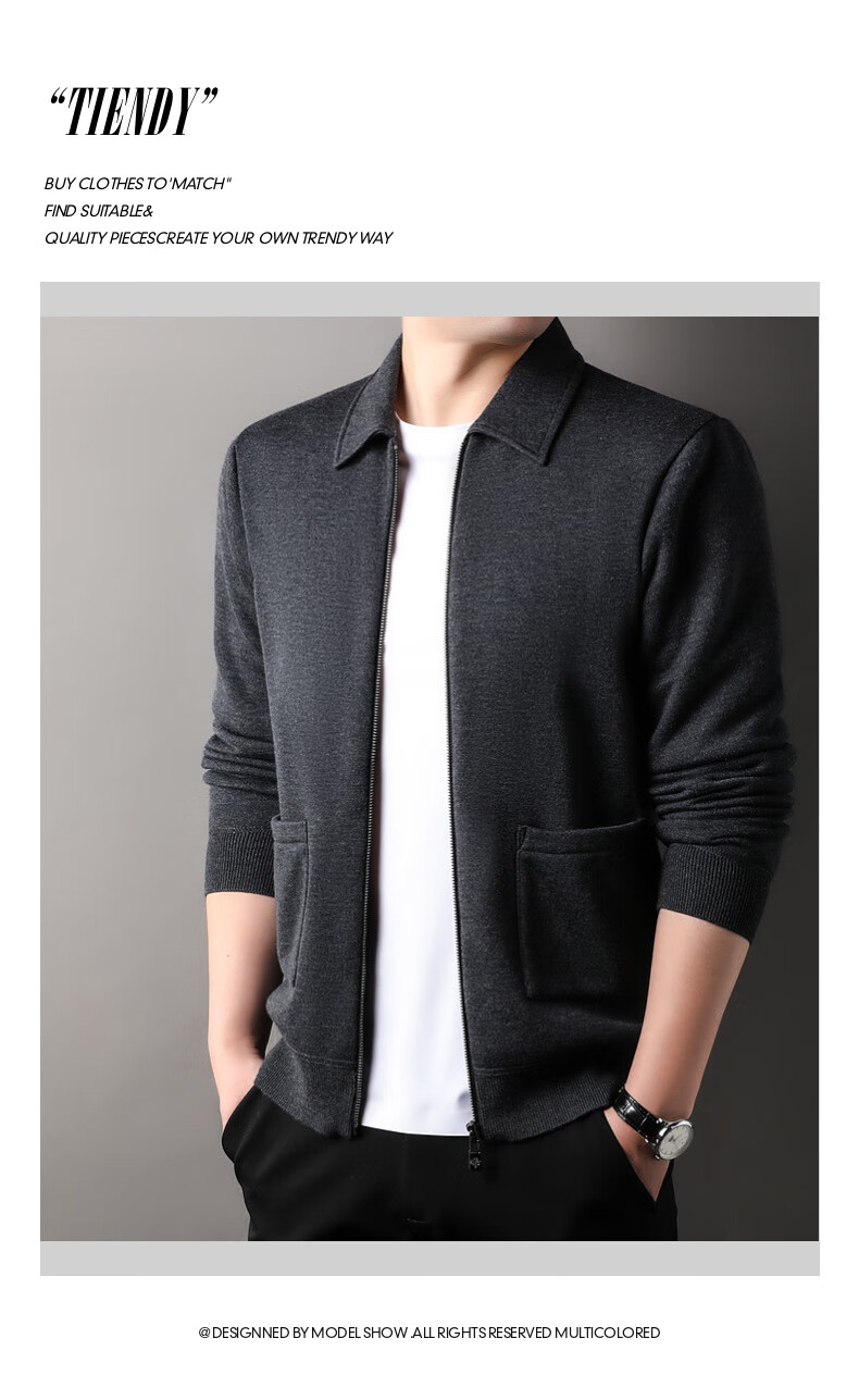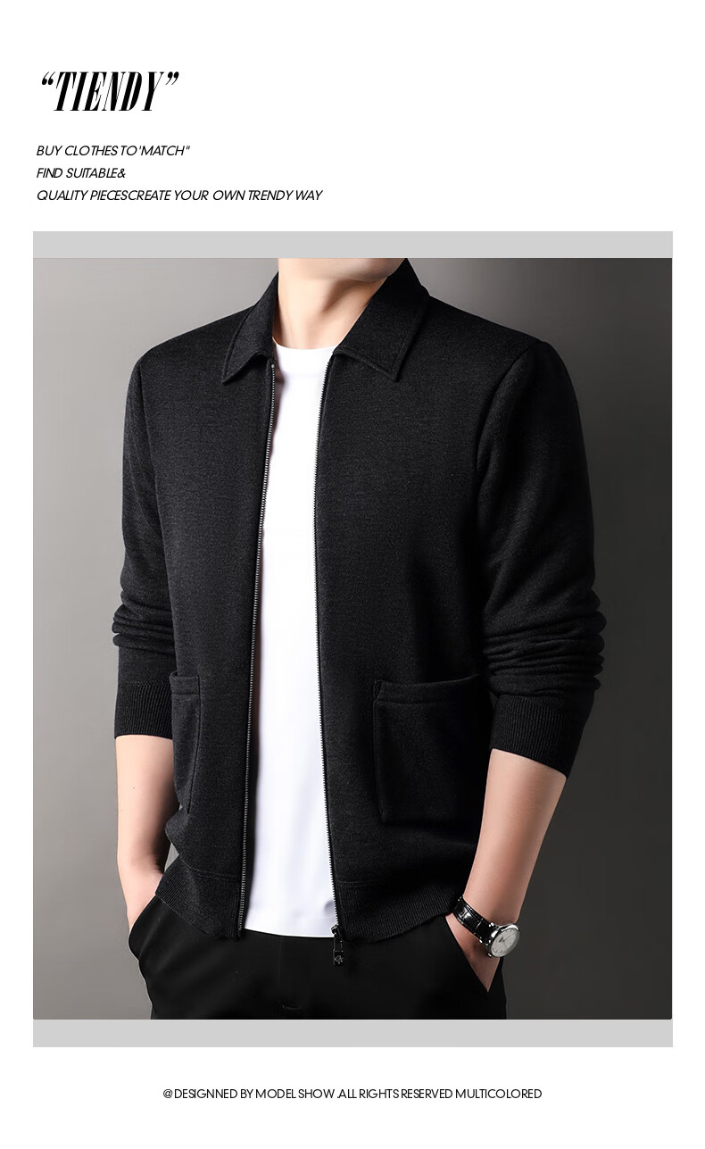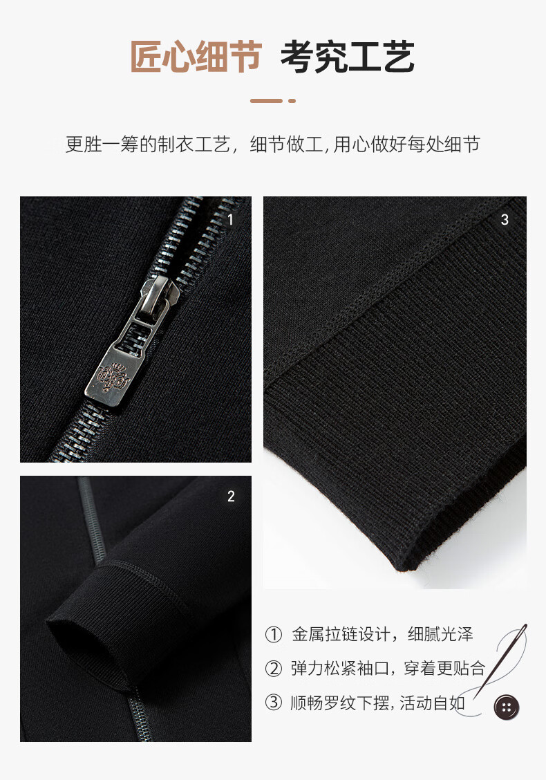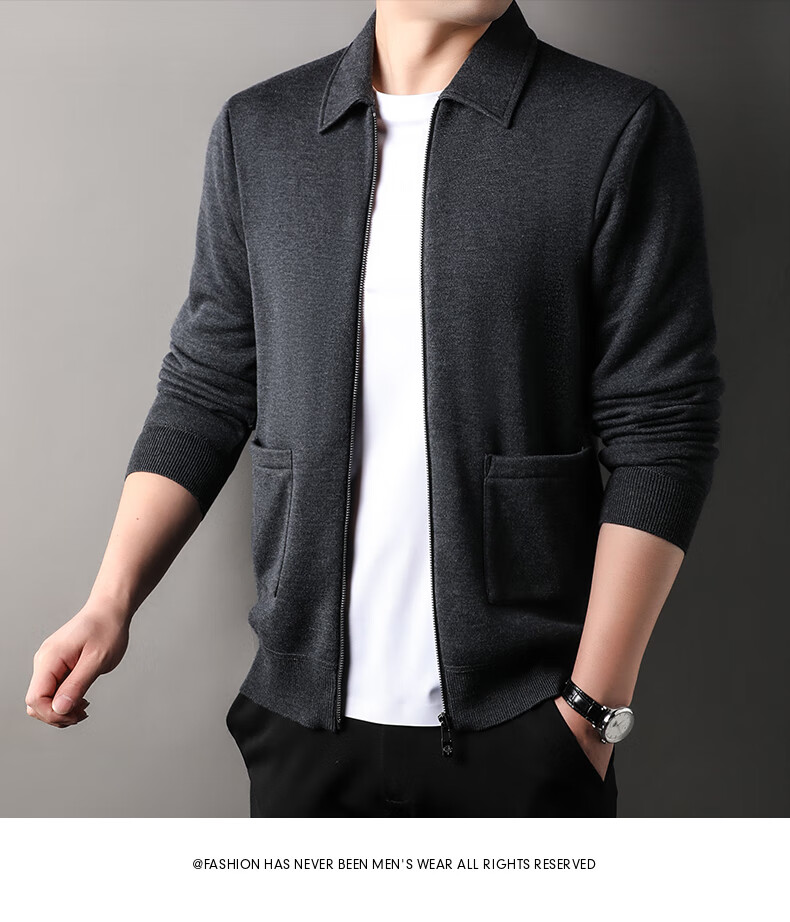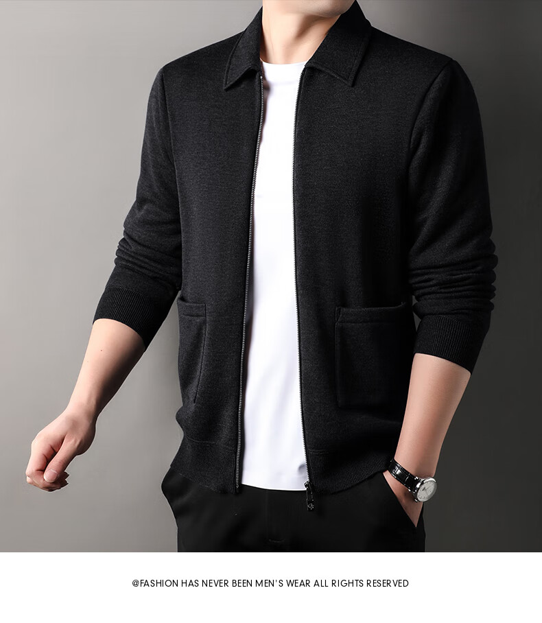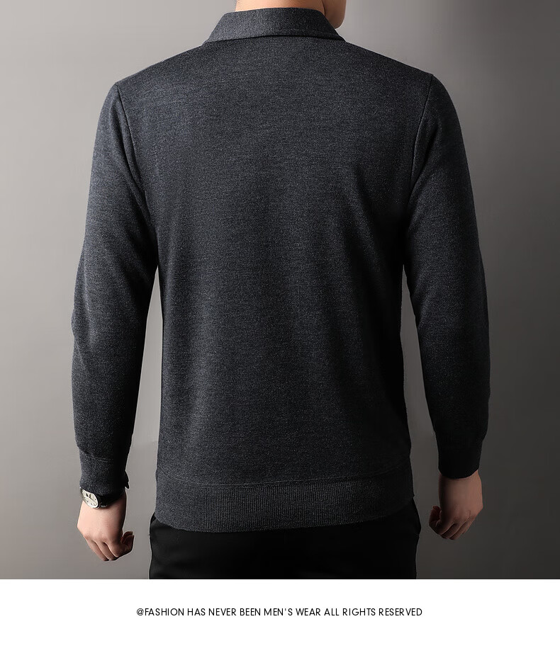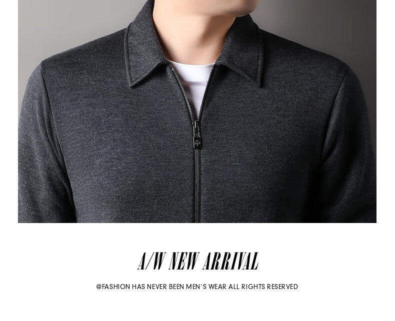 恒源祥针织开衫男士含羊毛翻领休闲加绒加厚保暖毛衣外套中年男装