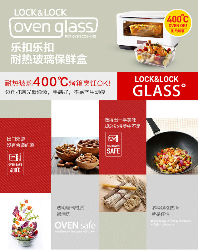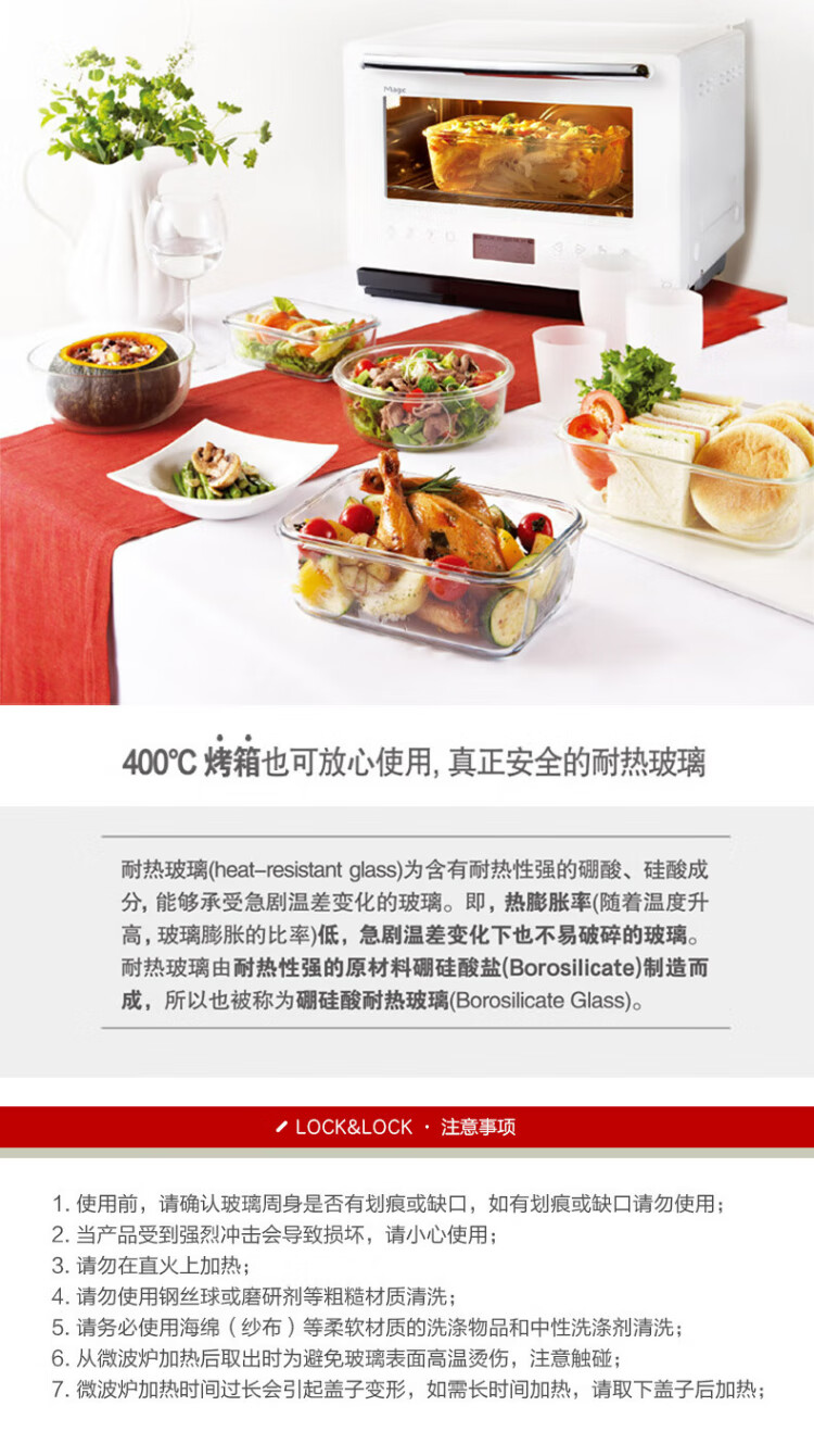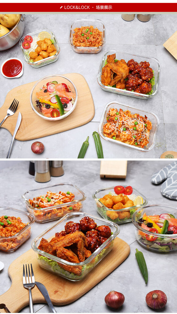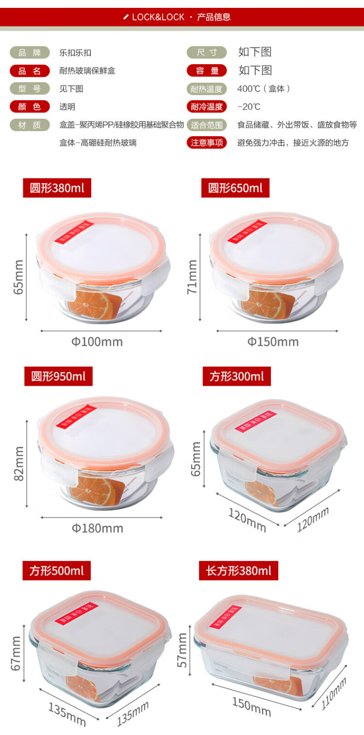 乐扣乐扣(locknlock)玻璃饭盒微波炉水果保鲜盒收纳便当盒LLG831_650ml