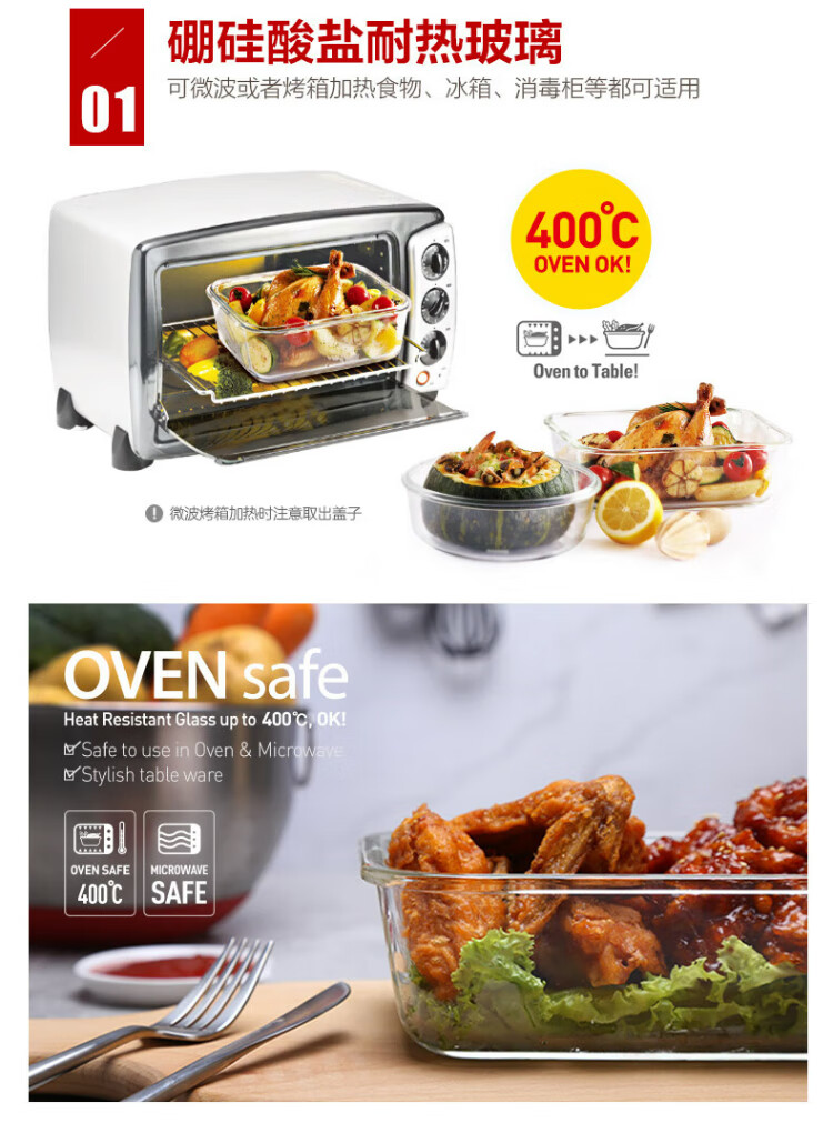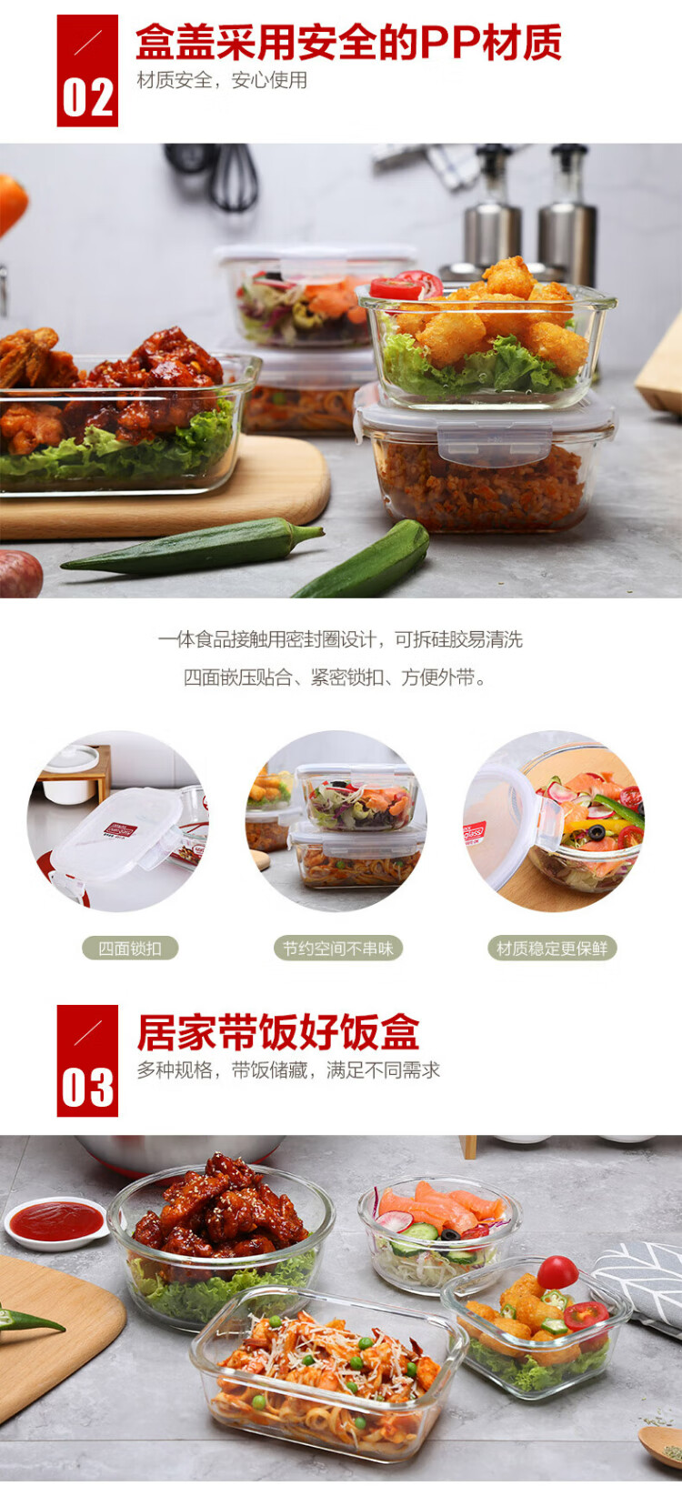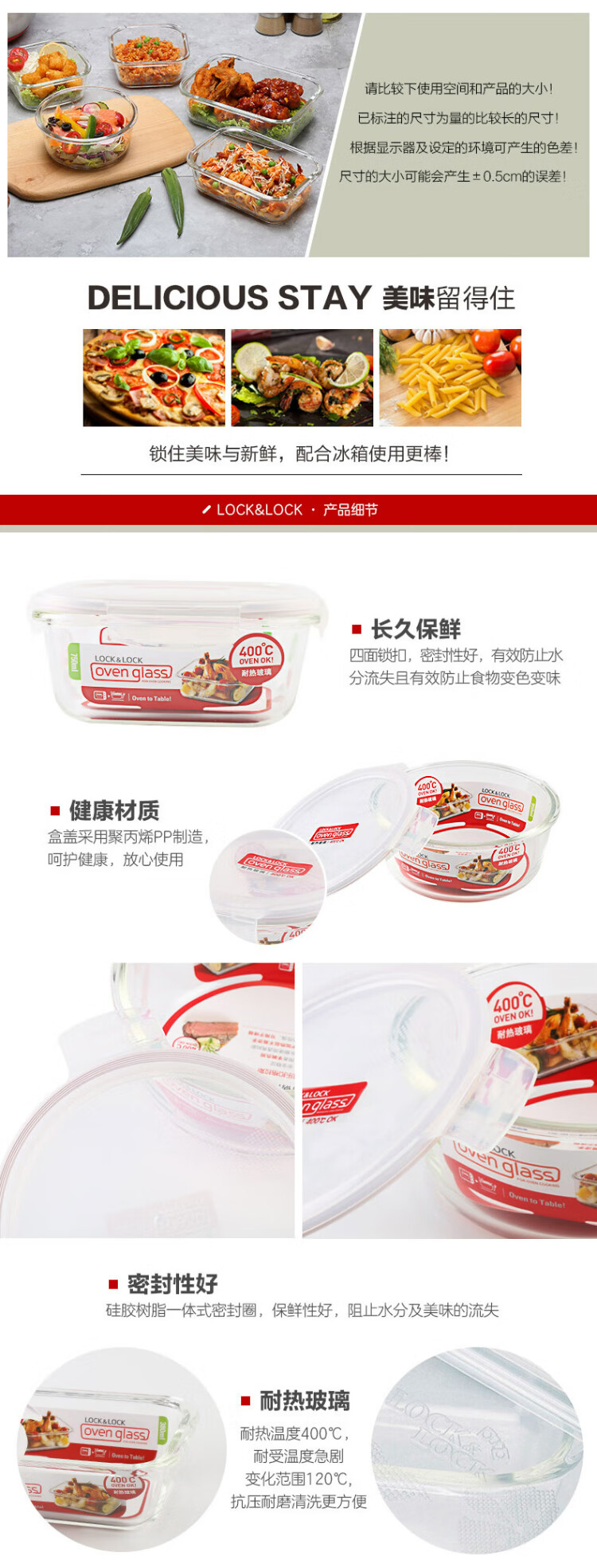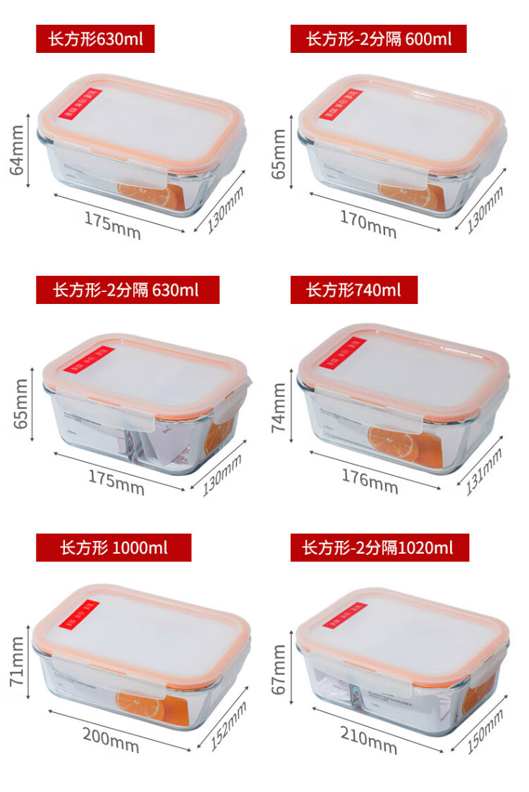 乐扣乐扣(locknlock)玻璃饭盒微波炉水果保鲜盒收纳便当盒LLG831_650ml