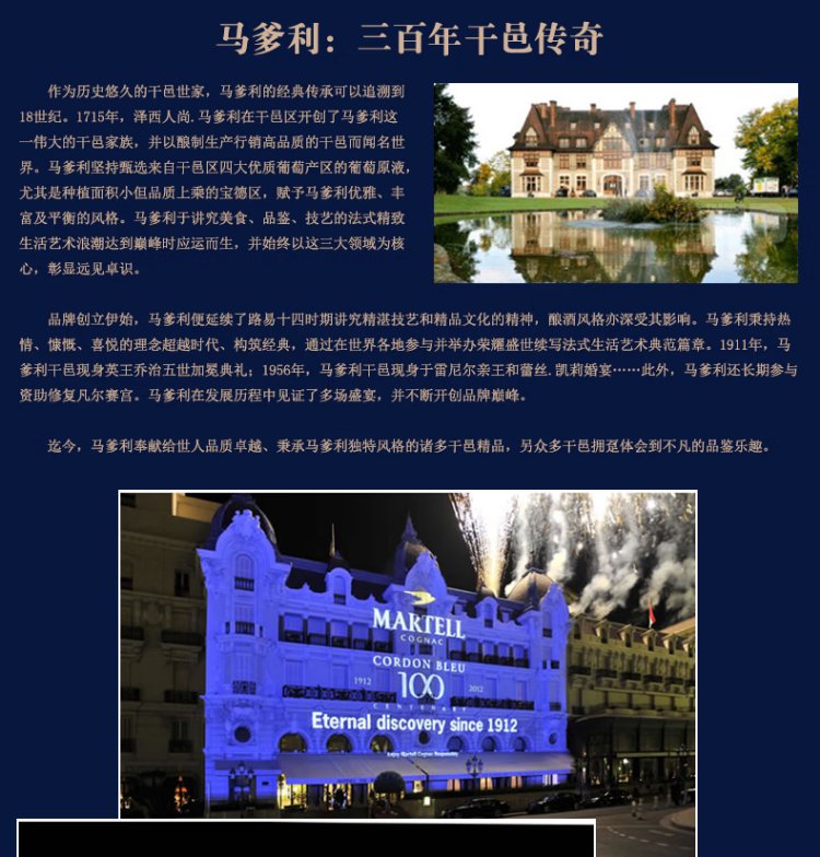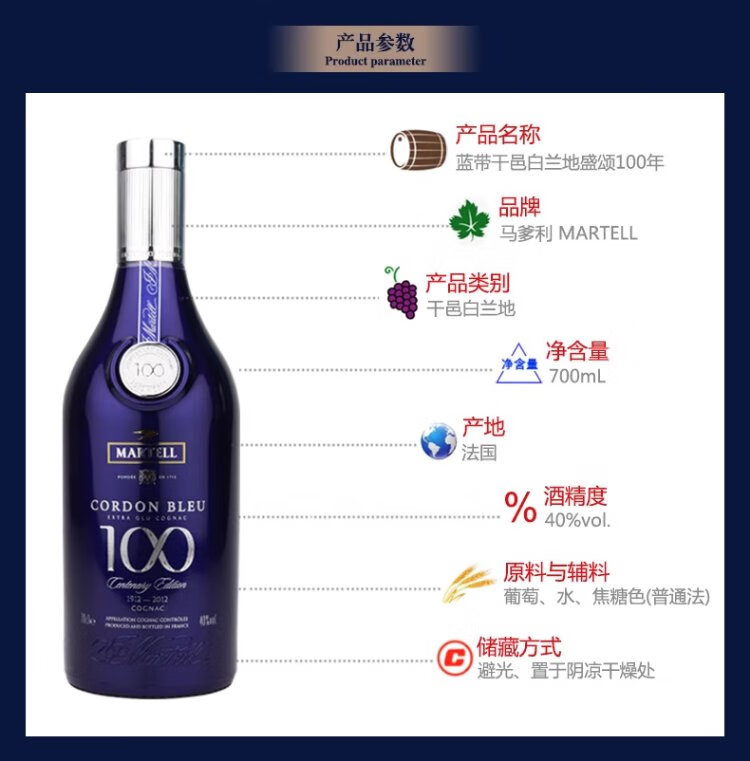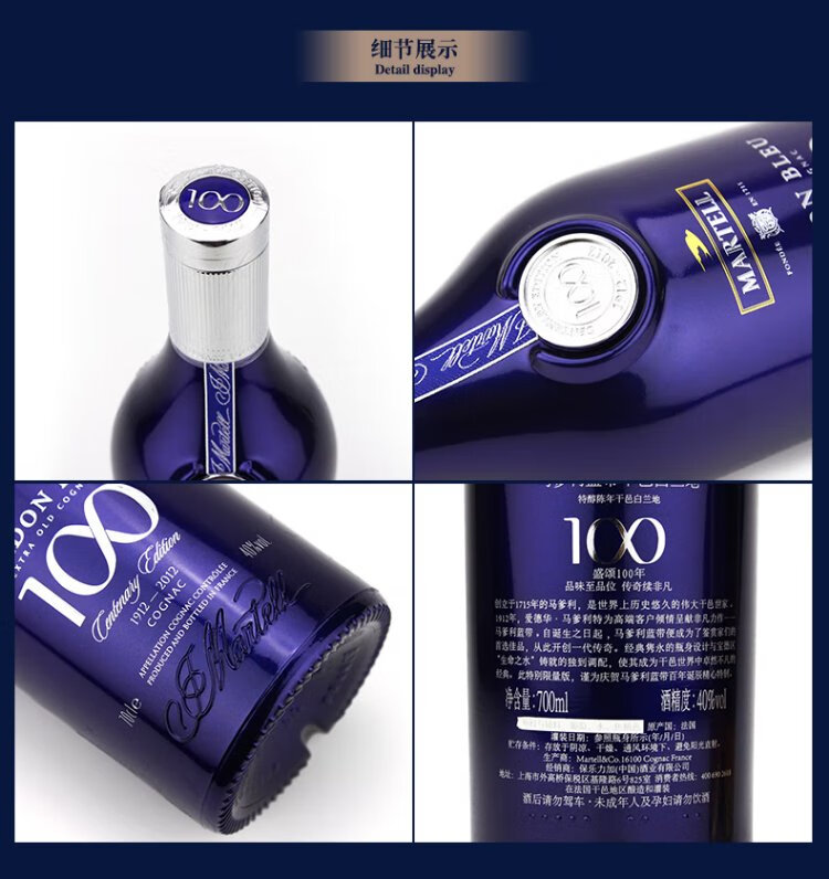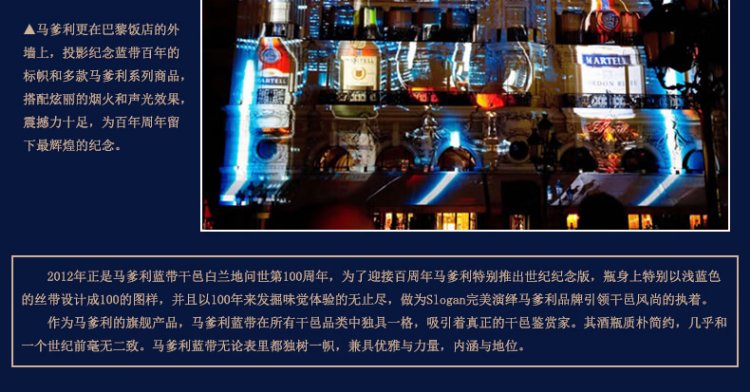 马爹利(Martel)蓝带XO级 盛颂100周年纪念版 干邑白兰地 700ml+200ml