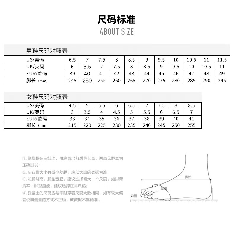 China (cm) 36 - 37 38 - 39 40 - 42 43 - 44 45 - 47