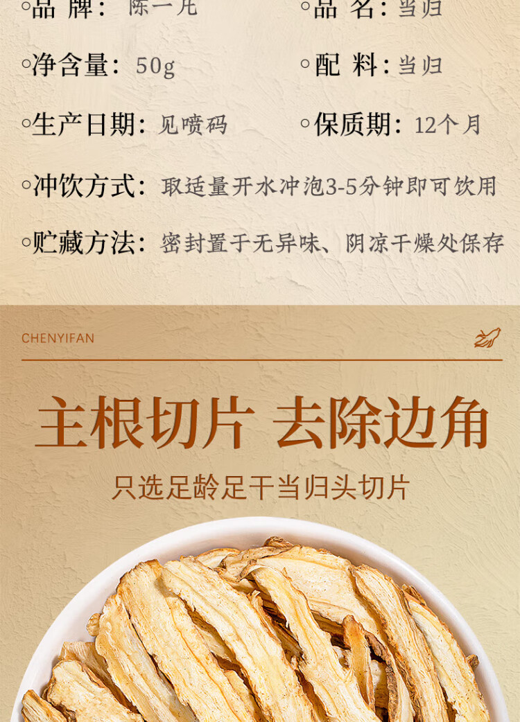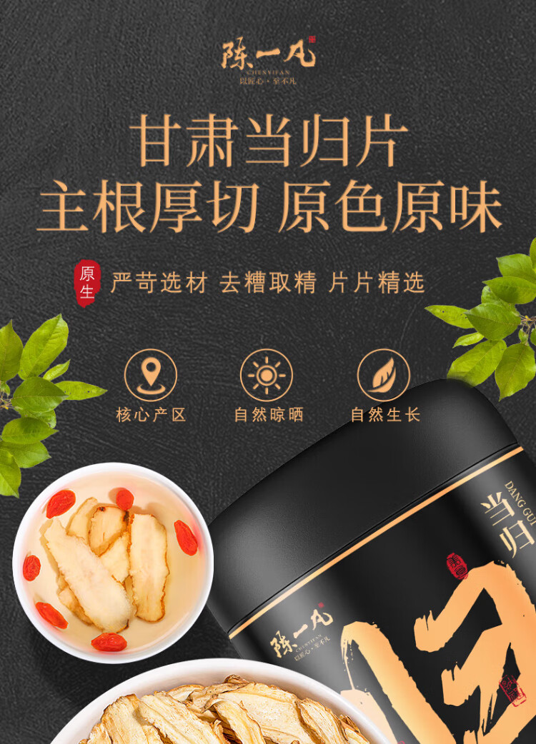陈一凡 当归片 正宗甘肃原产当归切片搭黄芪枸杞泡水煲粥养生茶罐装50g