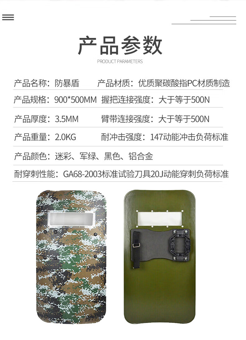 睿纯PC加厚防暴盾牌保安用品 铝合金防暴盾 RC1289