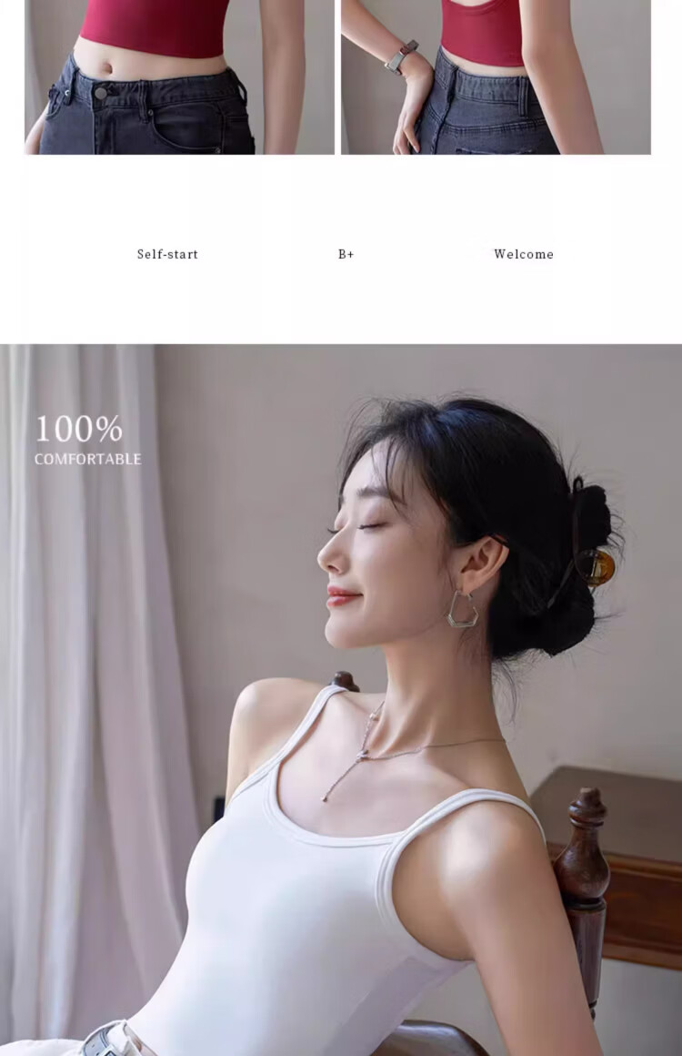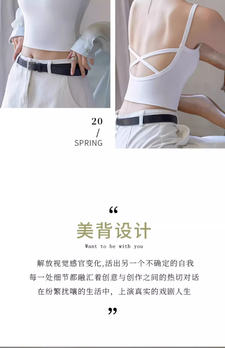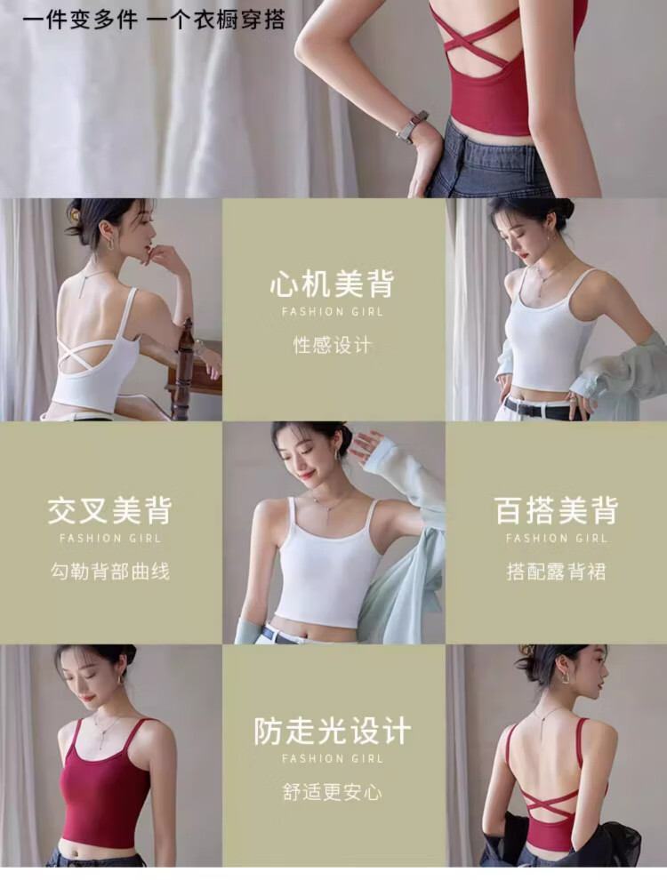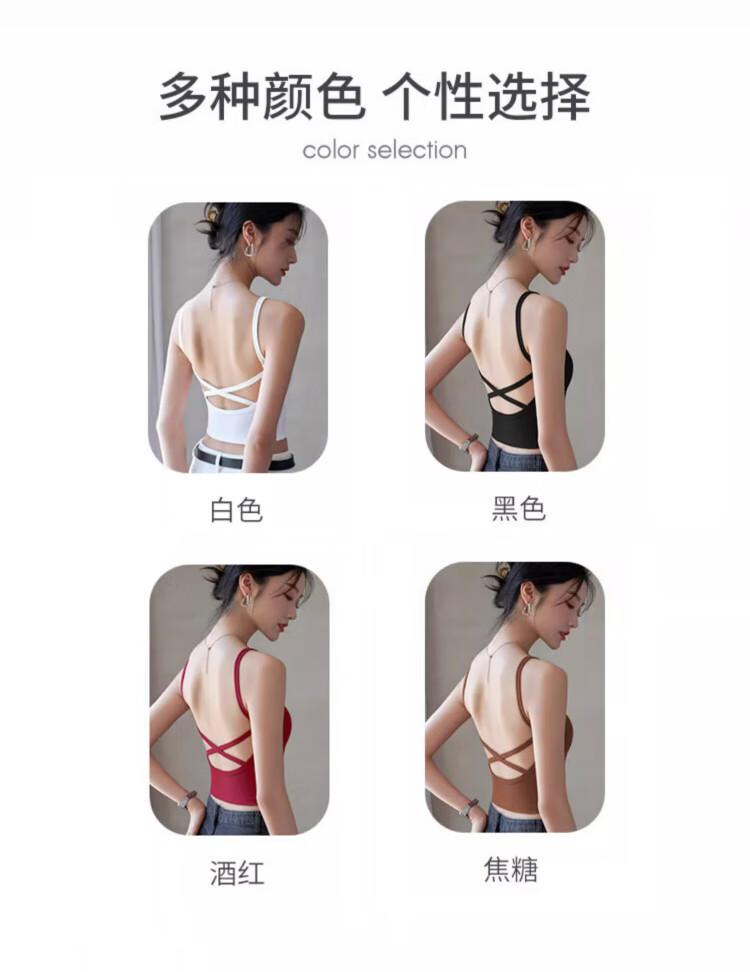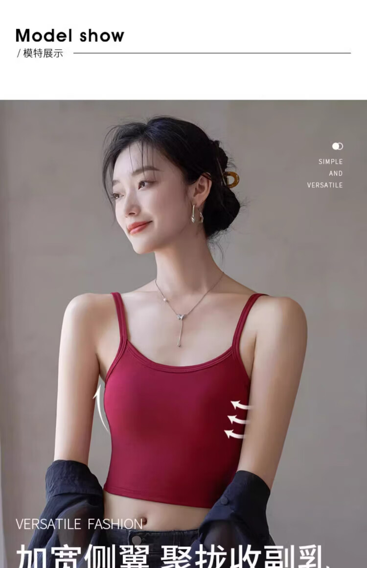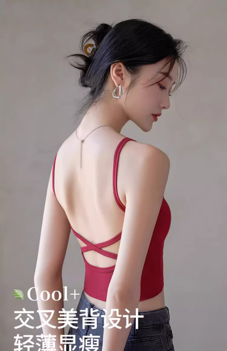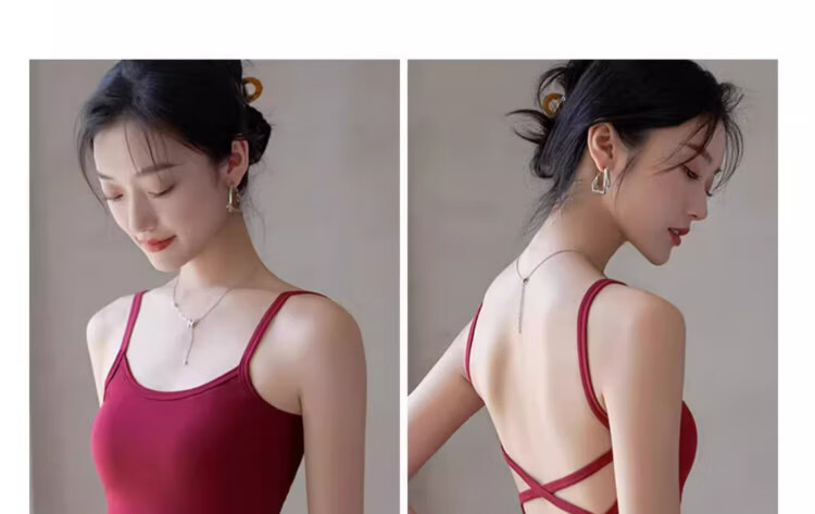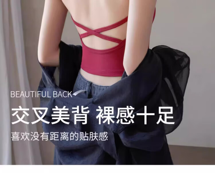 NOME后背交叉小吊带背心女高弹修身吊带文胸一体固定杯内搭 酒红色 M