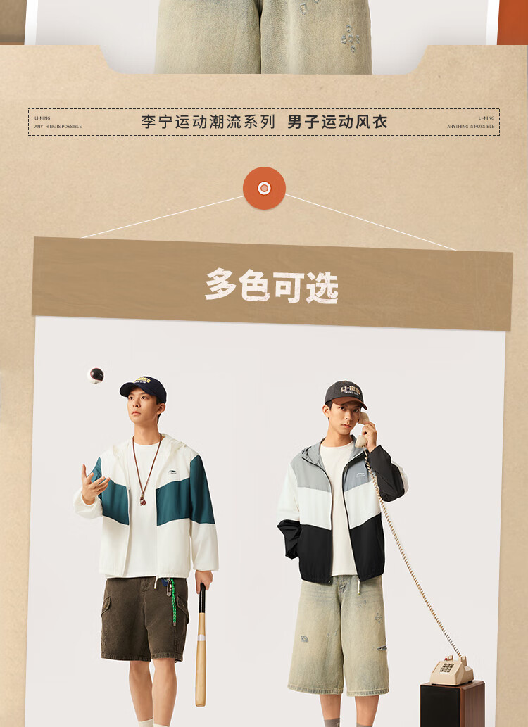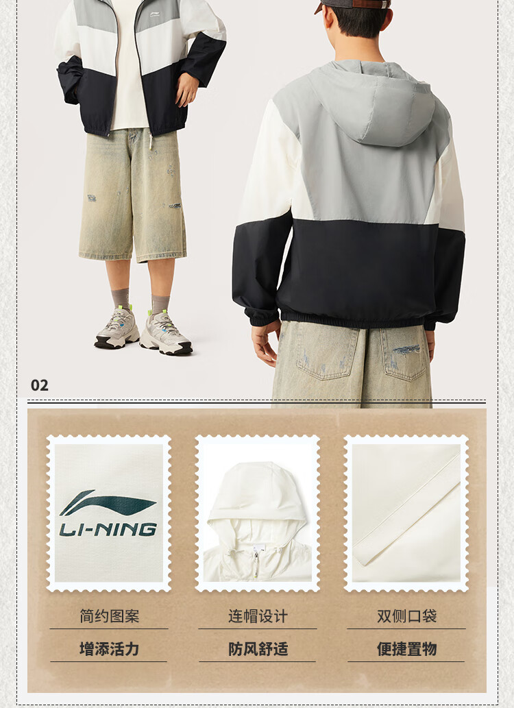 李宁防晒运动风衣男子潮流舒适休闲外套AFDV609