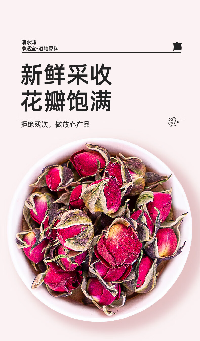 渭水鸿平阴玫瑰花【头茬新花】干花大朵中药材桑葚黑枸杞泡水养生茶