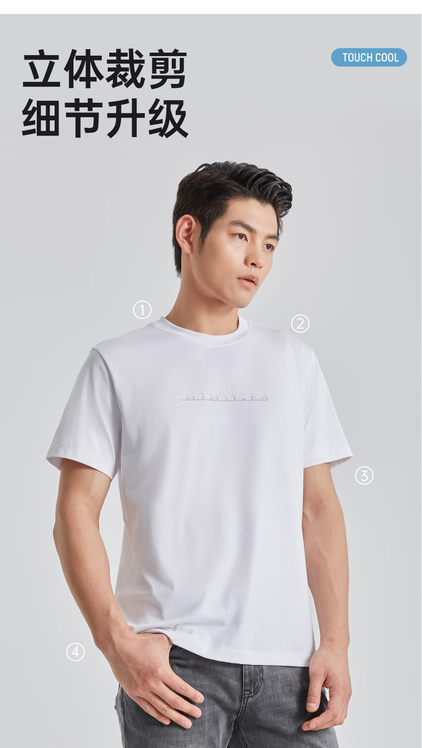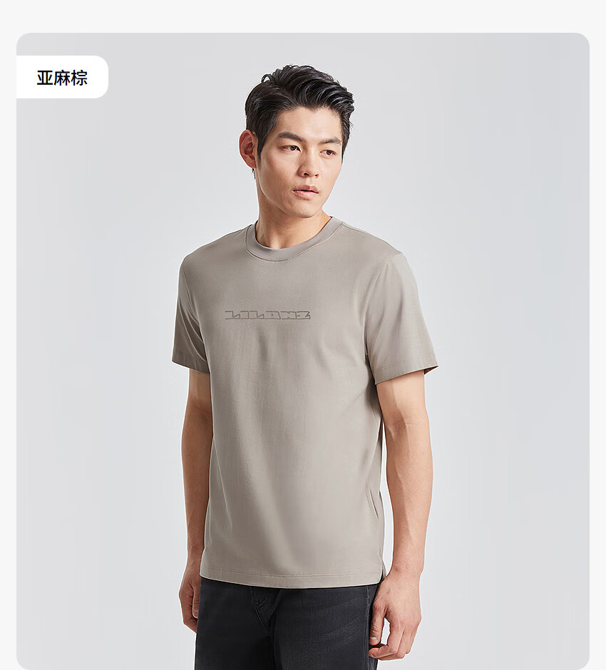 利郎抑菌凉感短袖T恤男圆领25夏季冰丝短袖T恤 亚麻棕 XL175/92A