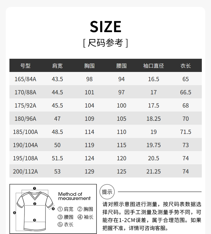 China (cm) 160-165/84-86 165-170 / 88-90 167-172 / 92-96 168-173 / 98-102 170-176 / 106-110