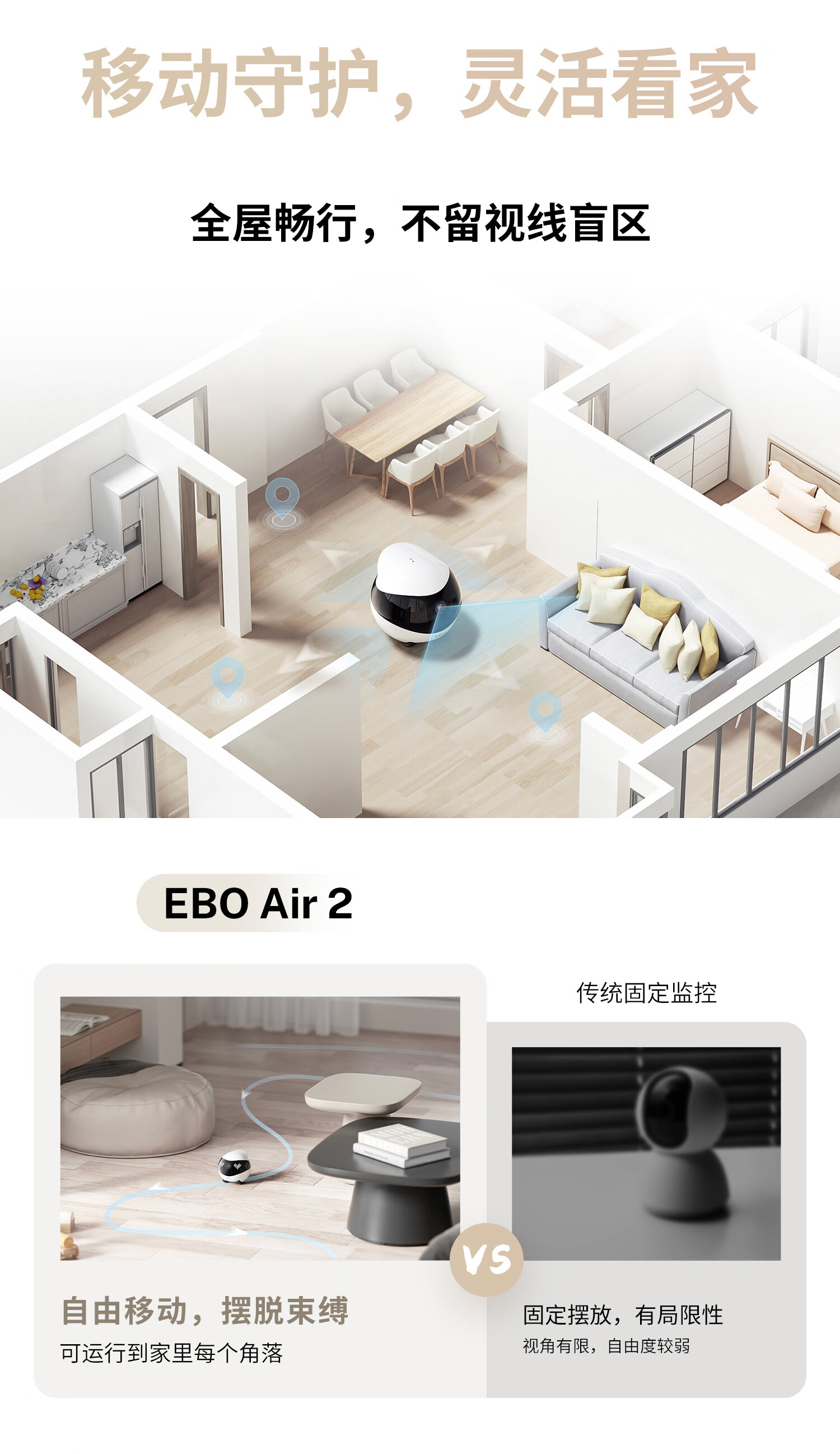 EnabotEBO Air 2 mobile surveillance camera for the elderly, children and pets, smart companion robot, home camera, ebo robot, Xinyubai