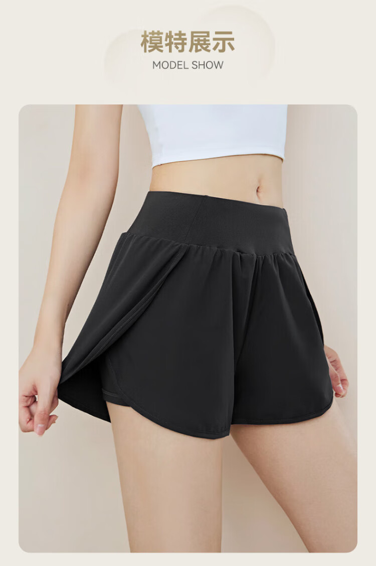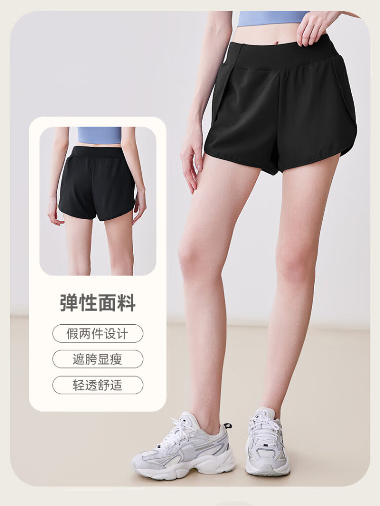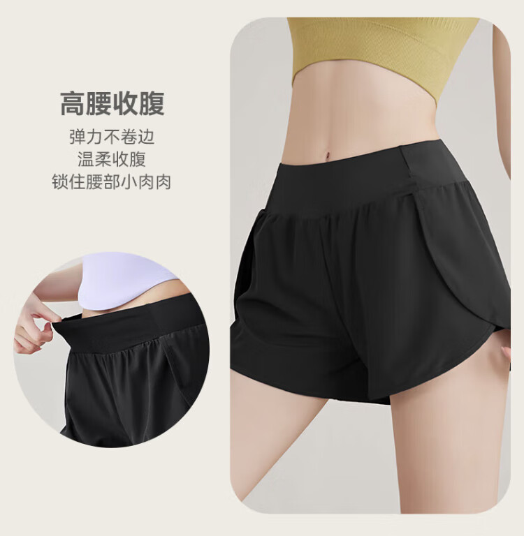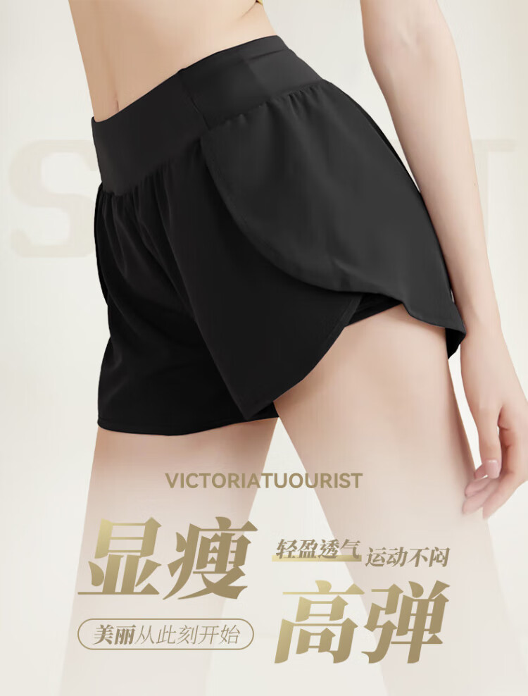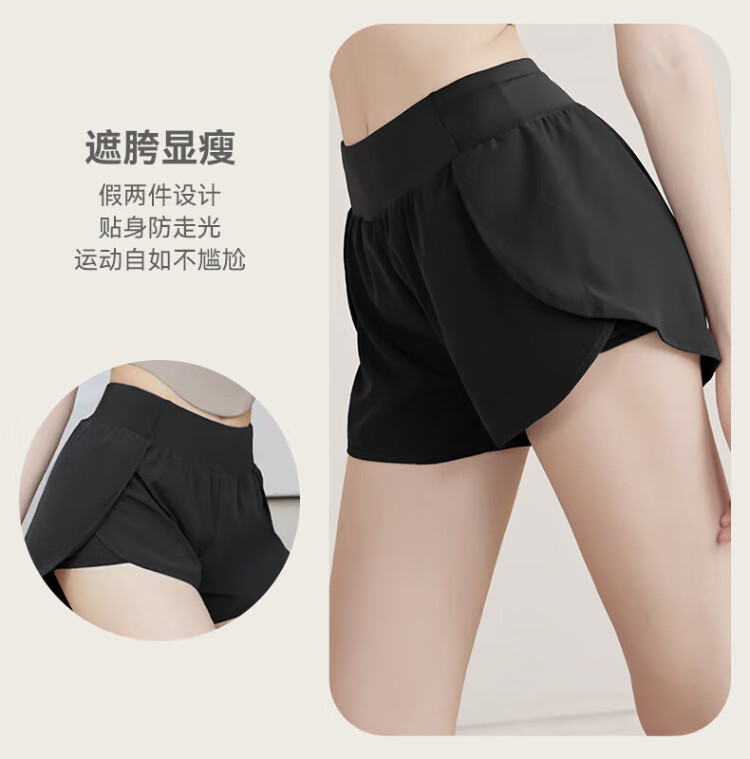 VICTORIATOURIST Sportshorts für Damen, Laufen, schnell trocknend, atmungsaktiv, Yoga, lässig, gefälschte zweiteilige Anti-Expositions-Fitnesshose, Xingyao, Schwarz, M