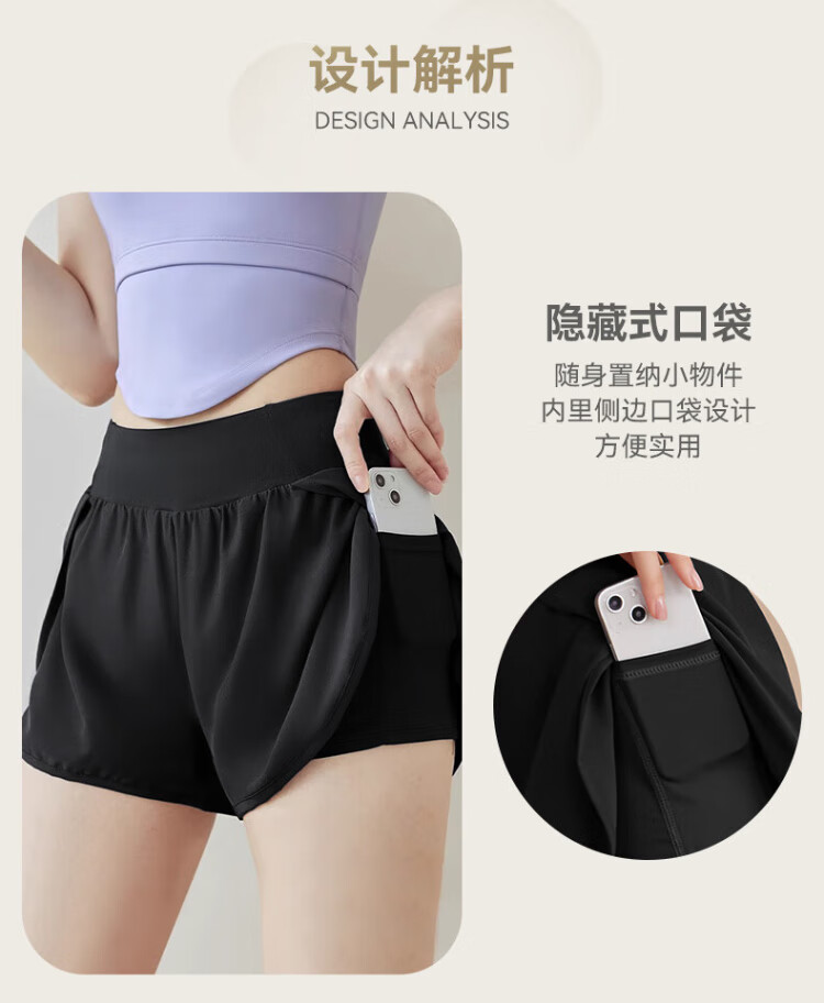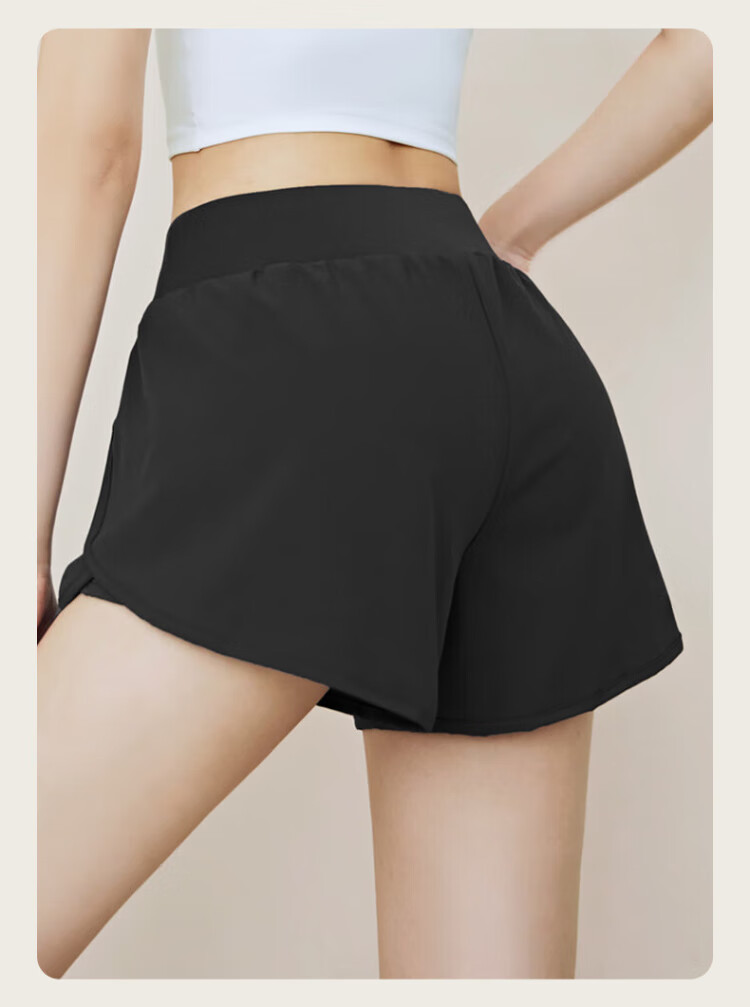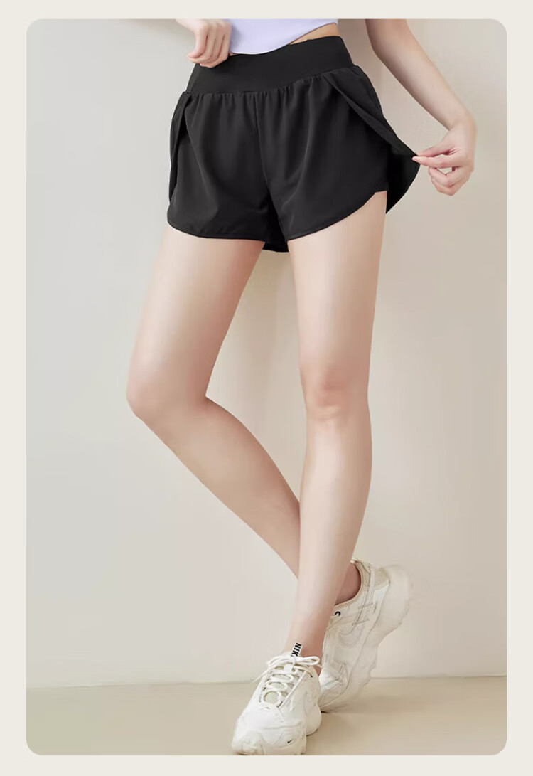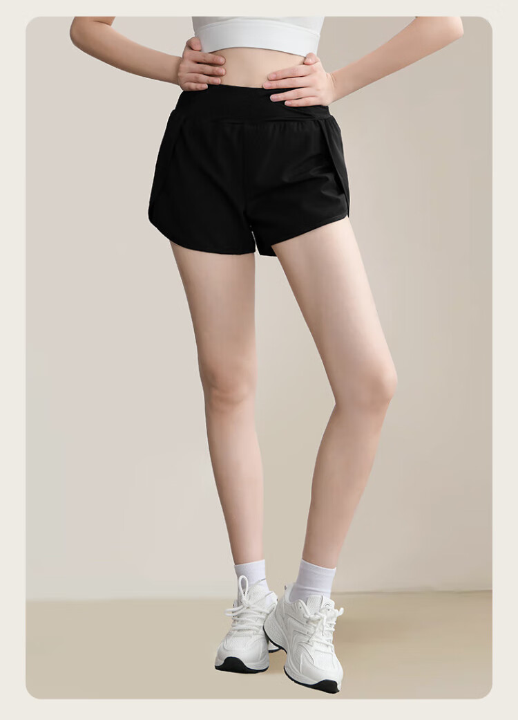 VICTORIATOURIST Sportshorts für Damen, Laufen, schnell trocknend, atmungsaktiv, Yoga, lässig, gefälschte zweiteilige Anti-Expositions-Fitnesshose, Xingyao, Schwarz, M