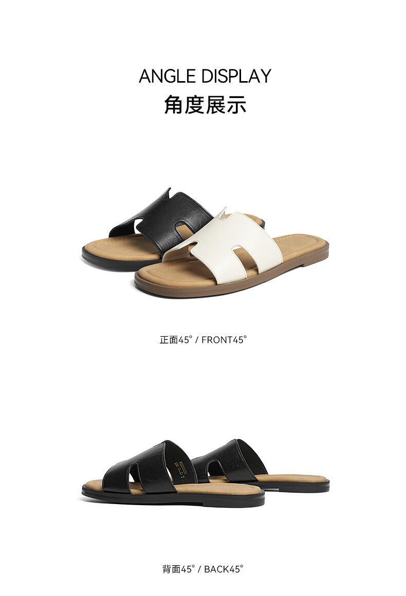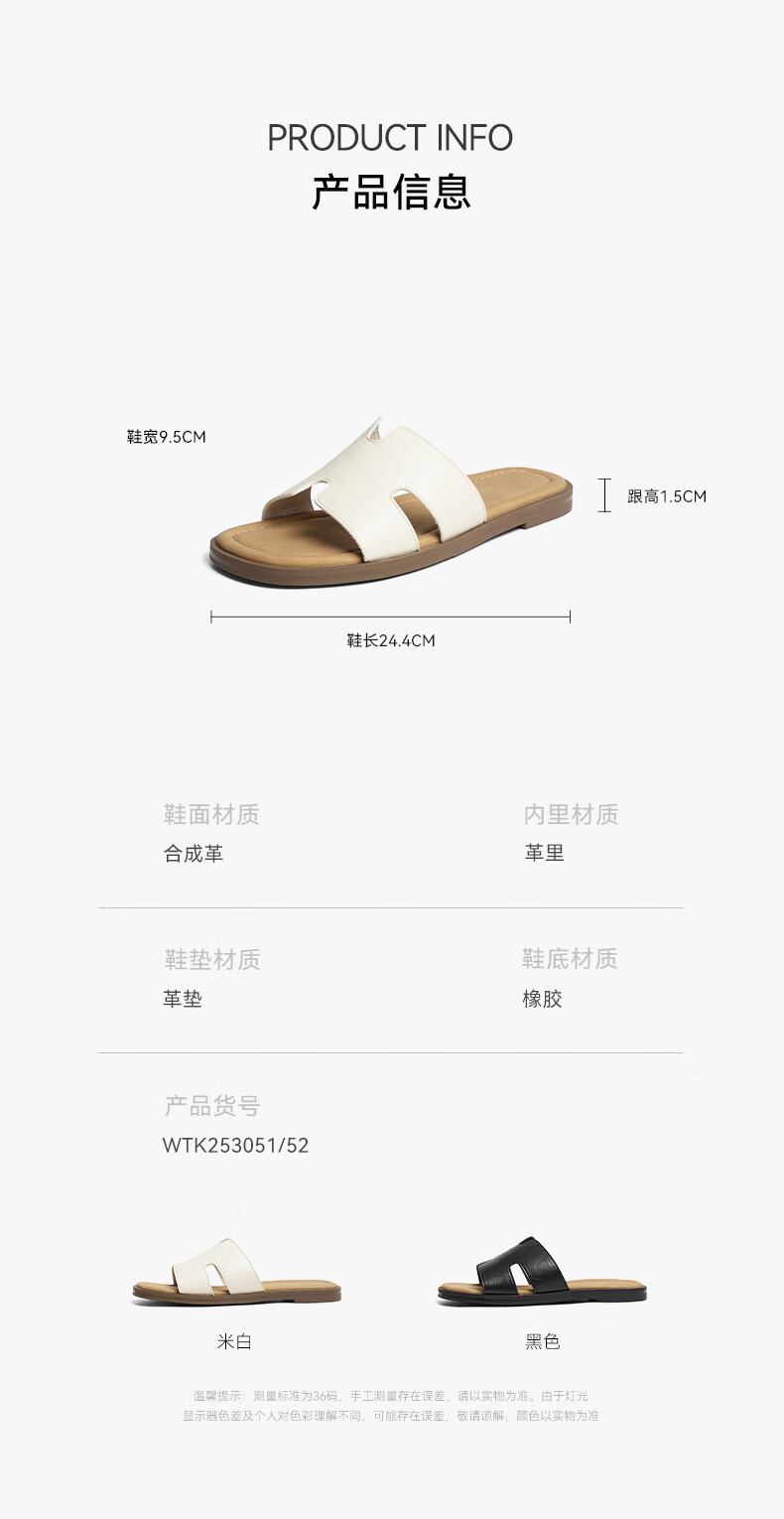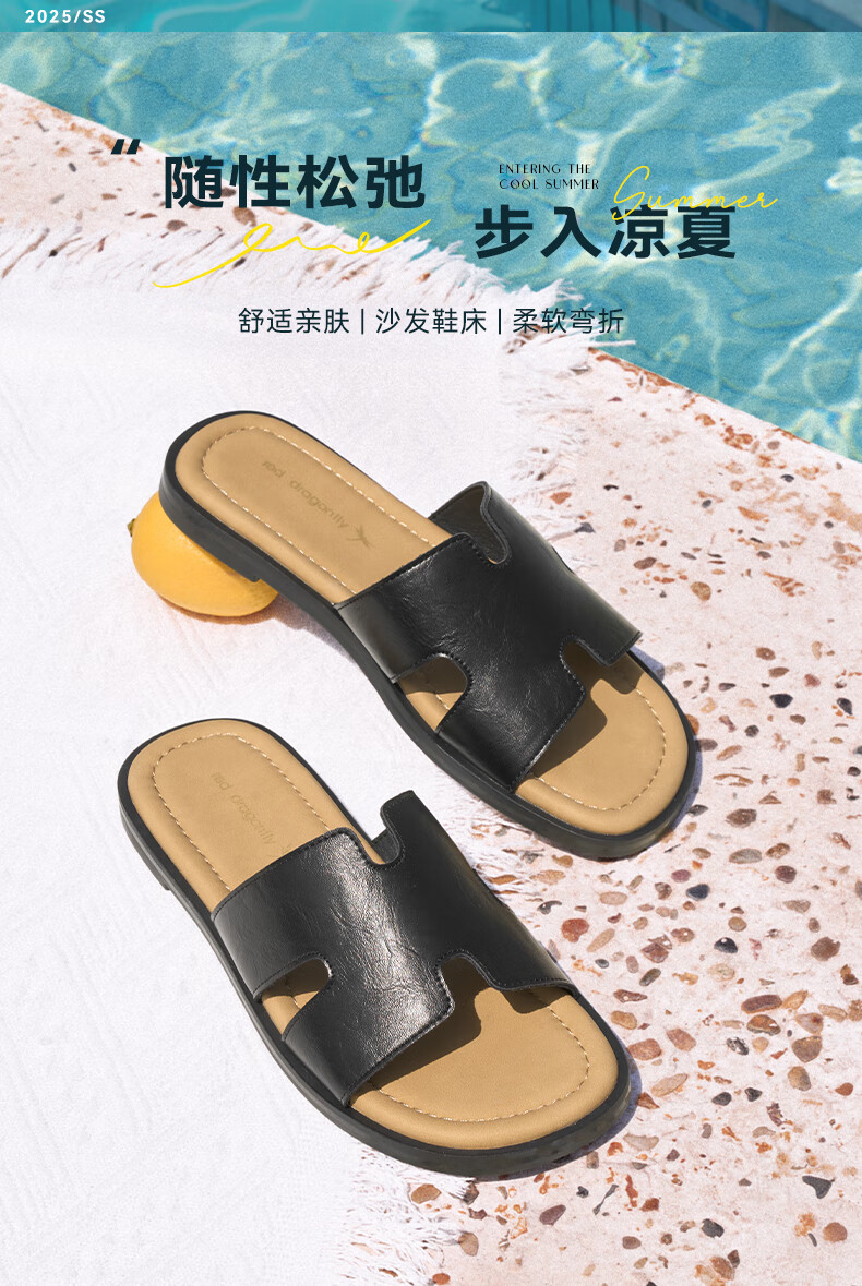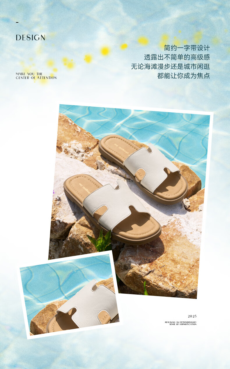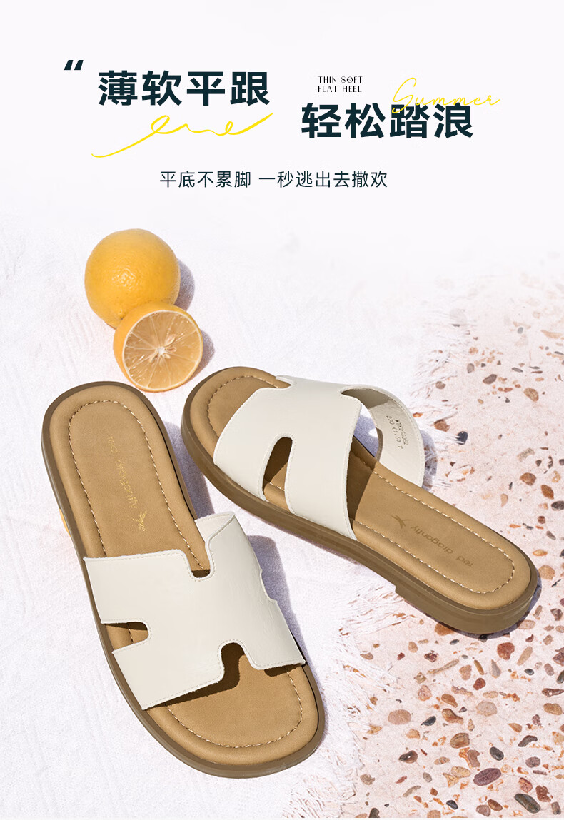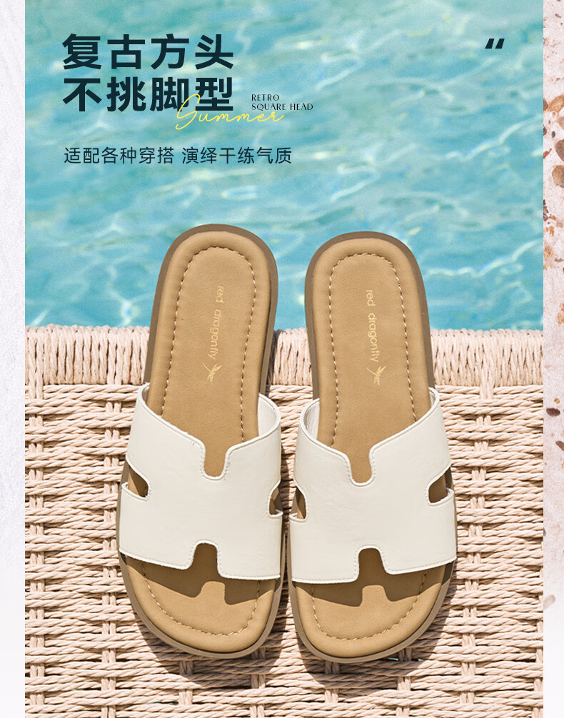 红蜻蜓拖鞋女2025夏季简约时尚户外一字拖平跟拖WTK25305 米白色  39