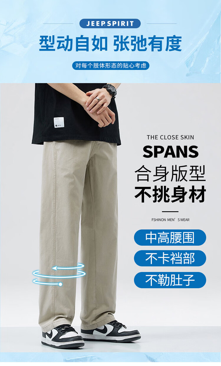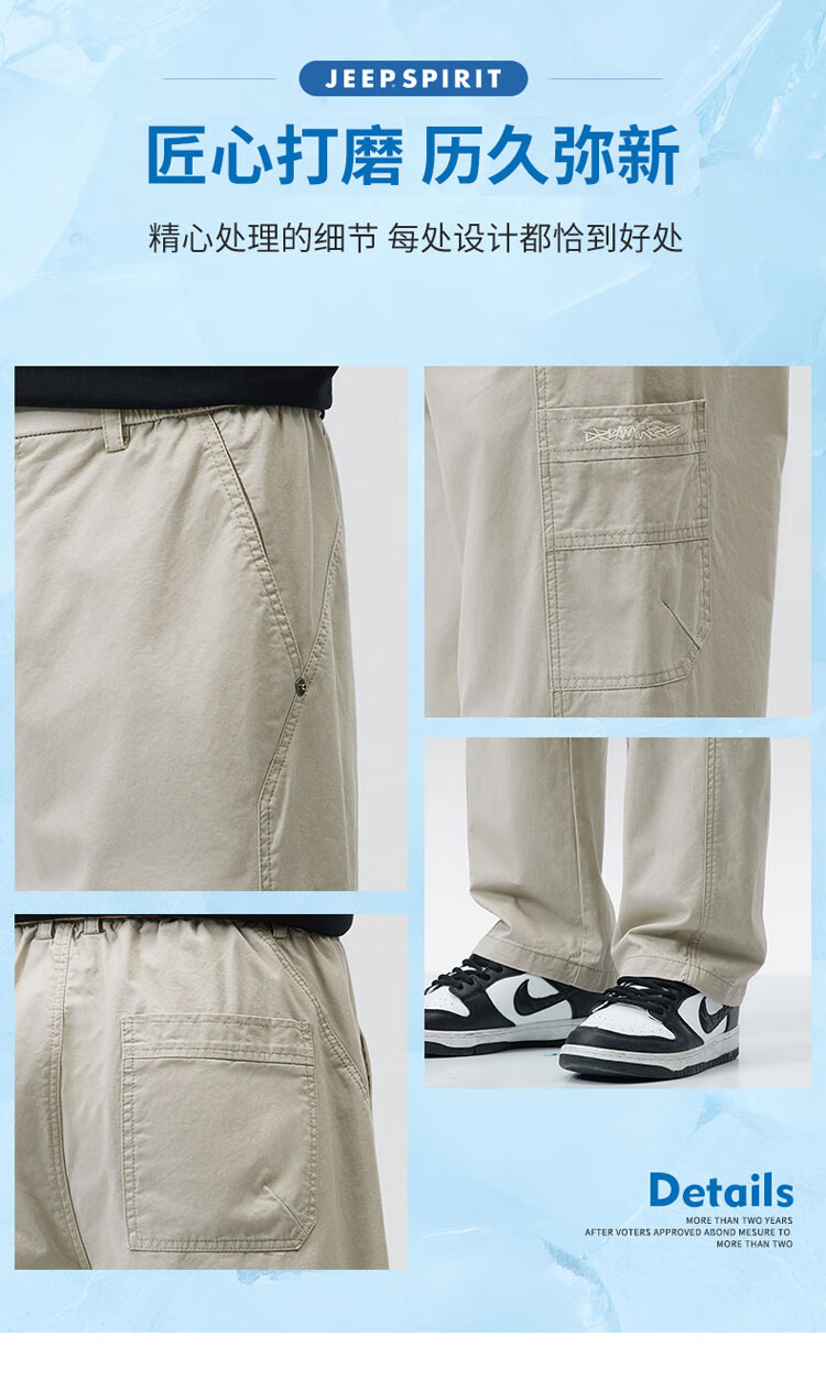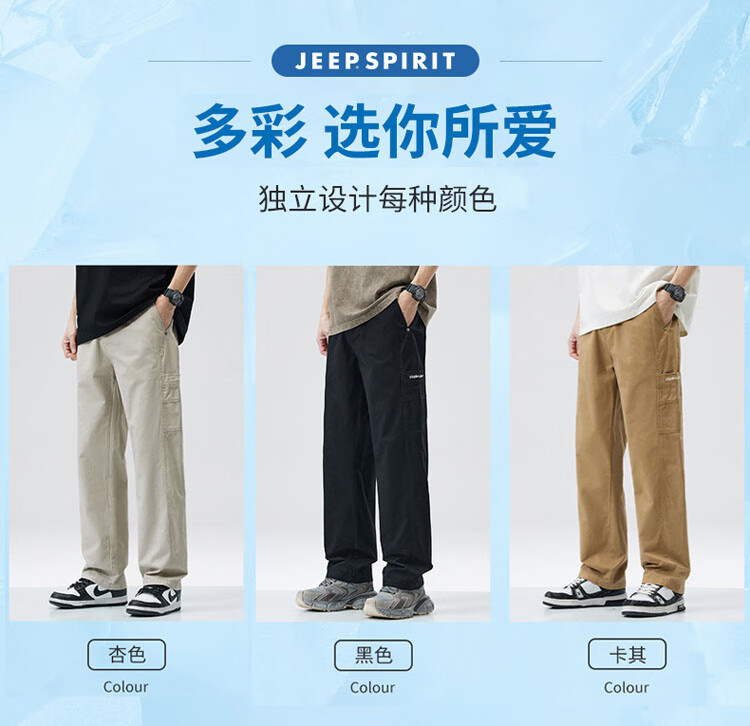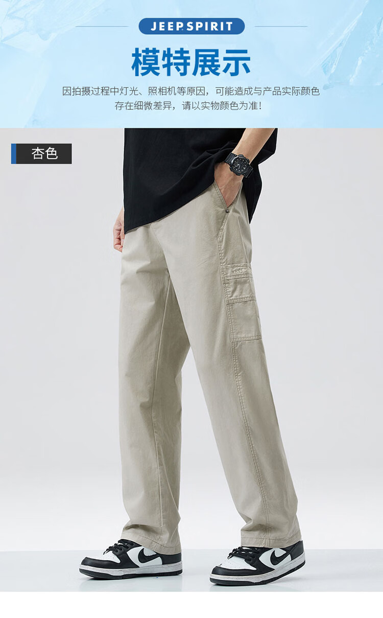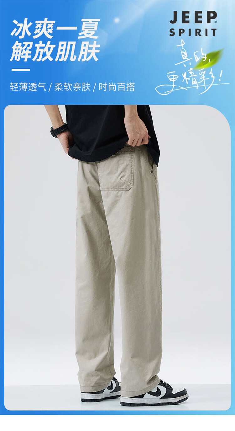 JEEP SPIRIT吉普休闲裤男夏季薄款美式工装裤子男裤阔腿直筒裤 杏色  XL