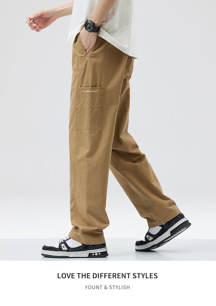 JEEP SPIRIT吉普休闲裤男夏季薄款美式工装裤子男裤阔腿直筒裤 杏色 XL