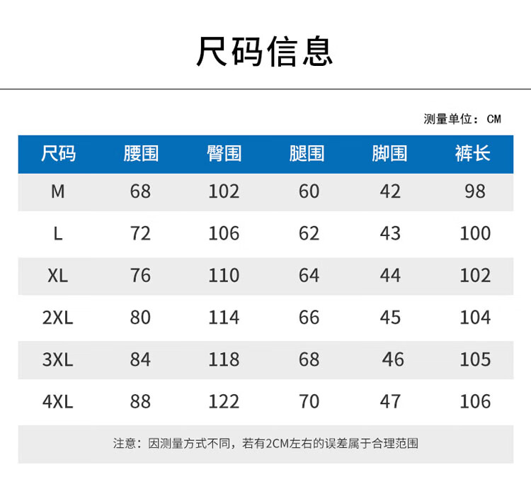 Outseam (cm) 99 cm 101.5 cm 104 cm 106.5 cm 109 cm