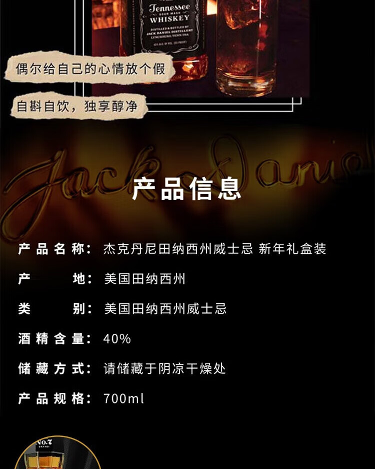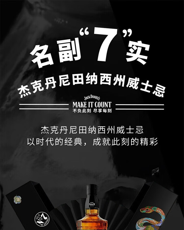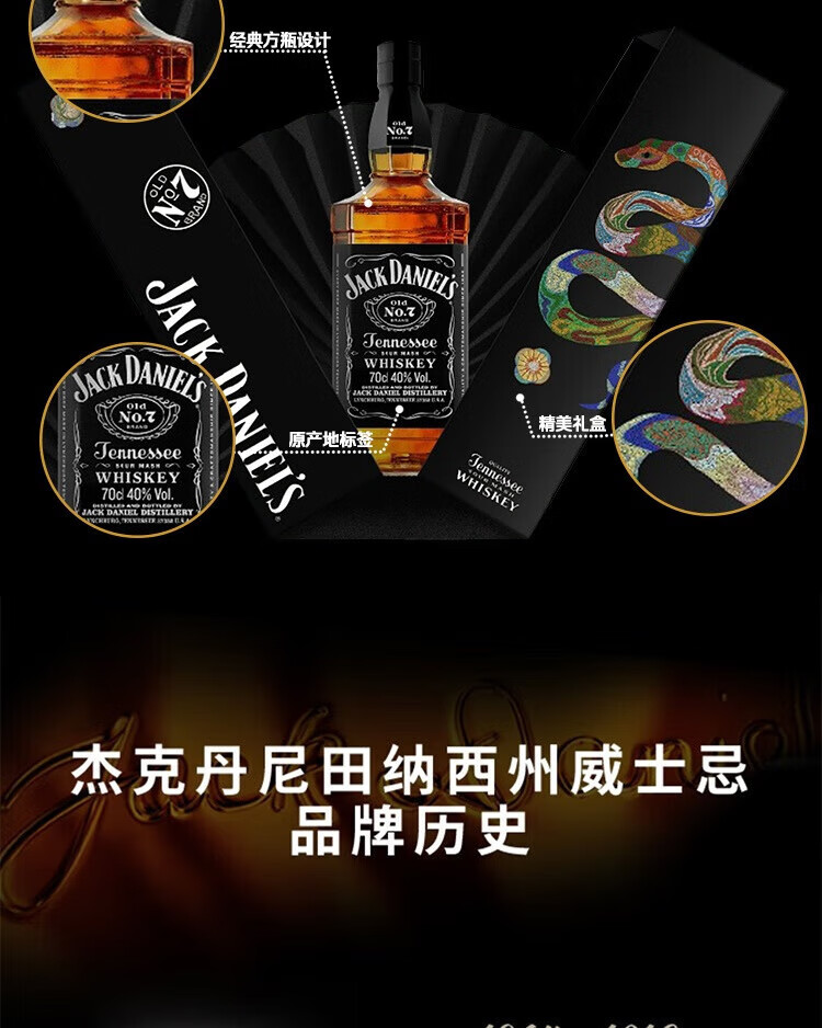 杰克丹尼(Jack Daniels)美国田纳西州调和型威士忌40度黑标蛇年礼盒装 700ml*1瓶节日送礼