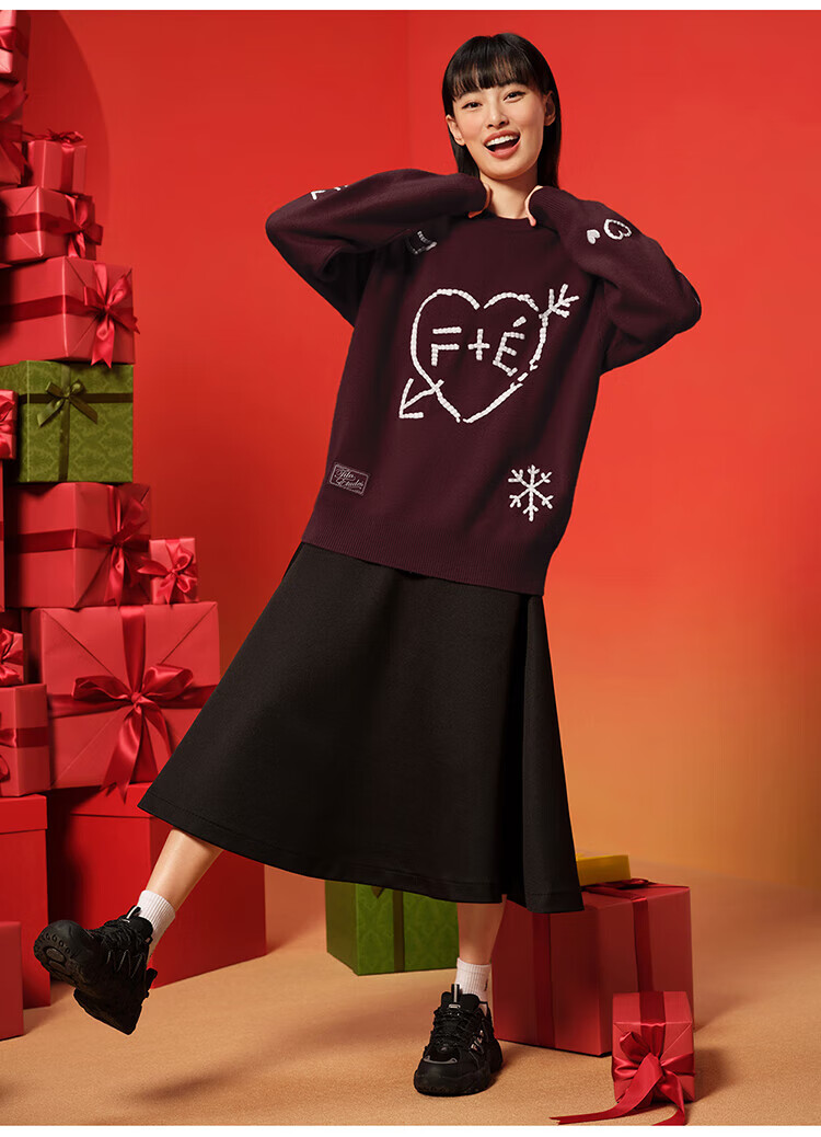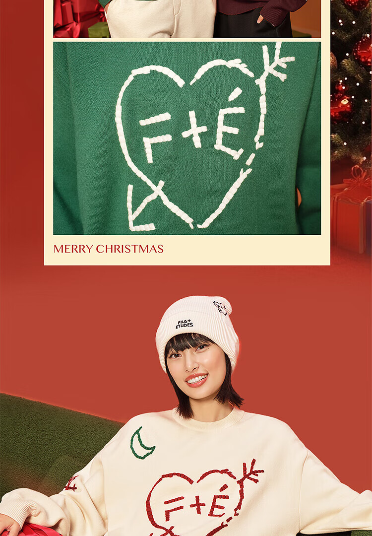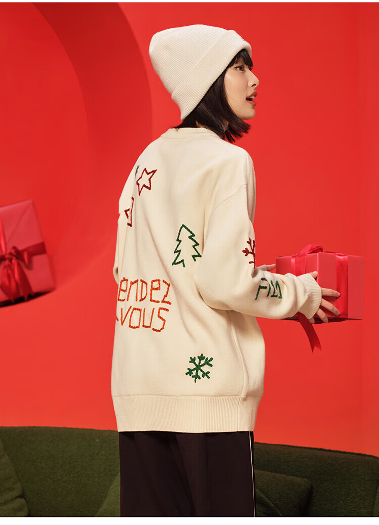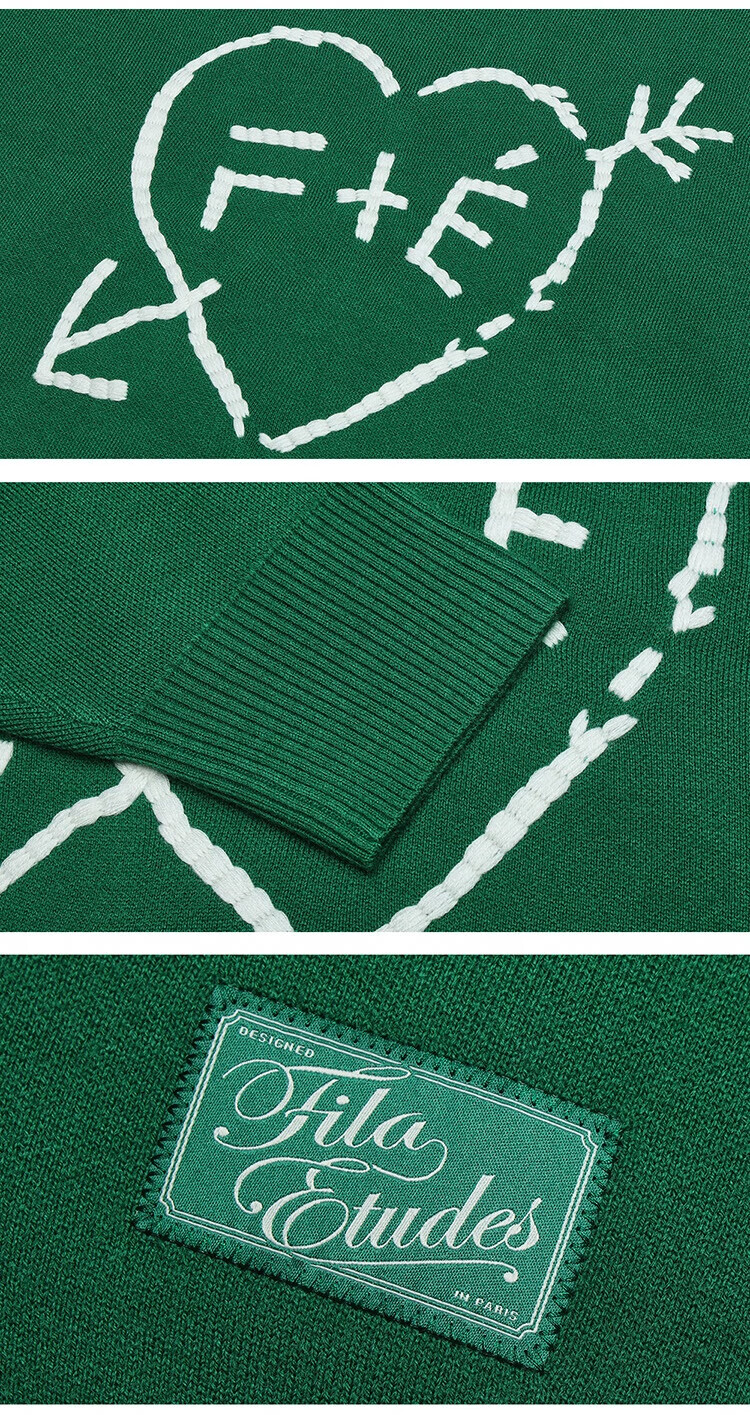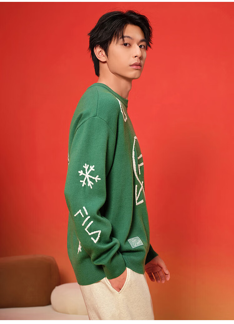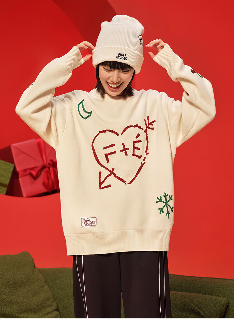 FILA Official Couple's Knitted Sweater 2025 Fashionable and Comfortable Graffiti Hand-Embroidered Pullover Sweater