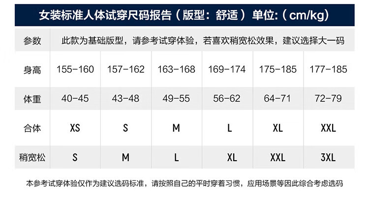 China (cm) 160-165/84-86 165-170 / 88-90 167-172 / 92-96 168-173 / 98-102 170-176 / 106-110