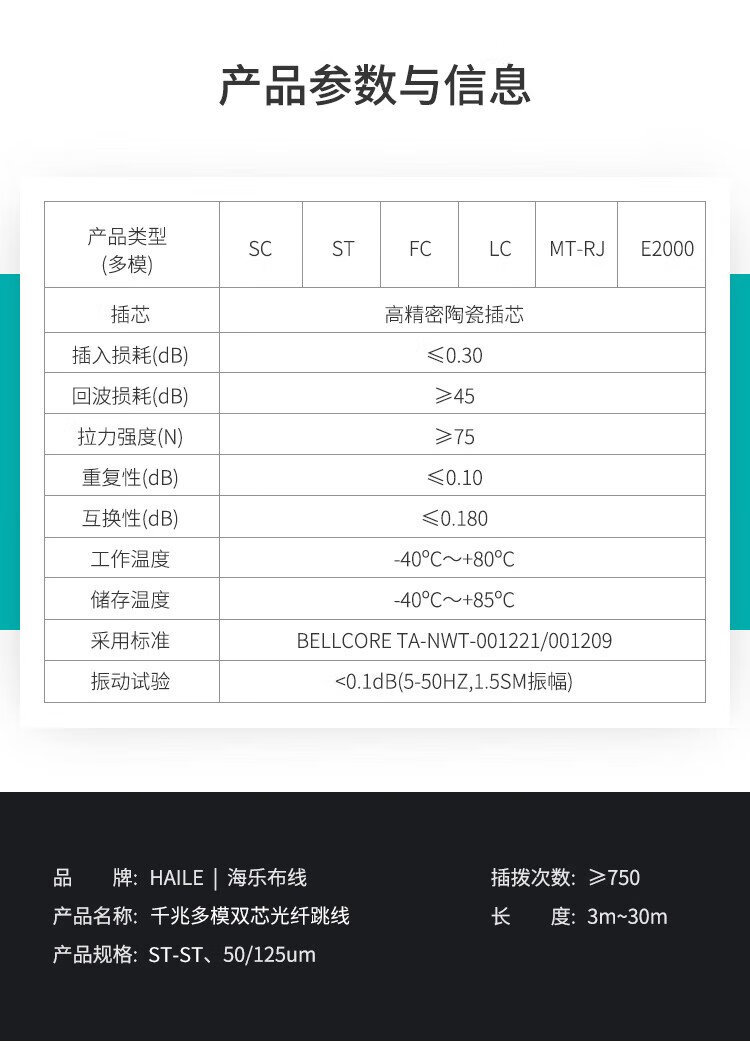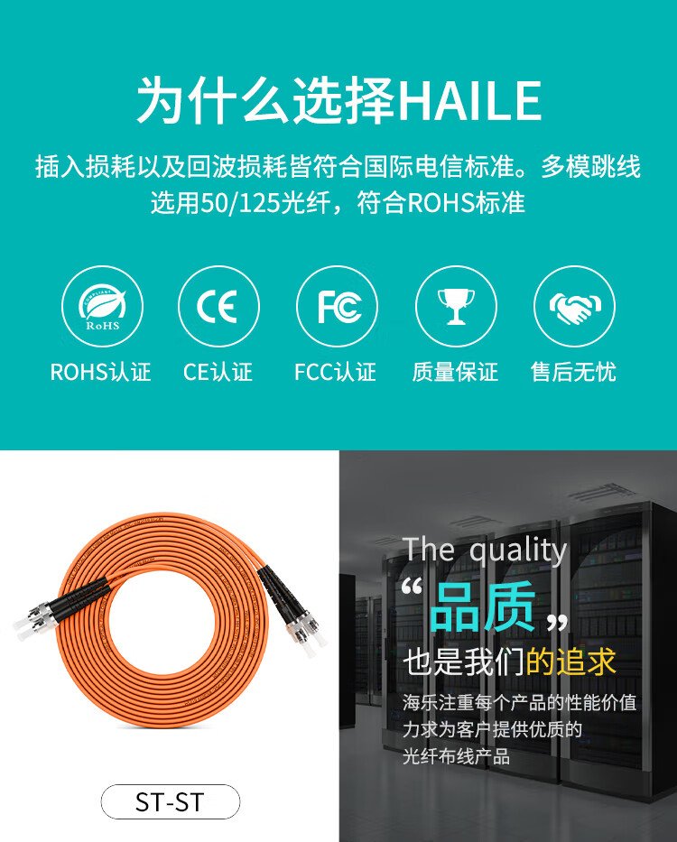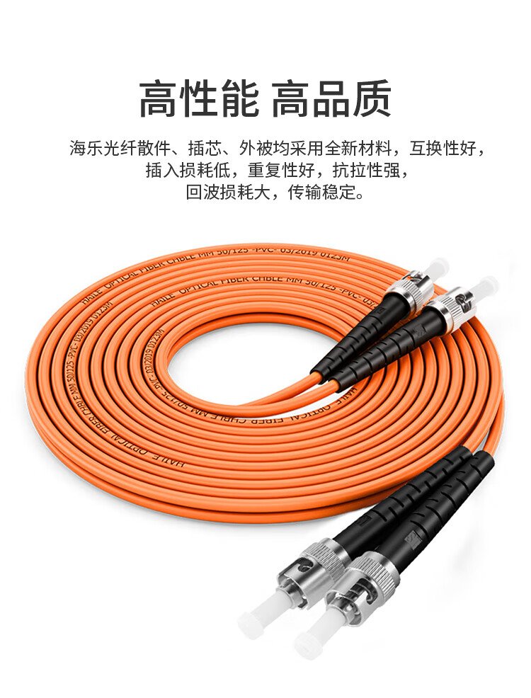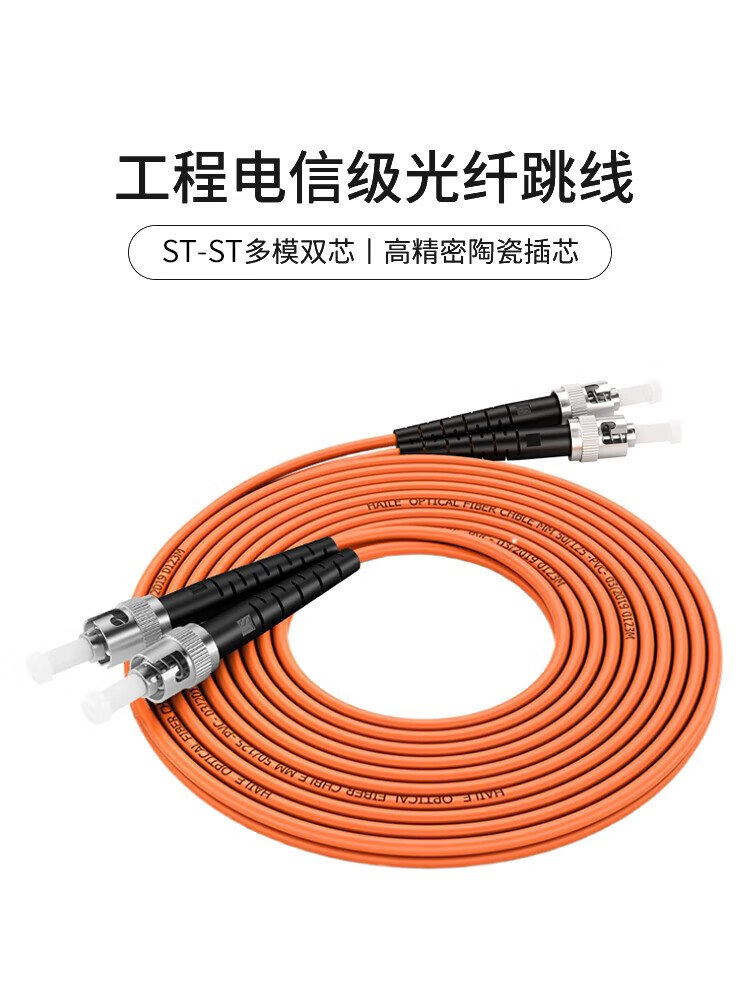 HAILE海乐 千兆多模光纤跳线 OM2双芯ST-ST尾纤50/125跳纤 3米 HJ-2ST-ST-MD3