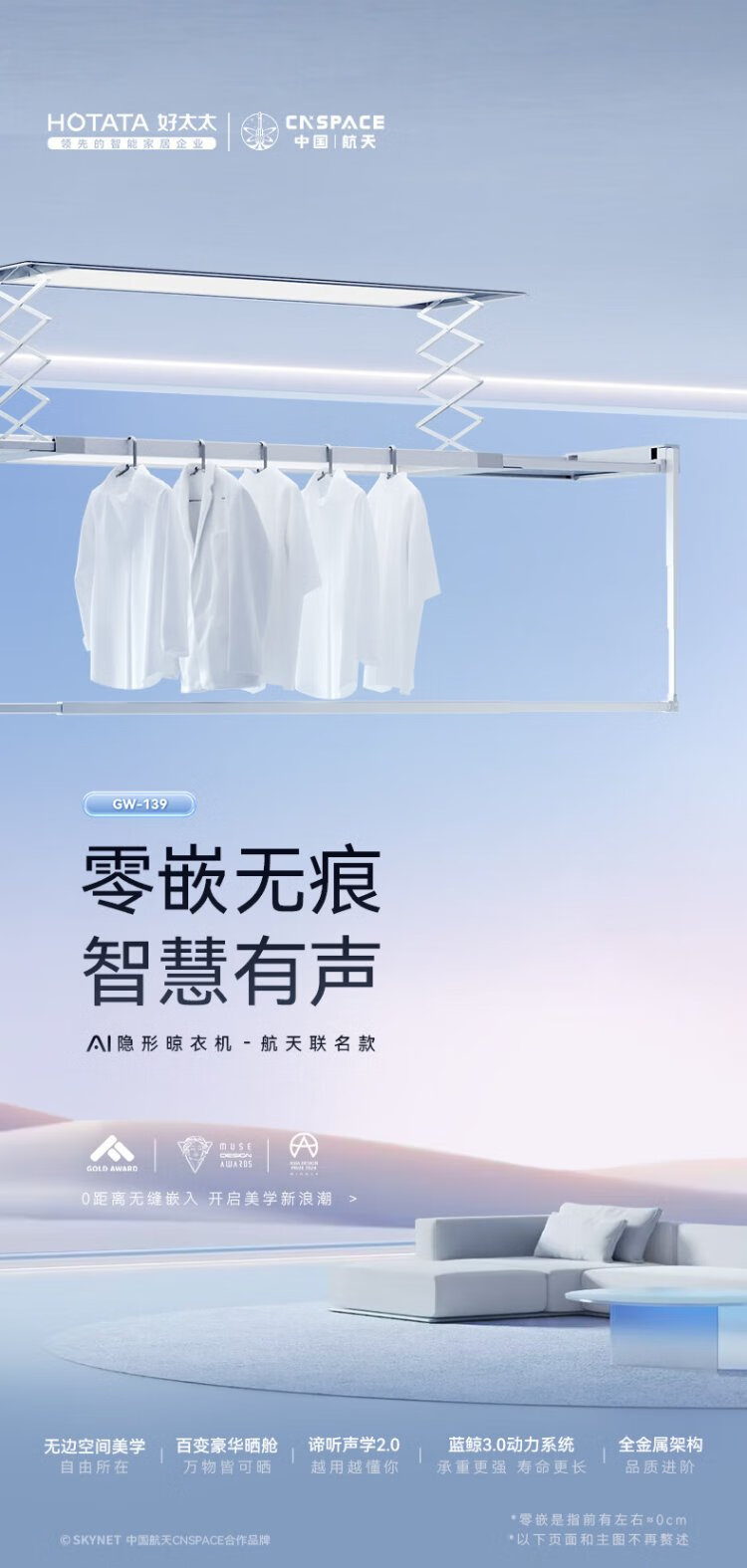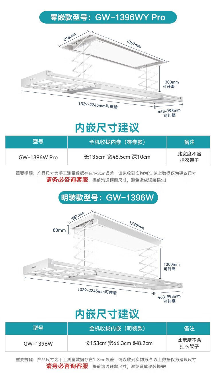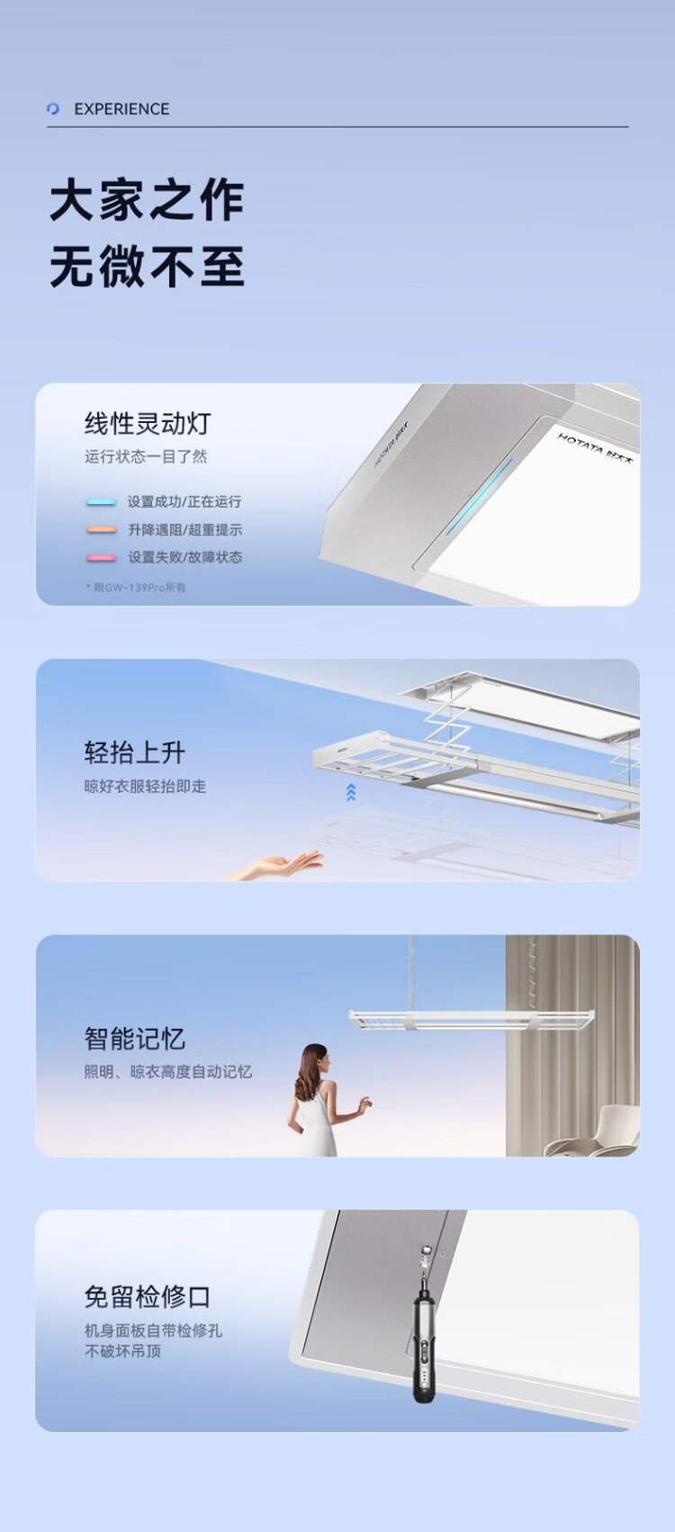 Hotata electric clothes drying rack hidden smart clothes dryer automatic lifting balcony clothes dryer GW-1396WY Pro