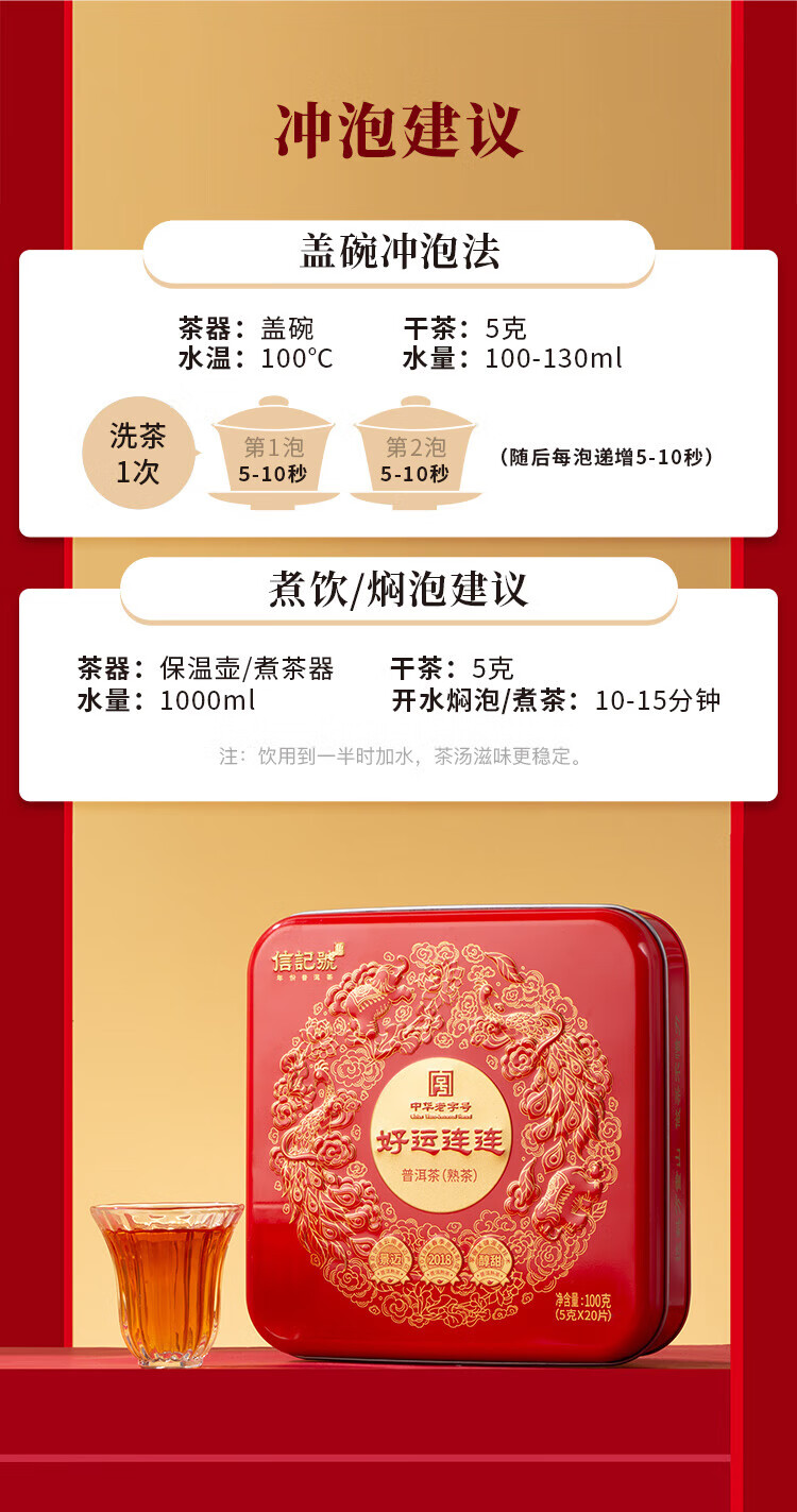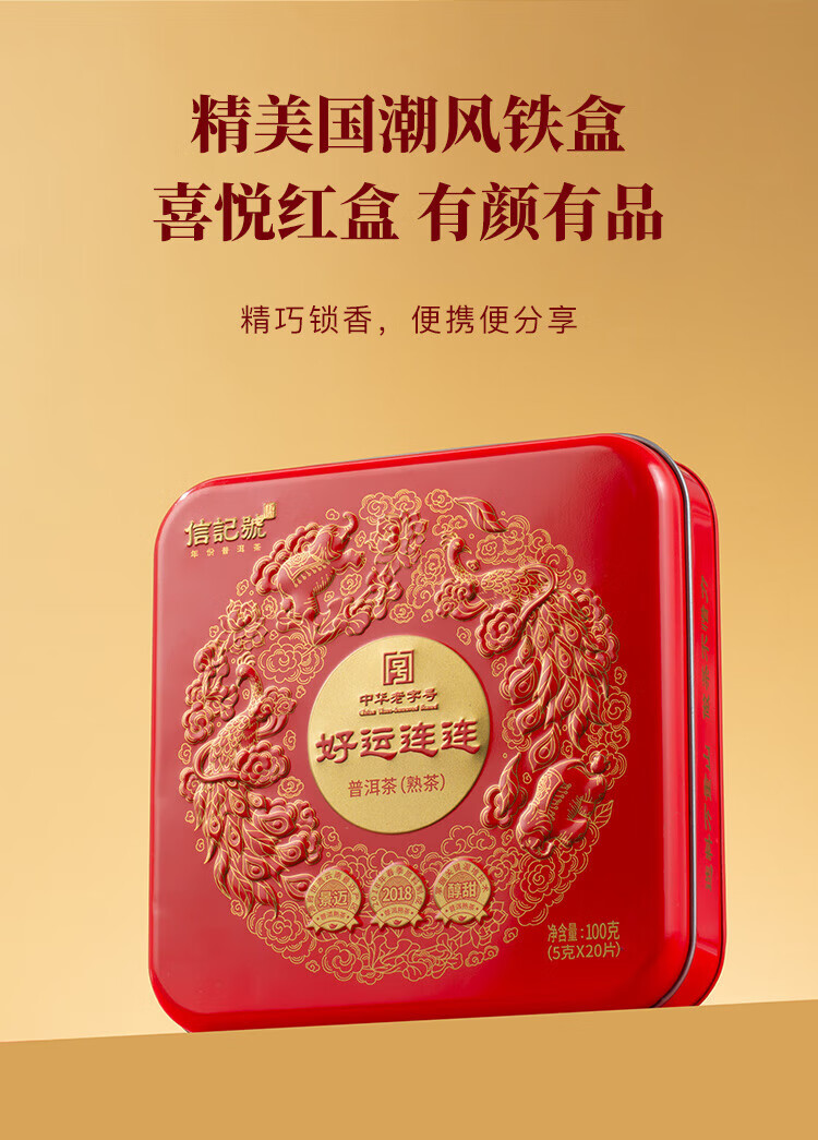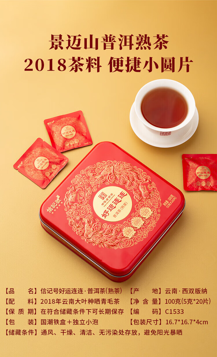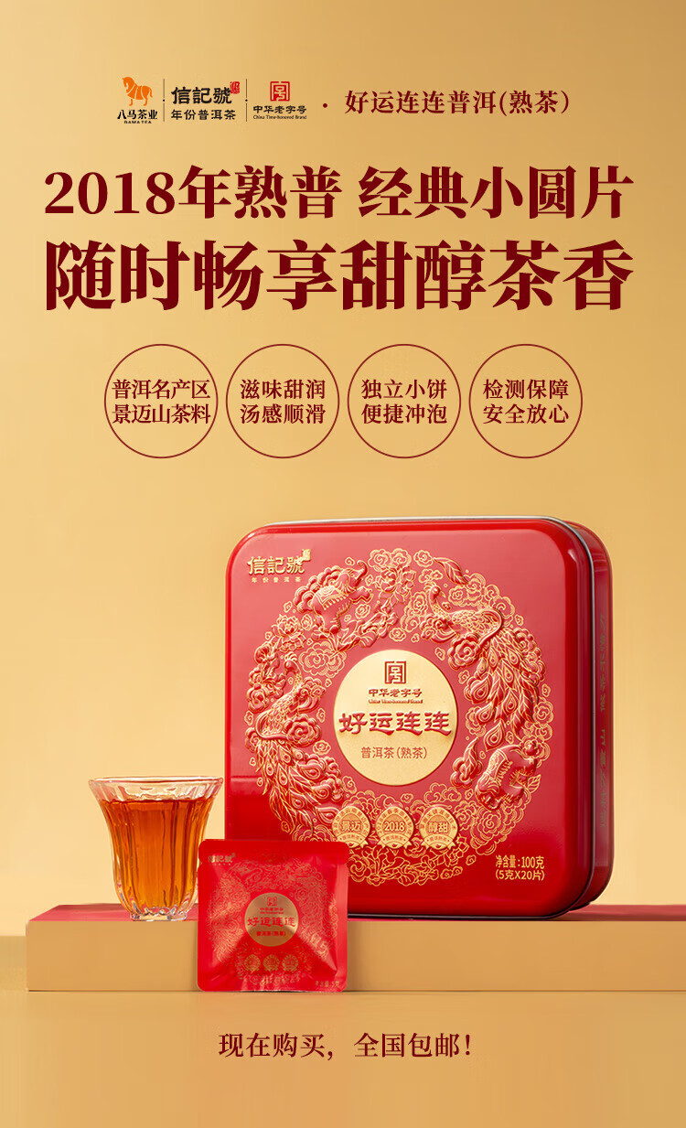 八马茶业信记号 中华老字号 普洱茶 熟普100g 2018年小圆饼 茶叶盒装