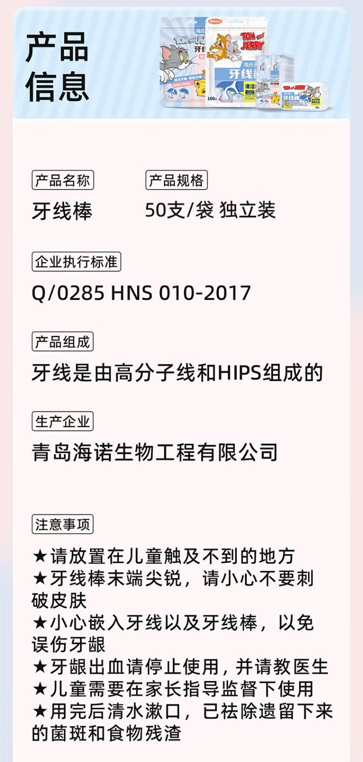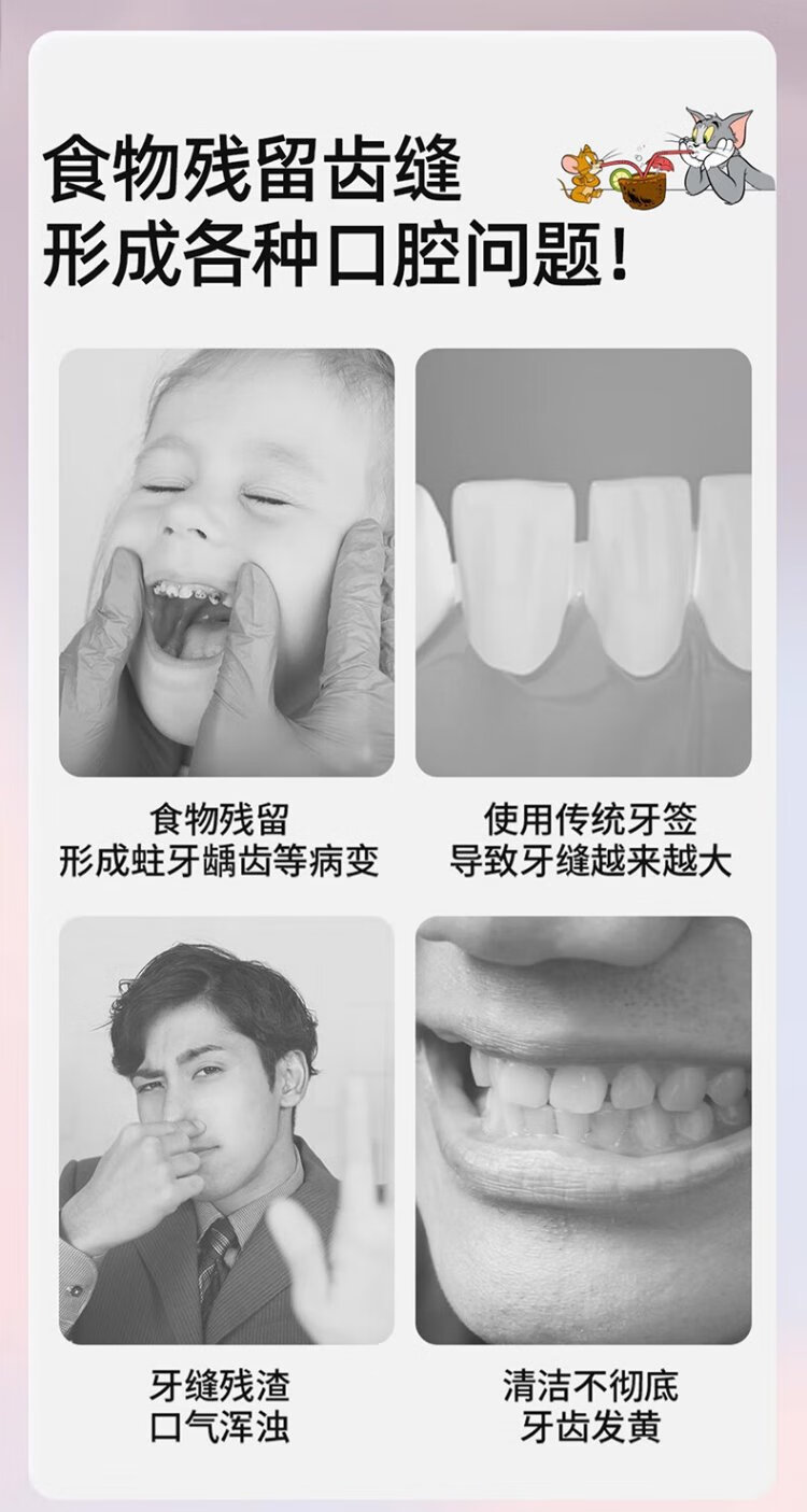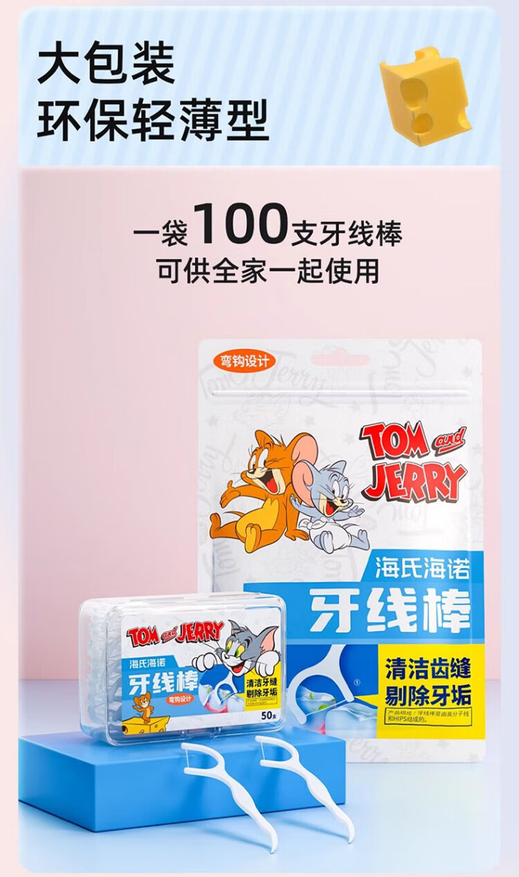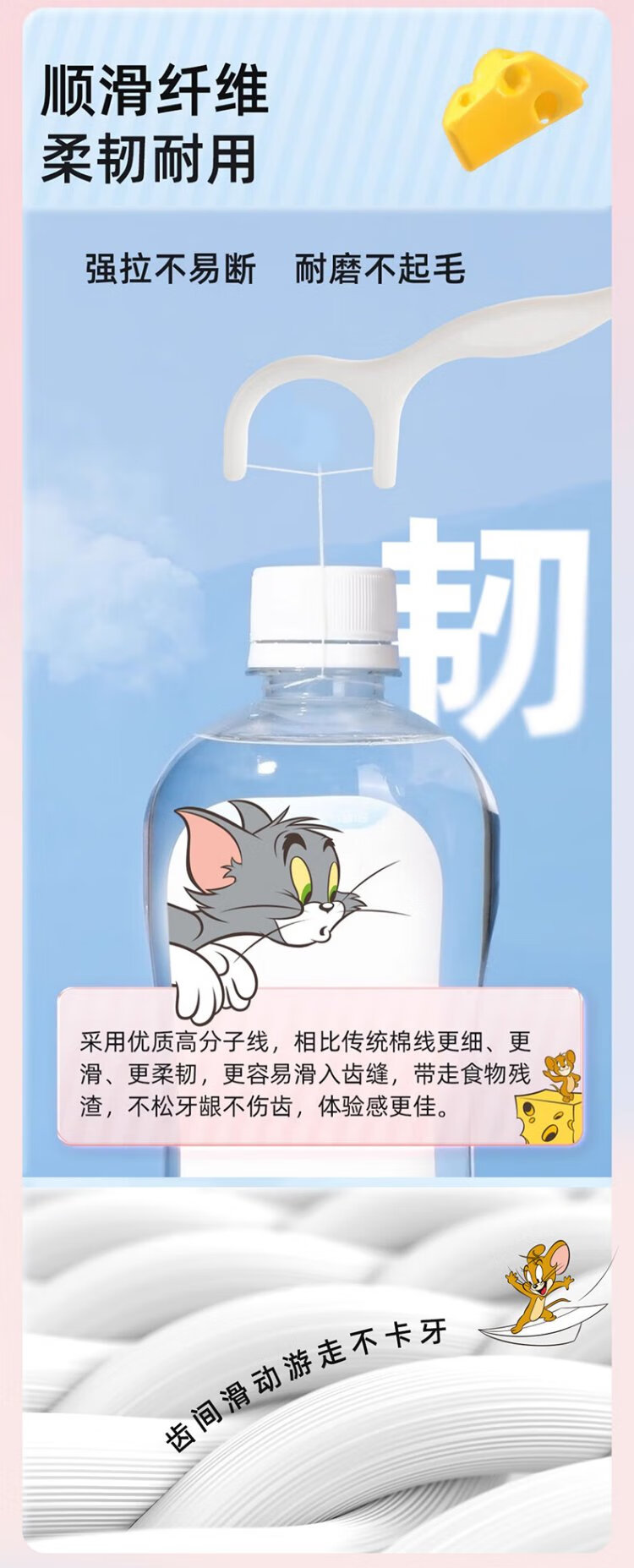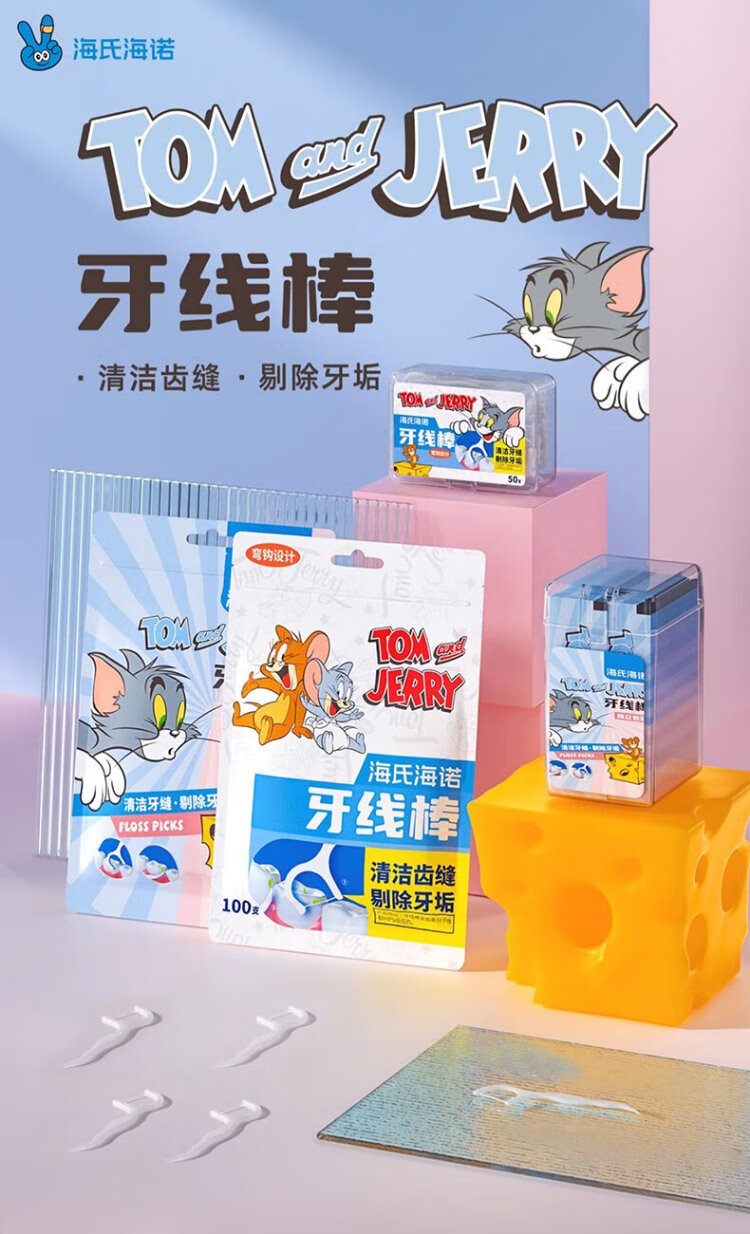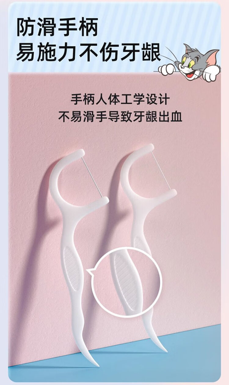 Hainuo Tom and Jerry co-branded dental floss picks, 500 pieces, round toothpicks to clean between teeth, ultra-fine family sales package