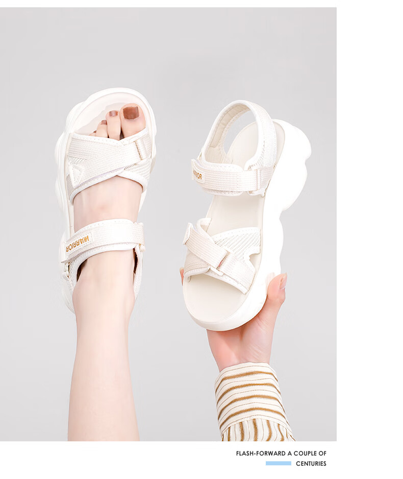 Zurückziehen Damenschuhe Sommer neue lässige Sandalen für Damen Sport-Strandschuhe mit dicken Sohlen für Damen 1449 Beige 39