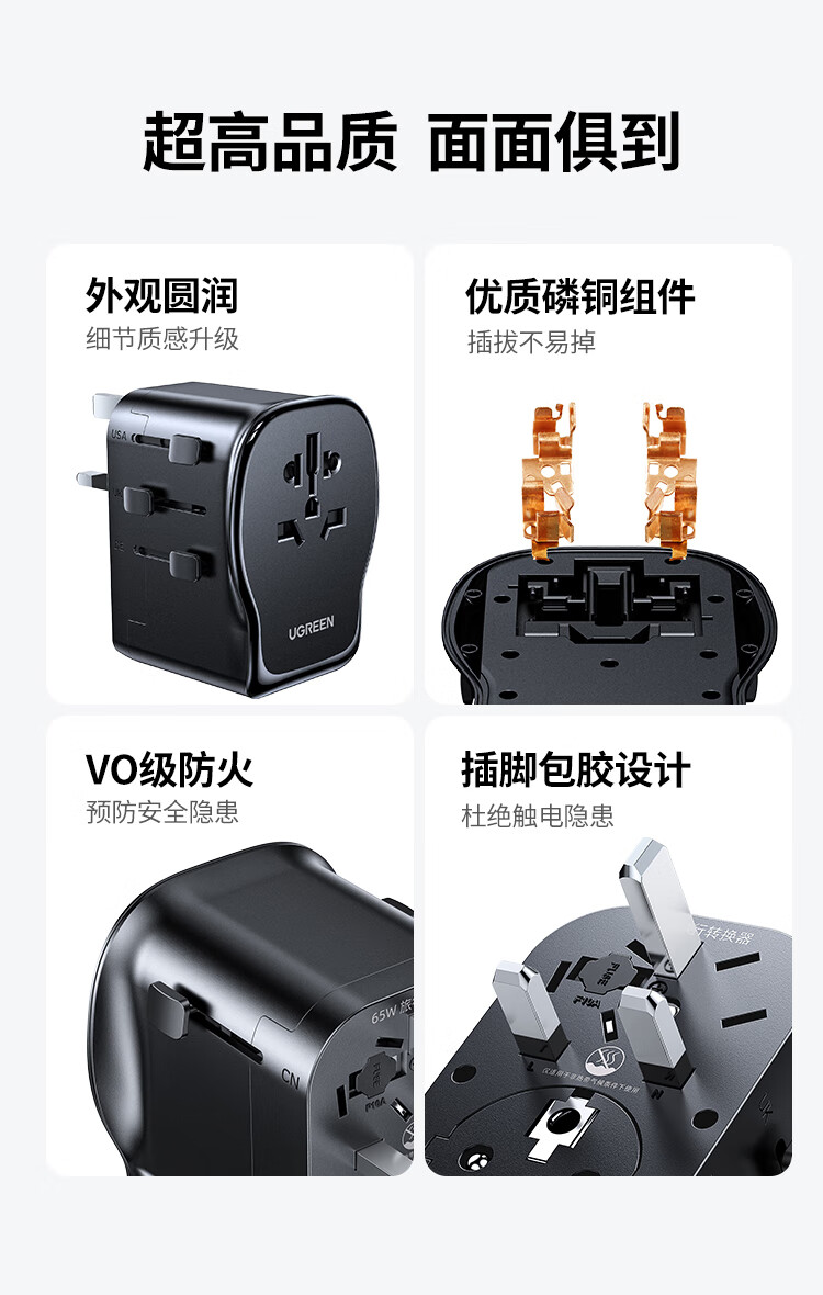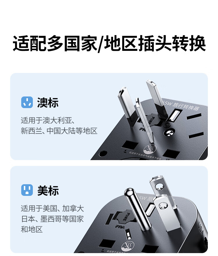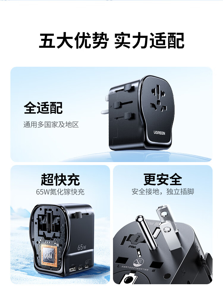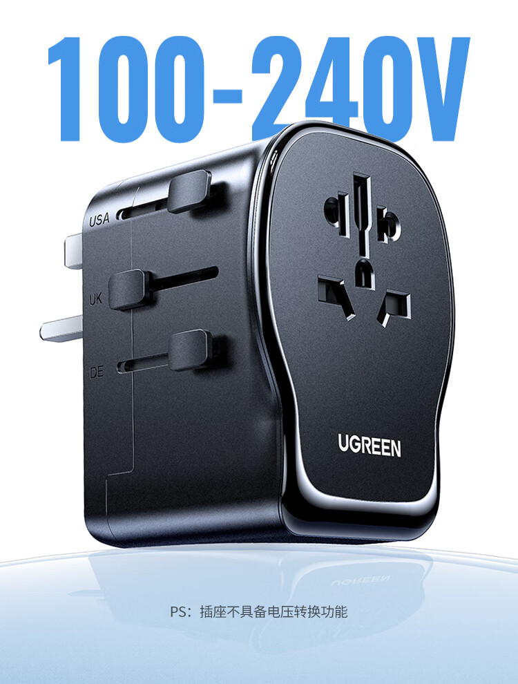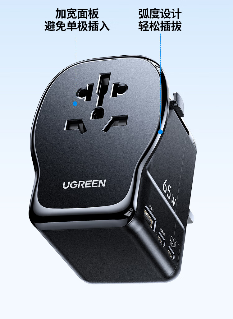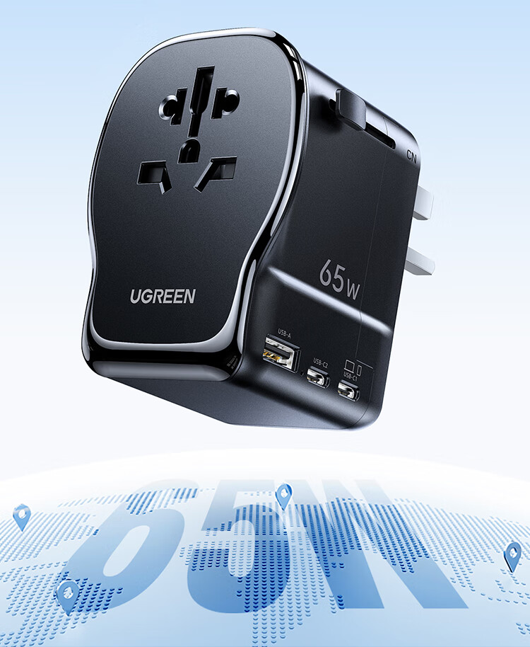 绿联转换插头全球通用/多国旅行转换插头/日本转换插头/65W氮化镓PD快充多口出国留学插座澳美德英标