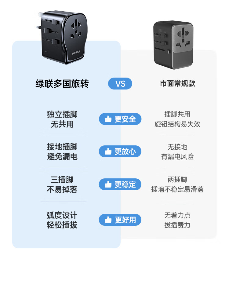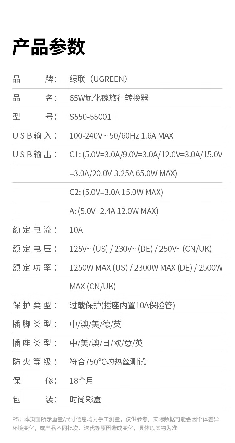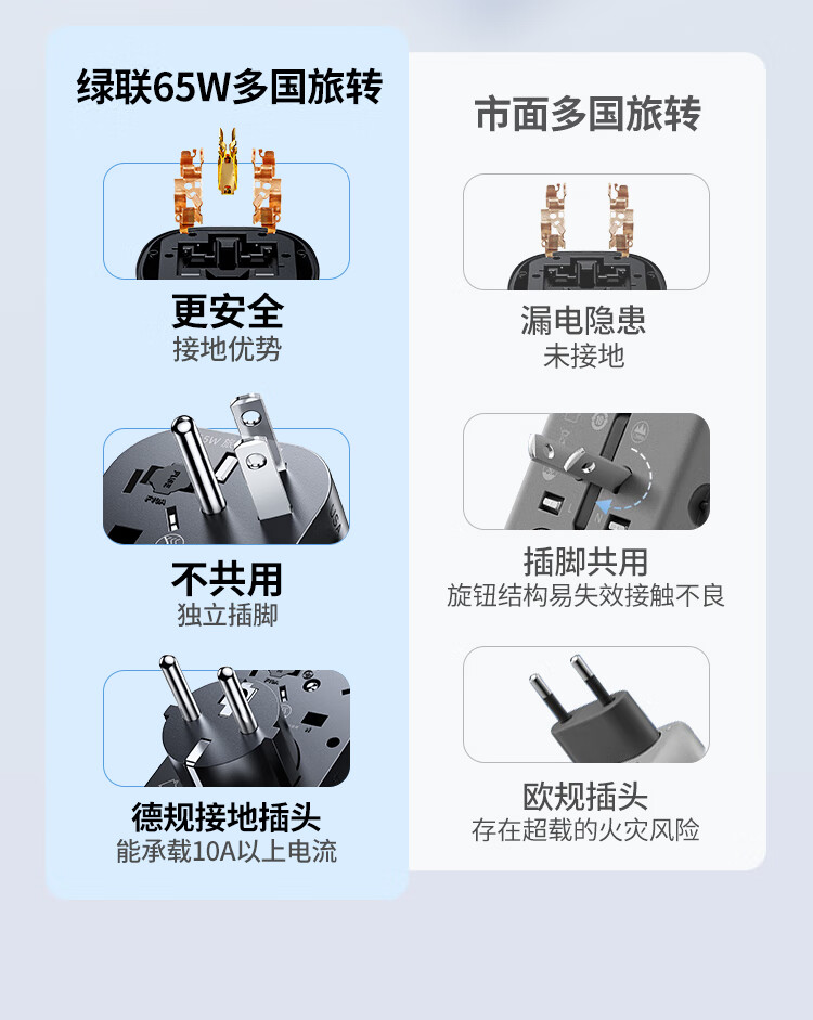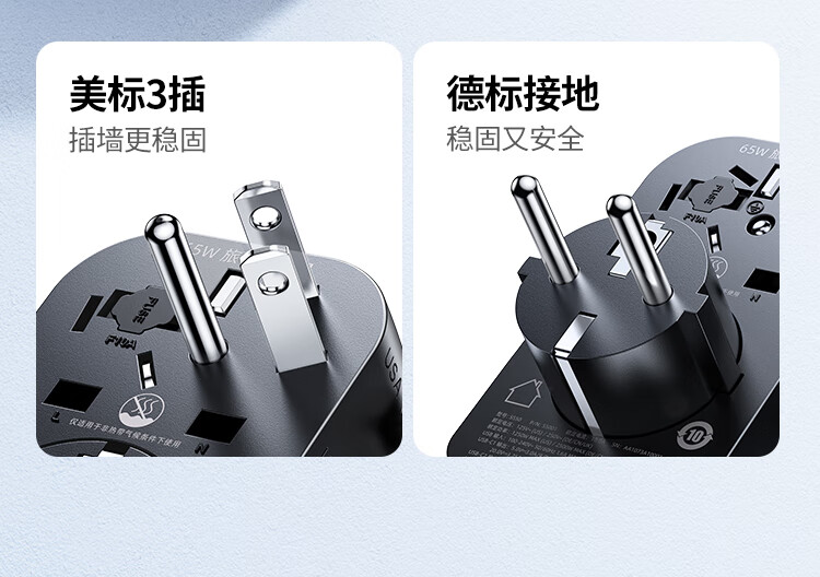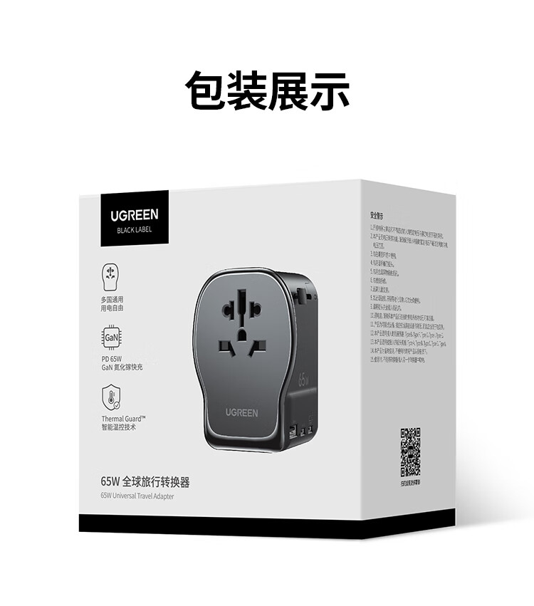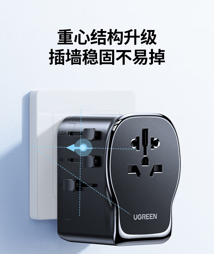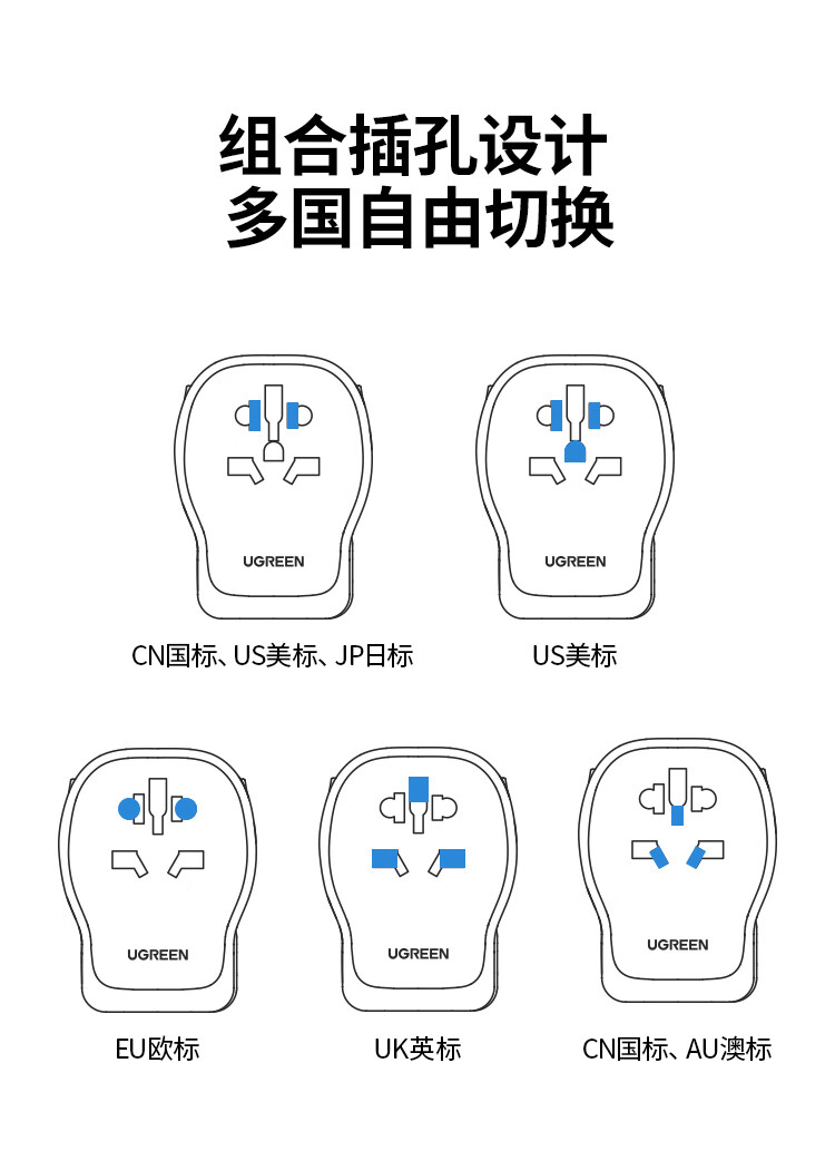 绿联转换插头全球通用/多国旅行转换插头/日本转换插头/65W氮化镓PD快充多口出国留学插座澳美德英标