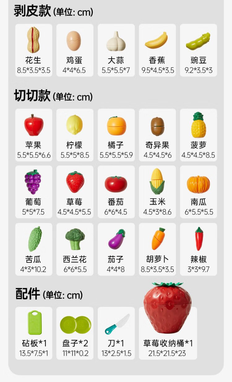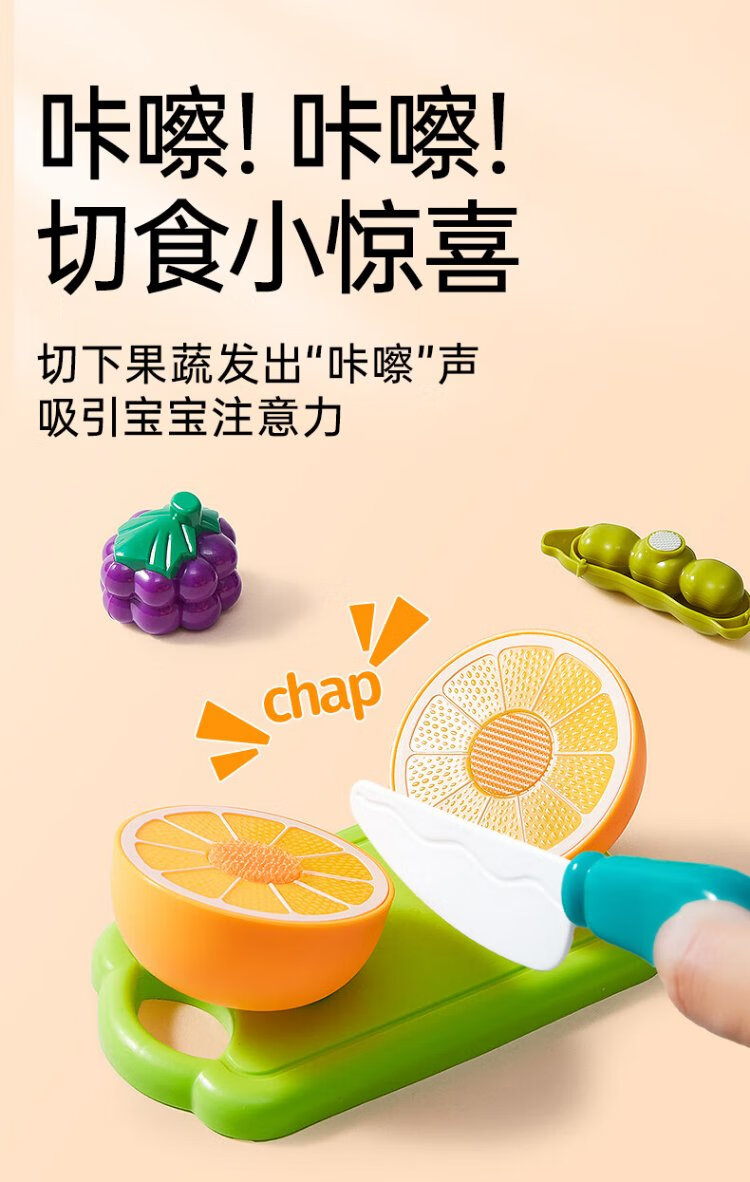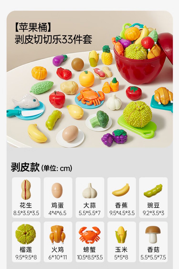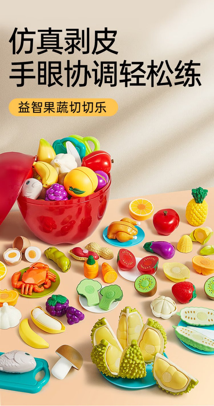 贝恩施儿童水果切切乐剥皮果蔬仿真苹果婴儿可啃咬厨房做饭女孩玩具礼物