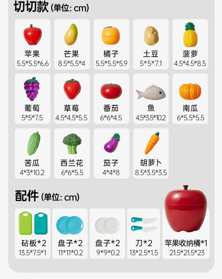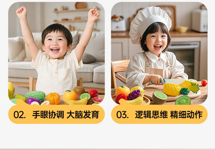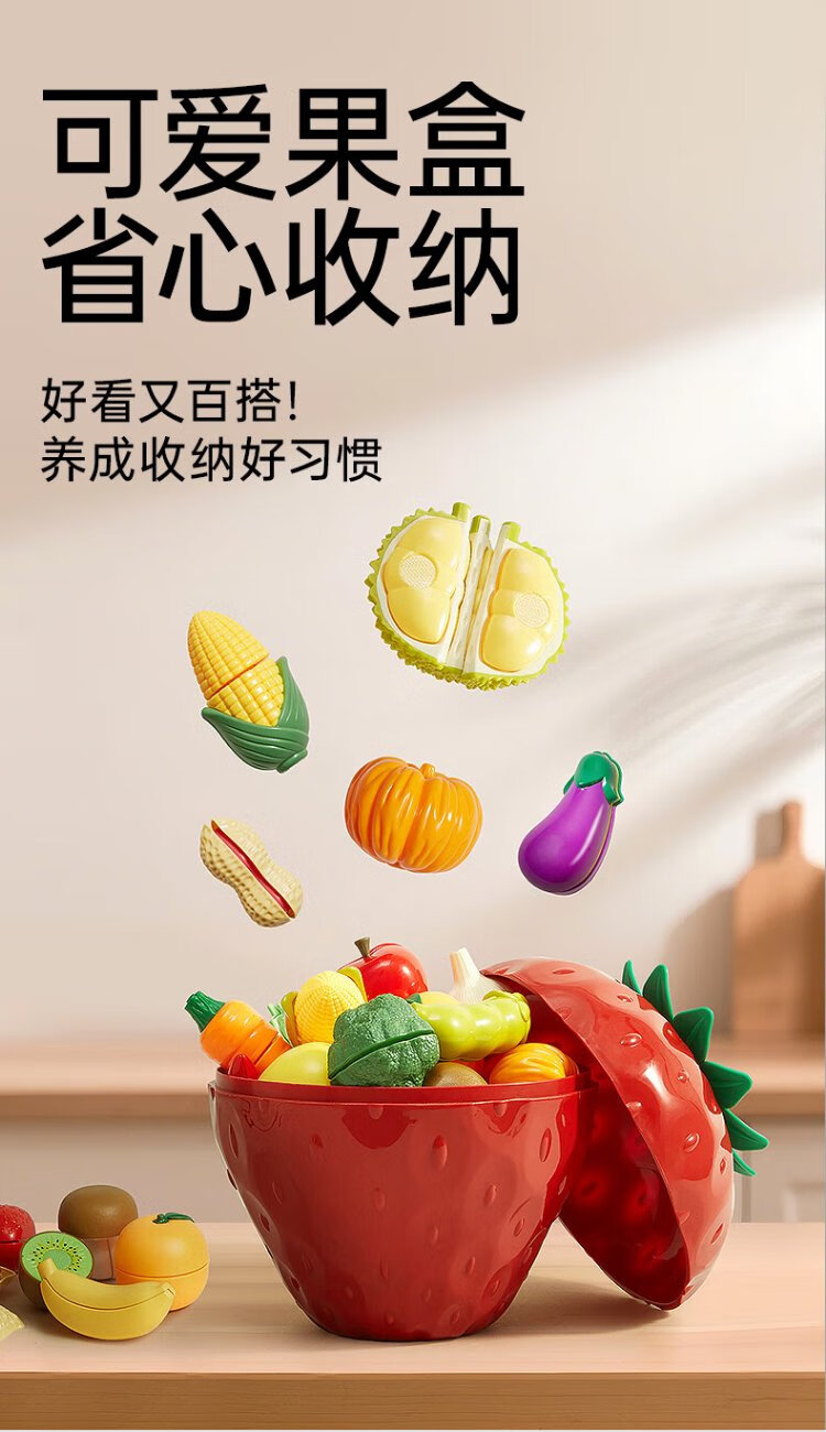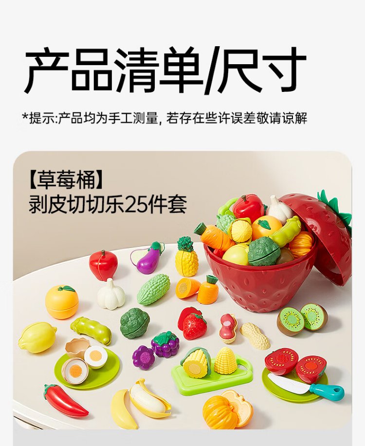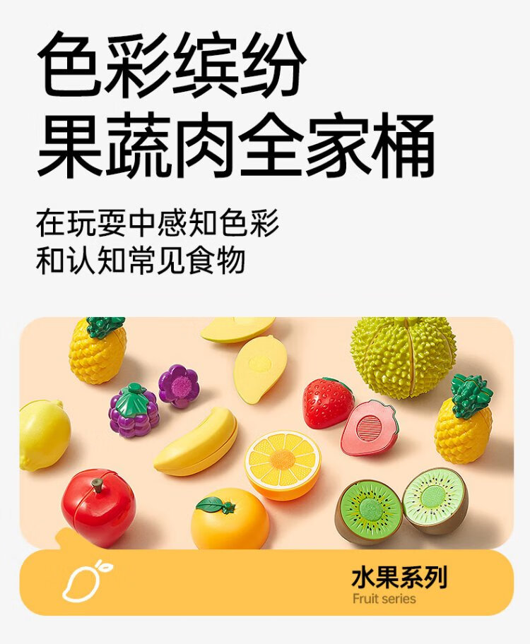 贝恩施儿童水果切切乐剥皮果蔬仿真苹果婴儿可啃咬厨房做饭女孩玩具礼物