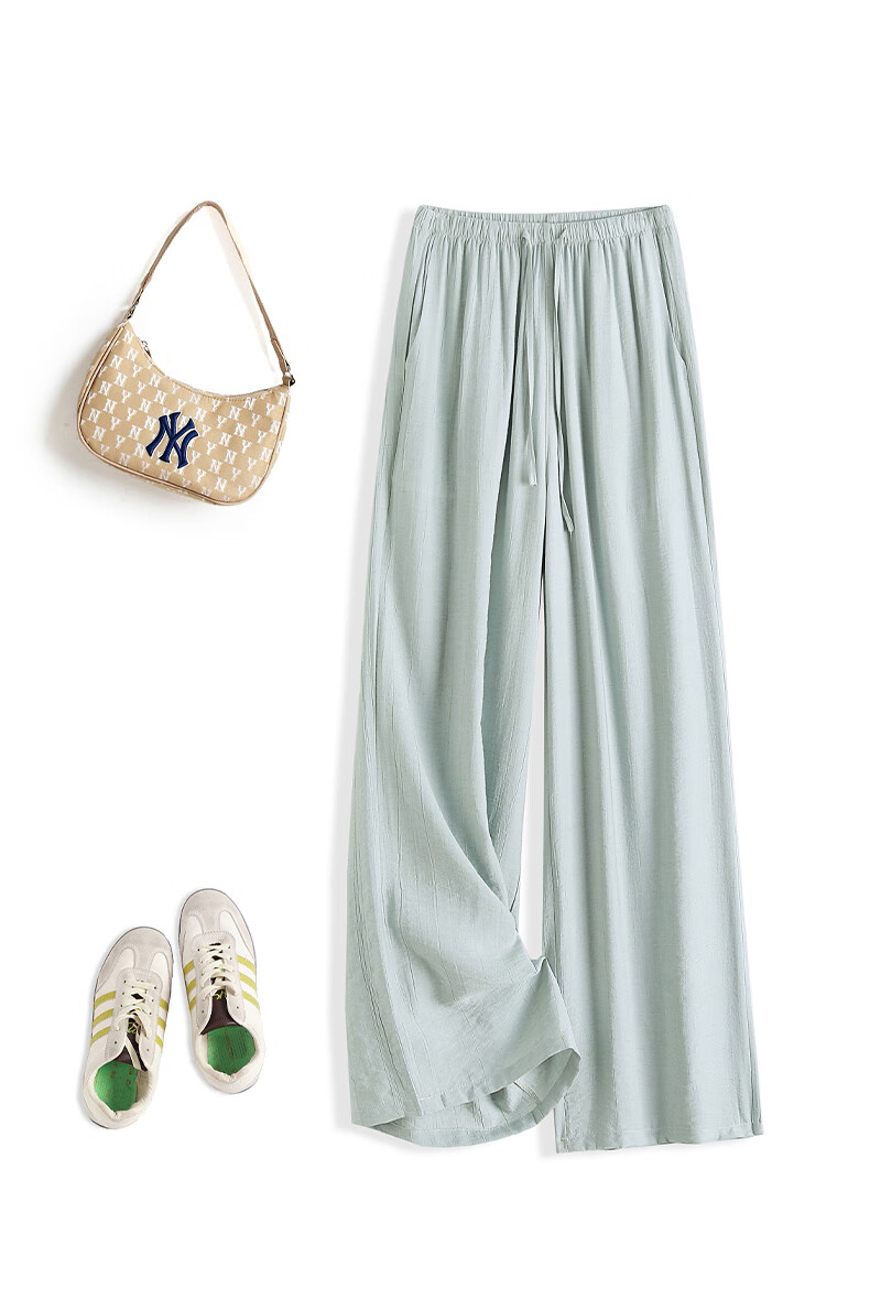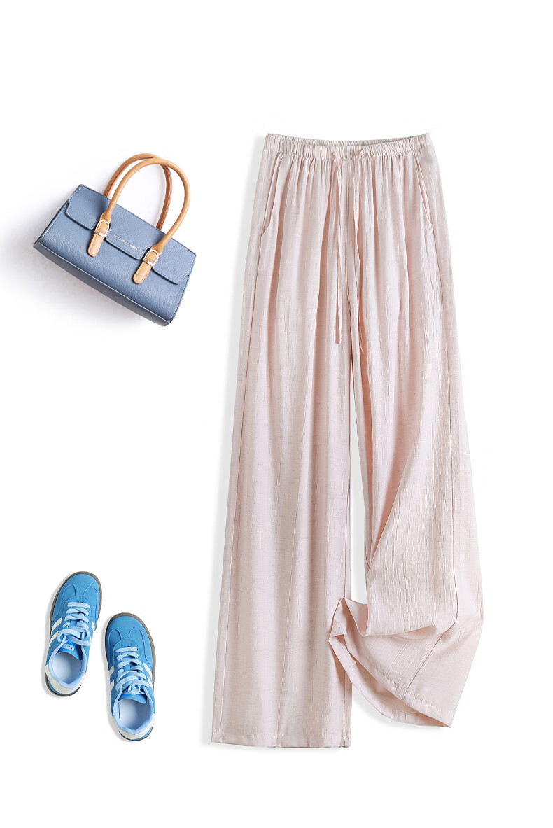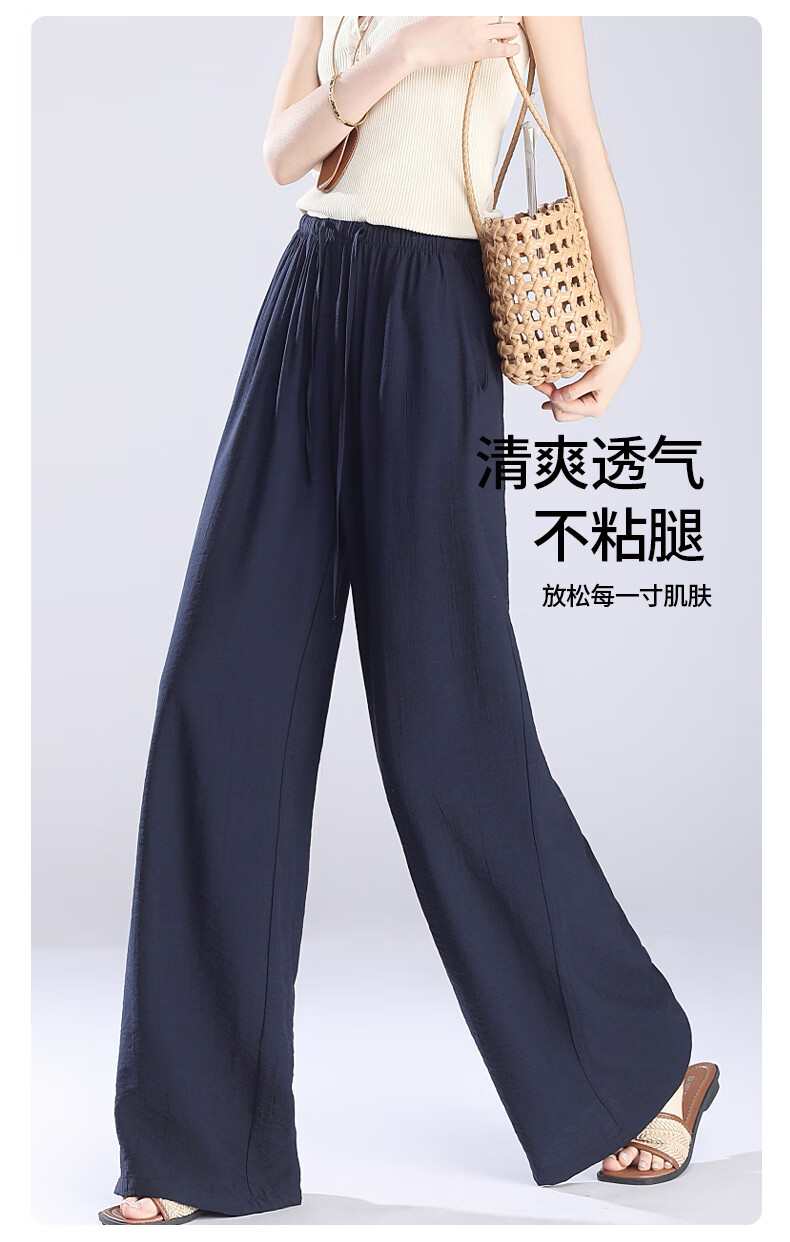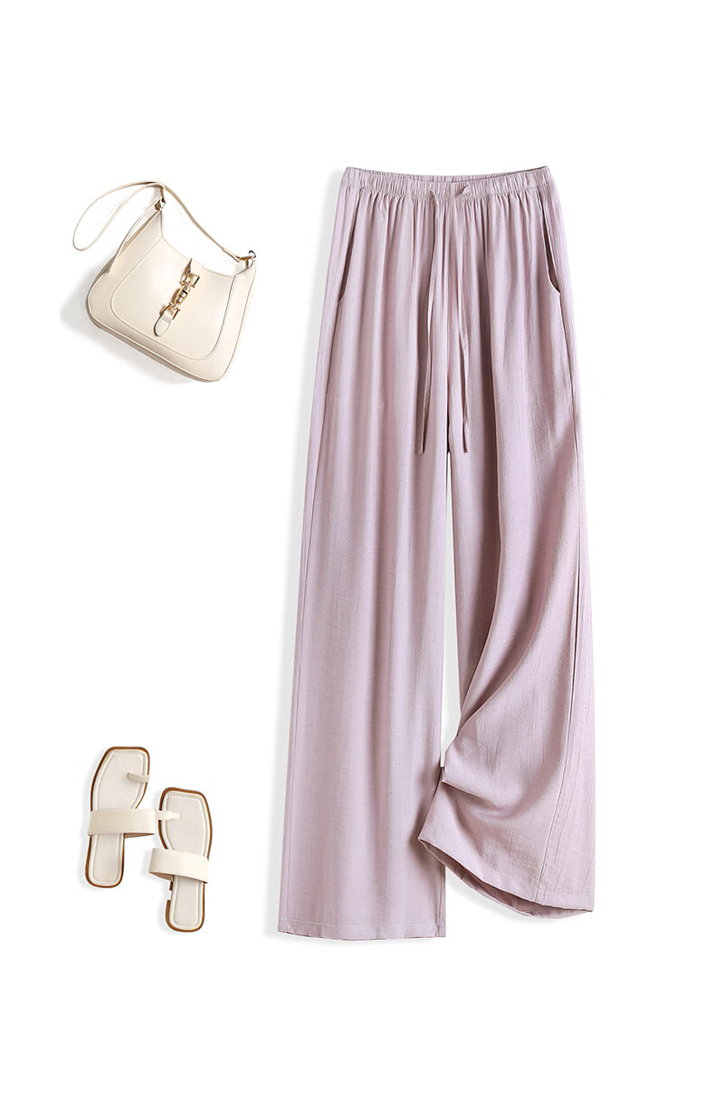 Luo Meng natural linen wide-leg pants for women, high-end summer thin, breathable, drapey, high-waisted, straight, all-match floor mopping pants.