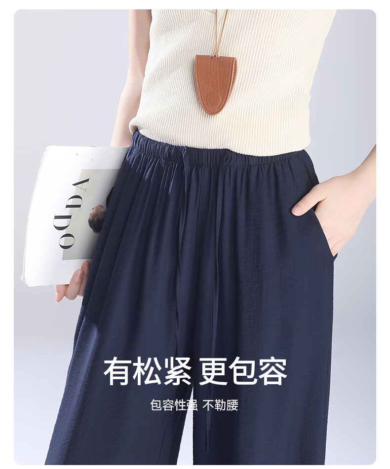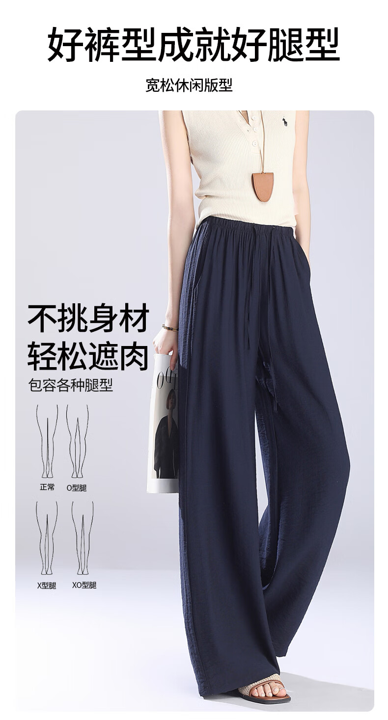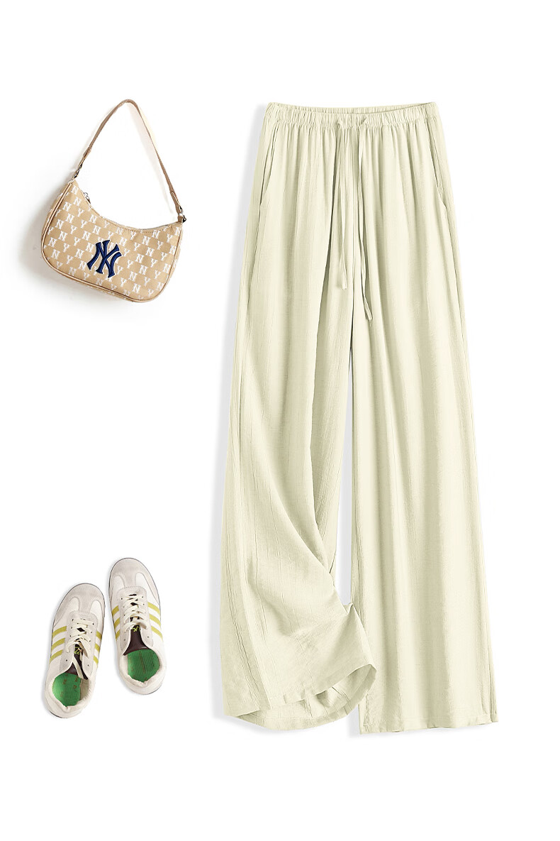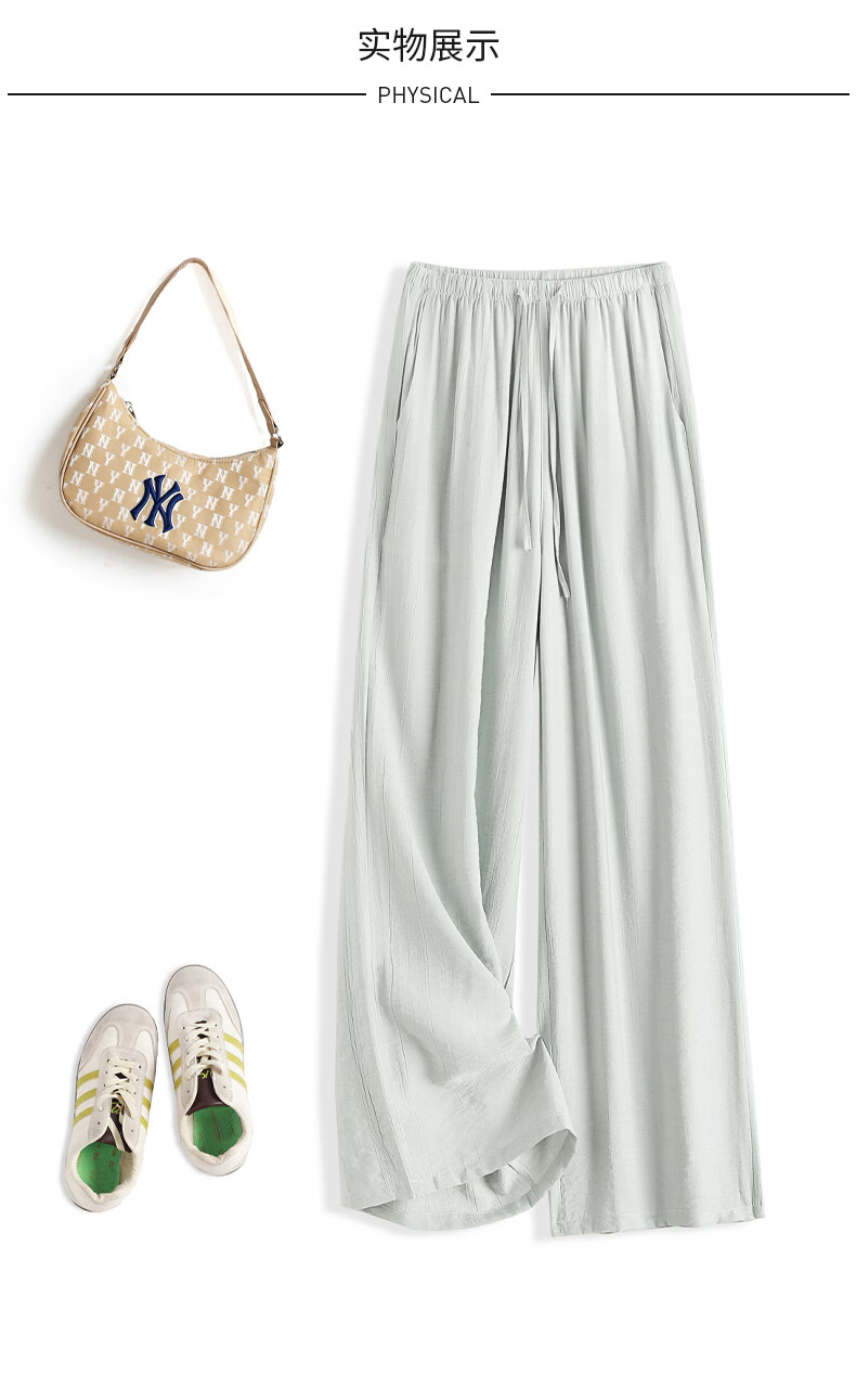 Luo Meng natural linen wide-leg pants for women, high-end summer thin, breathable, drapey, high-waisted, straight, all-match floor mopping pants.