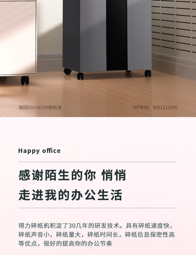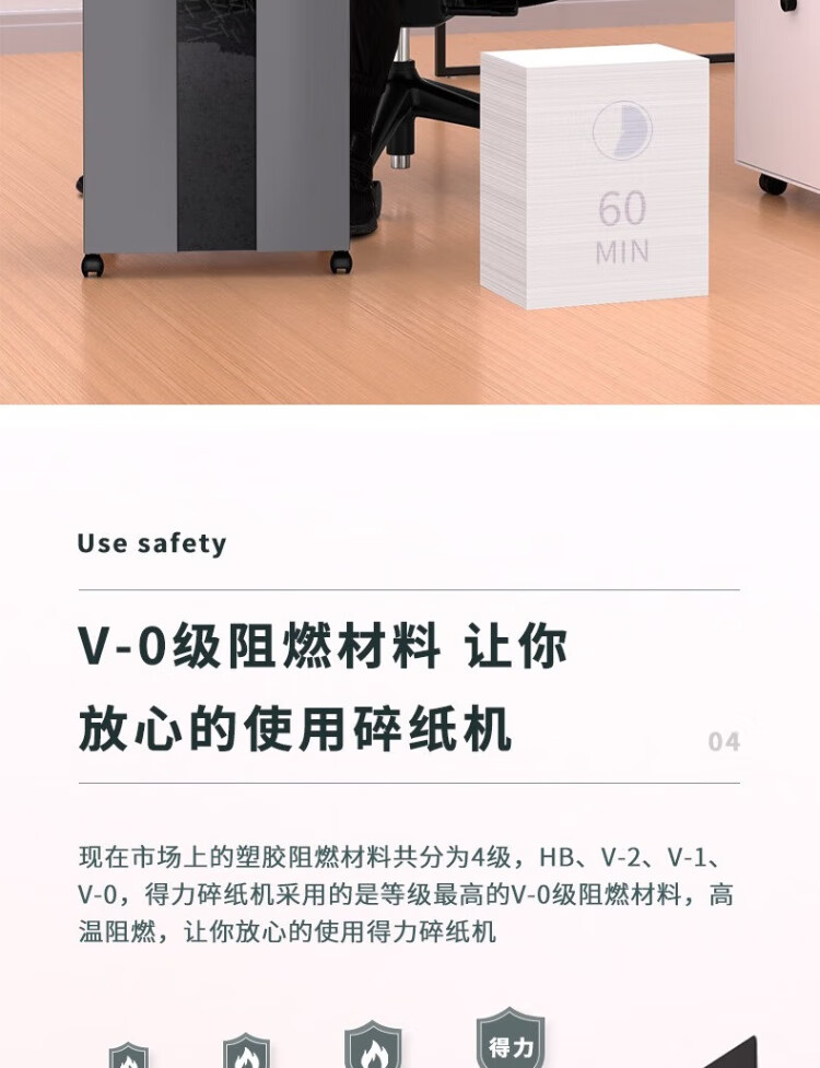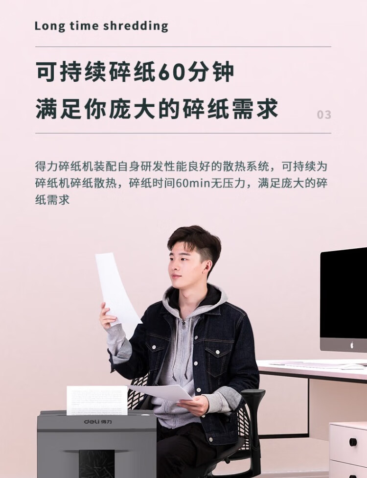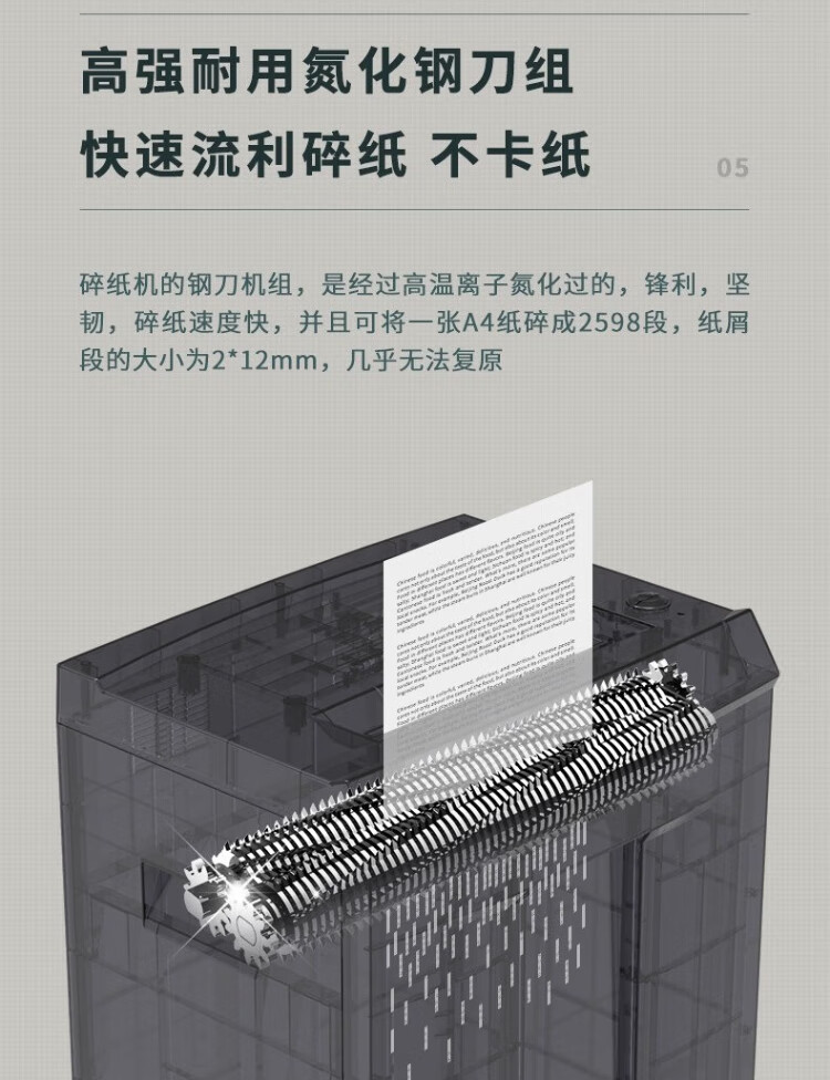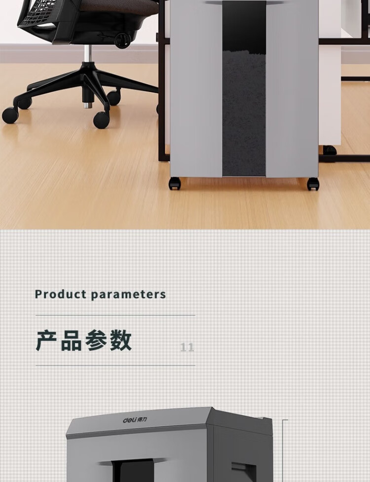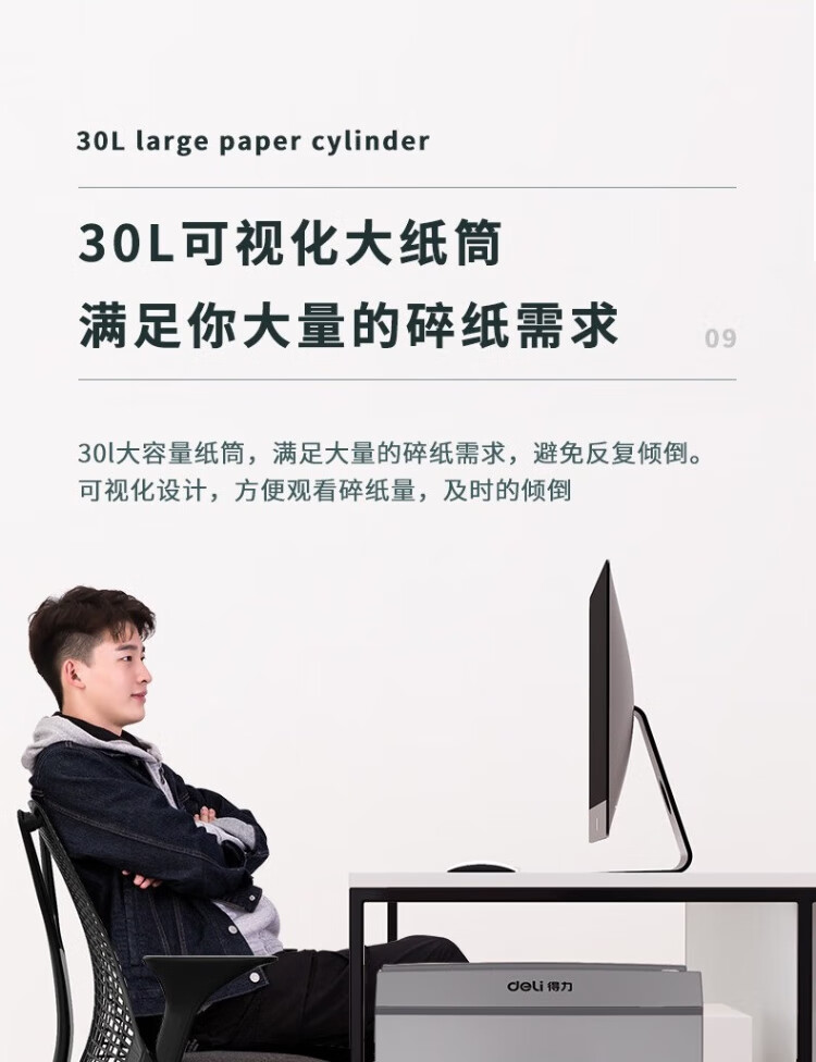 得力(deli)碎纸机 5级保密商务办公家用粉碎机 碎cd卡片单次16张 30L可视容量 连碎60分钟9906
