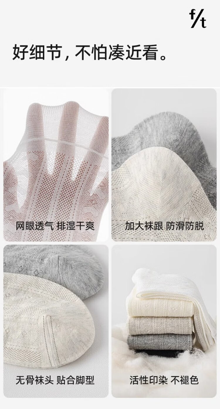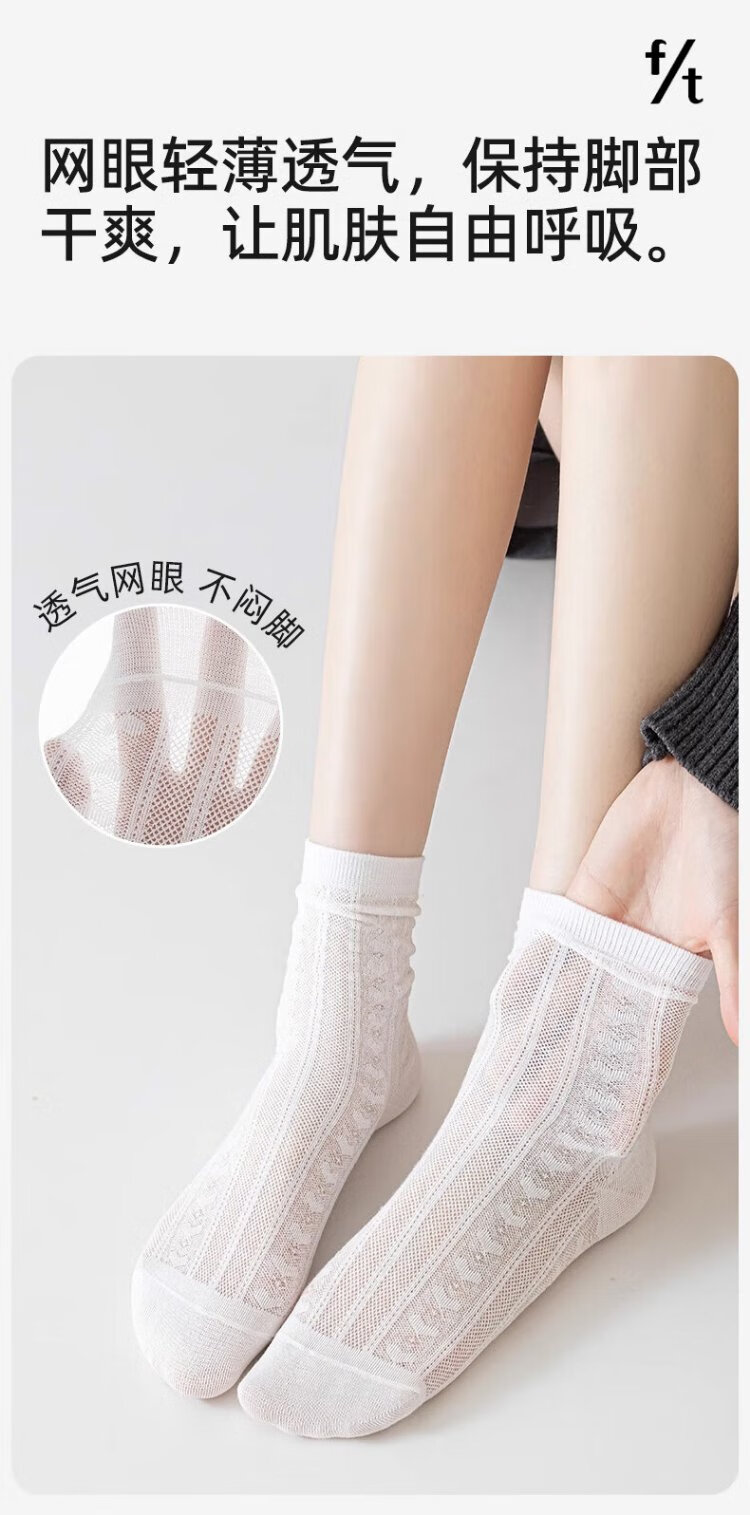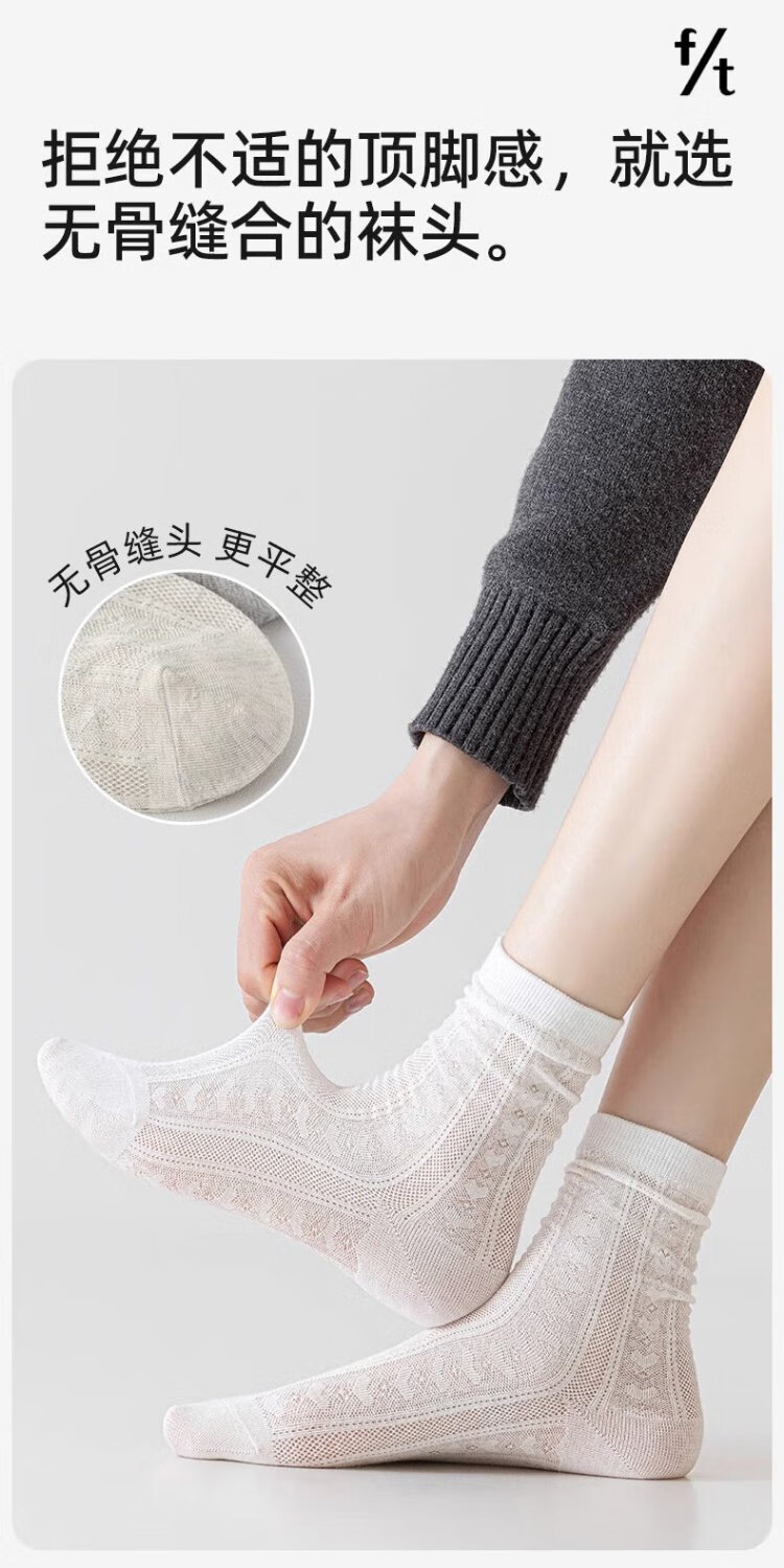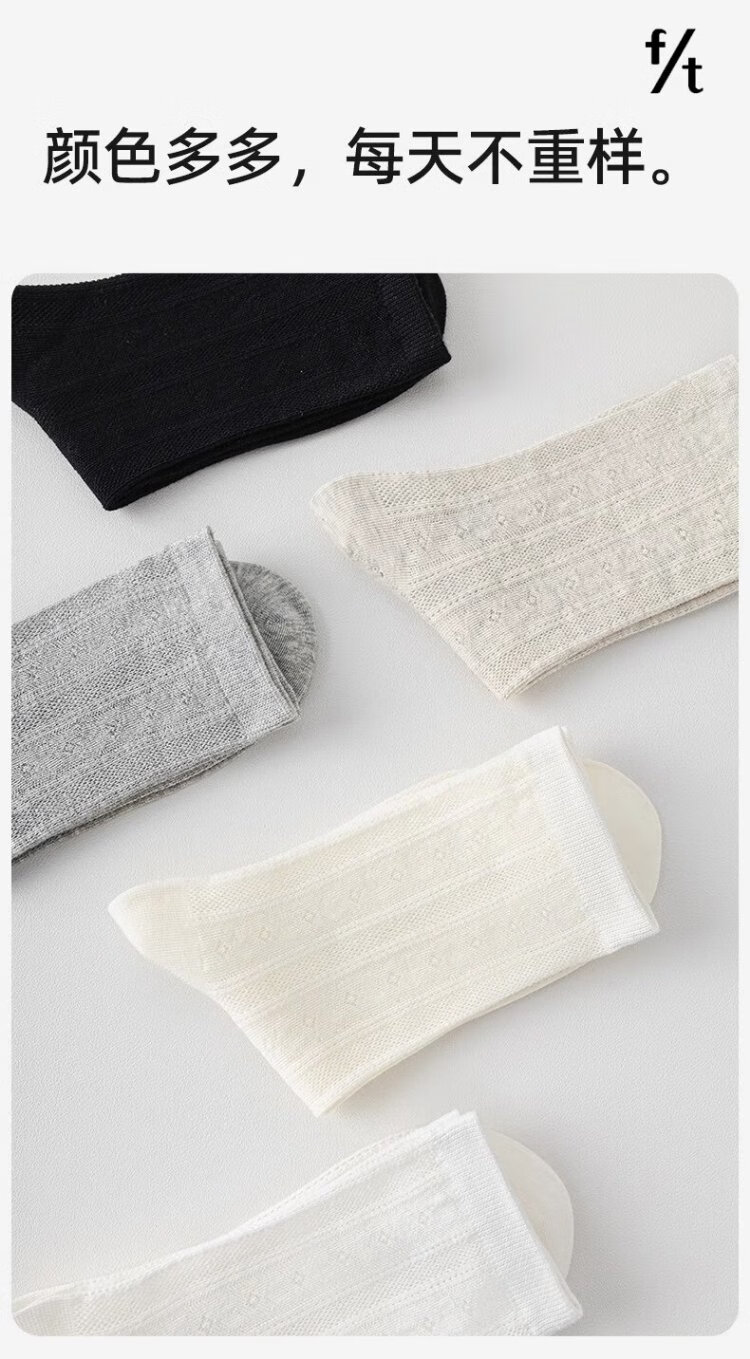 FitonTon 5 pairs of socks for women in summer thin 100% cotton solid color mesh boneless ballet wind tube socks breathable pile socks