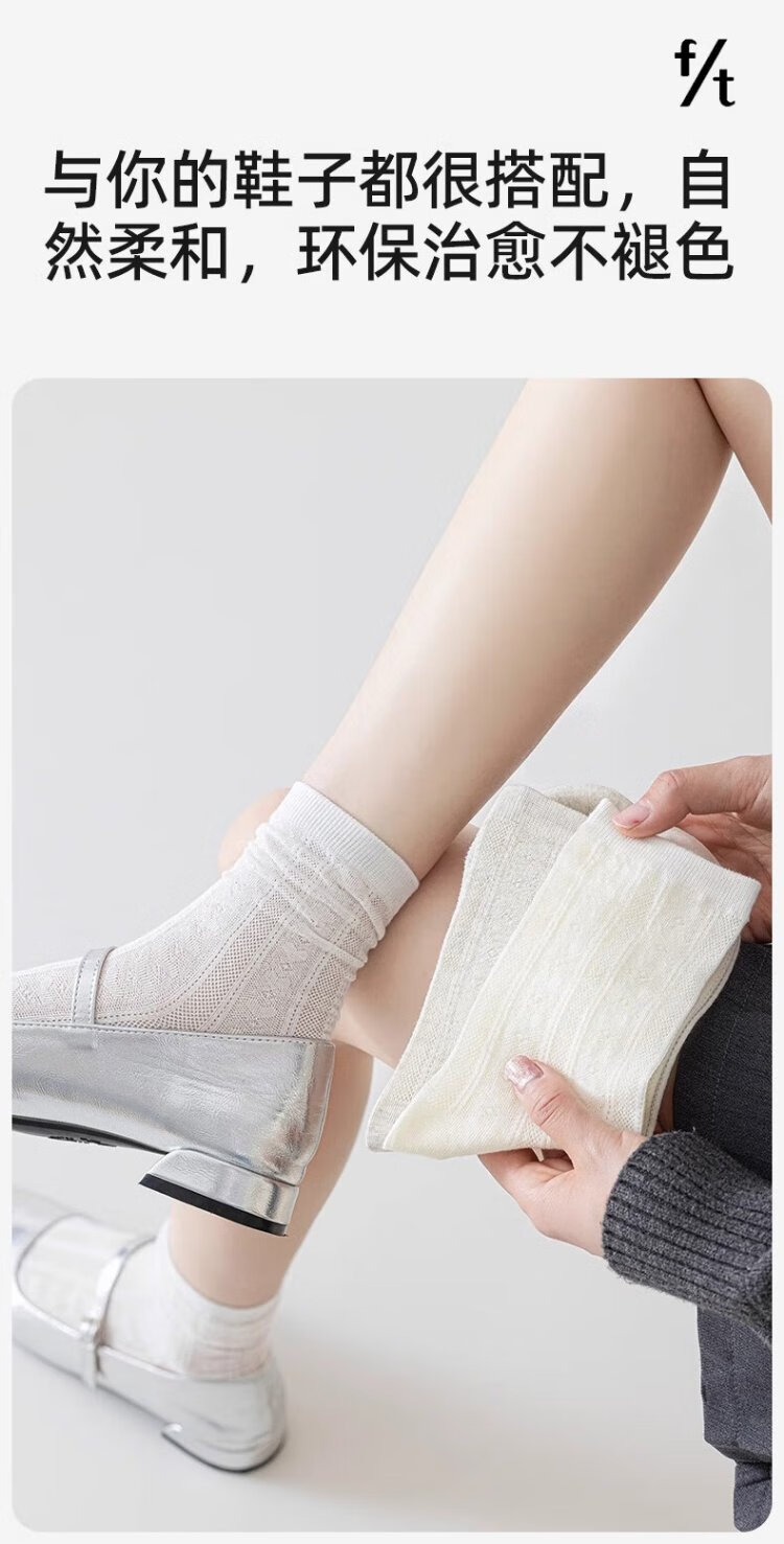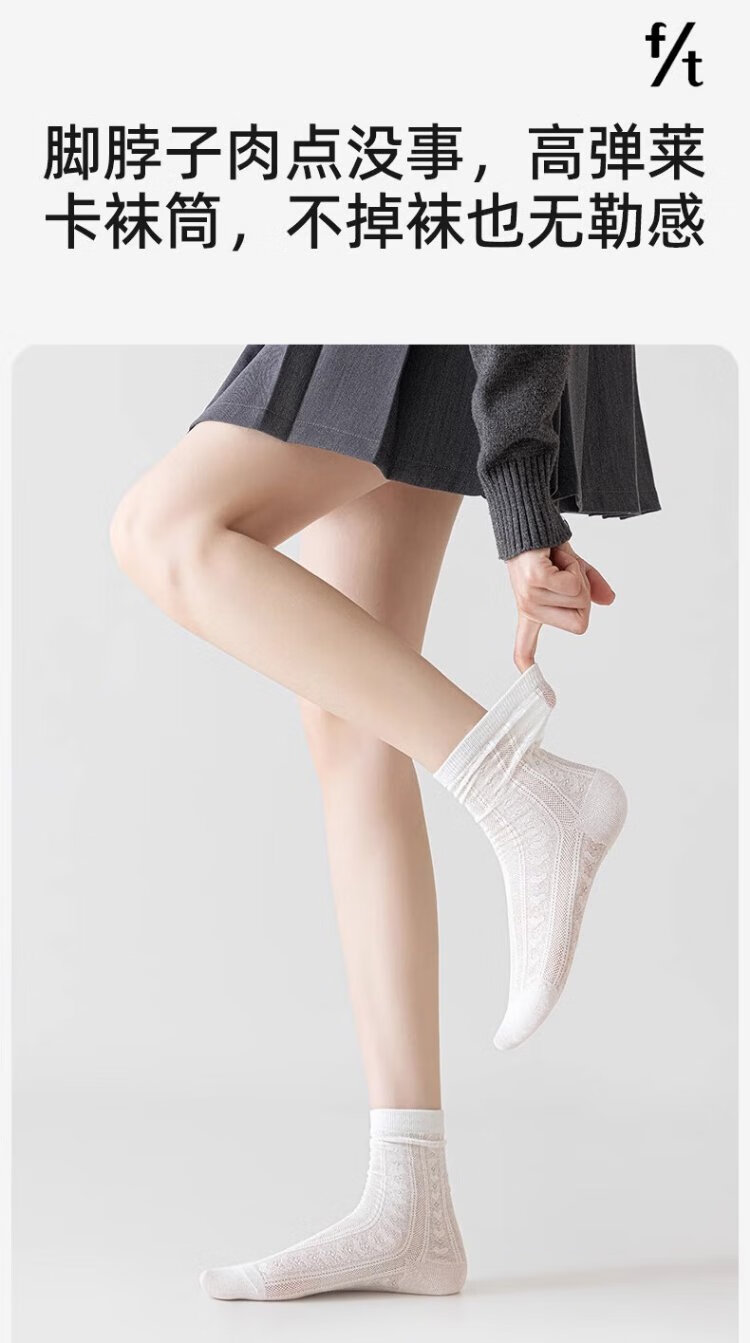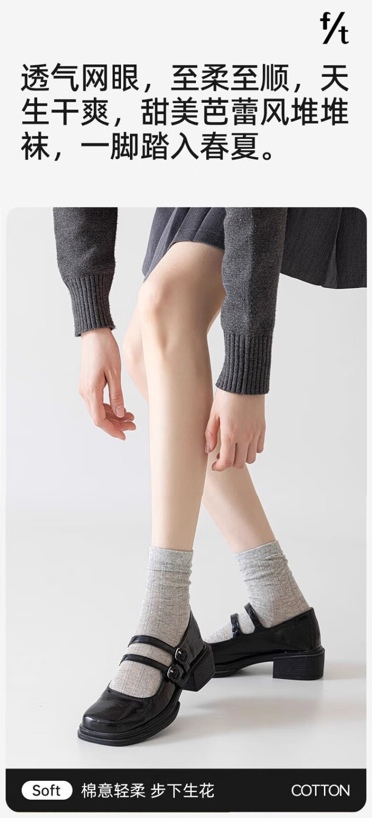 FitonTon 5 pairs of socks for women in summer thin 100% cotton solid color mesh boneless ballet wind tube socks breathable pile socks