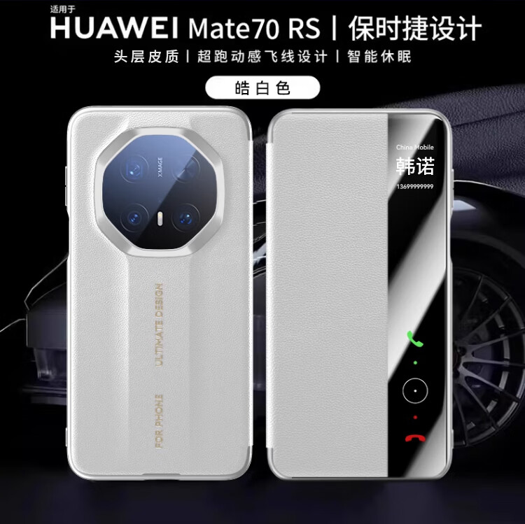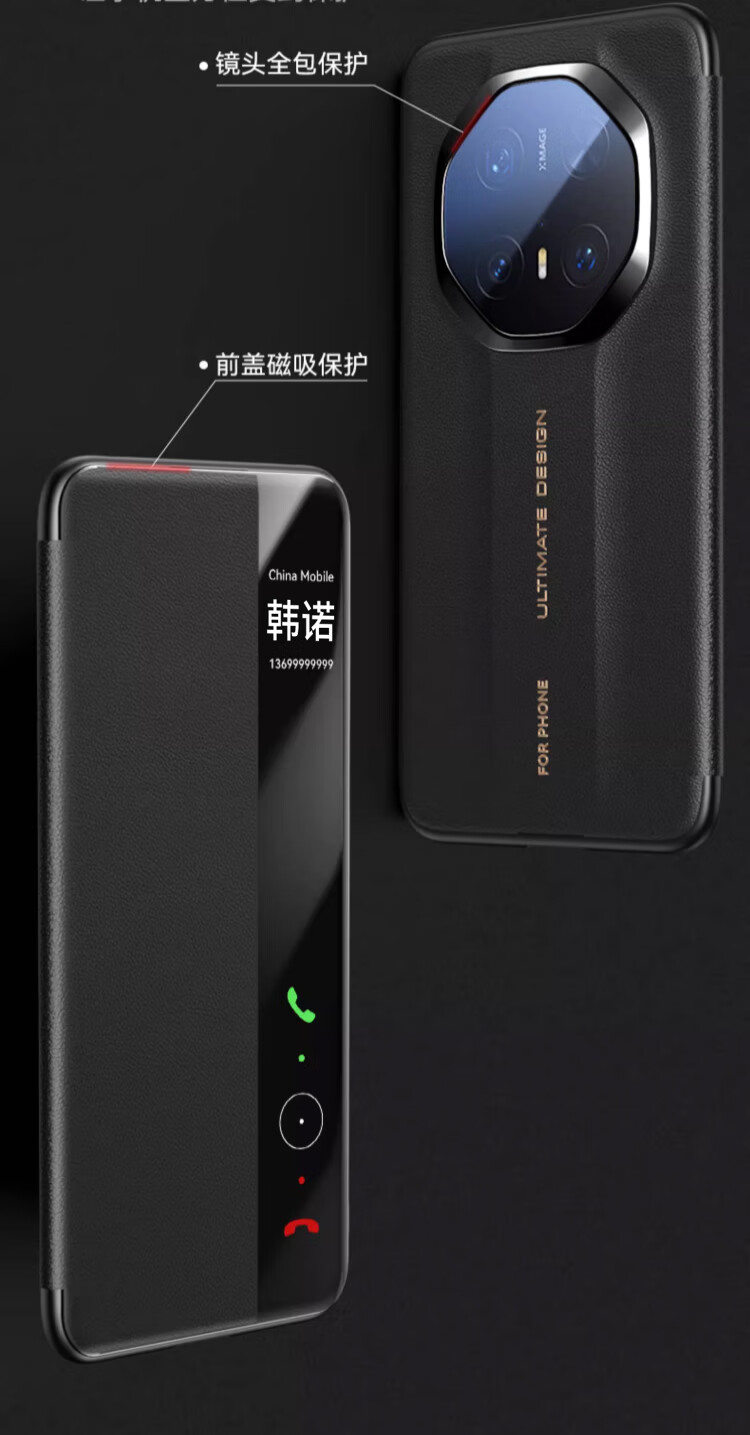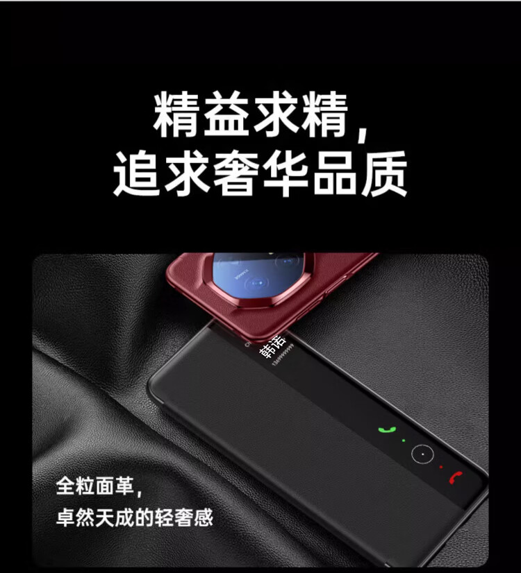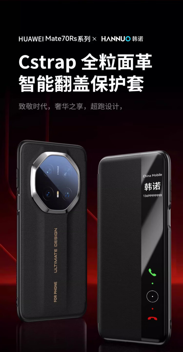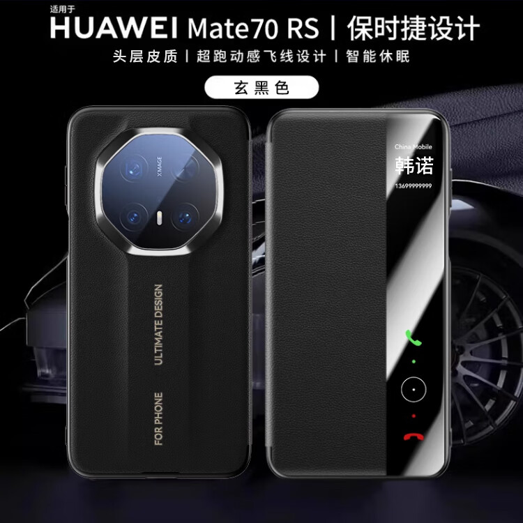韩诺适用mate70rs手机壳华为mate70rs非凡大师保护套新款皮质智能视窗免翻盖皮套防摔超薄全包 玄黑色