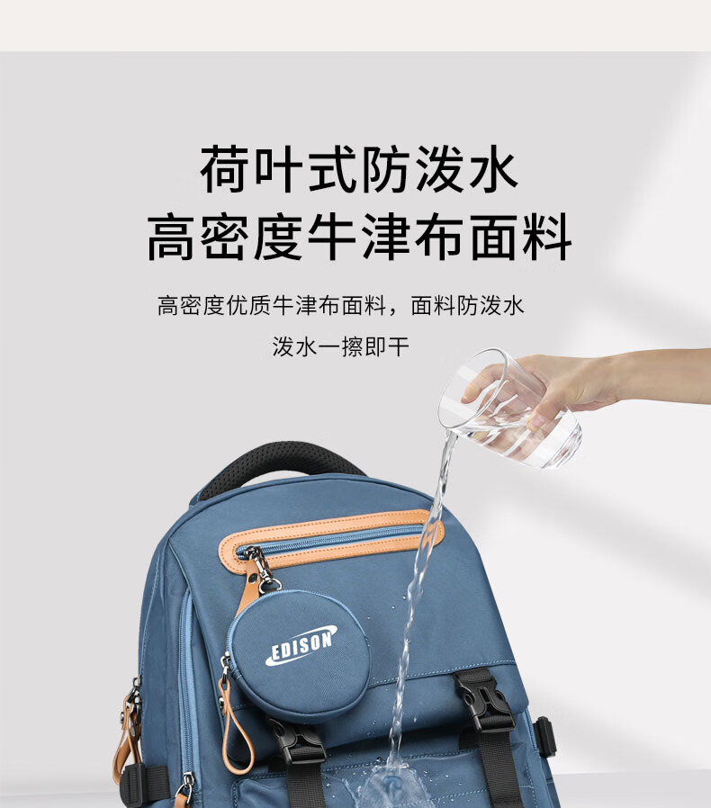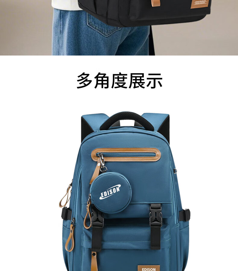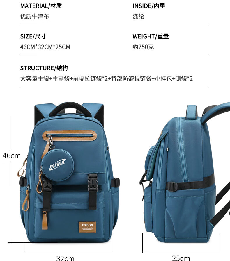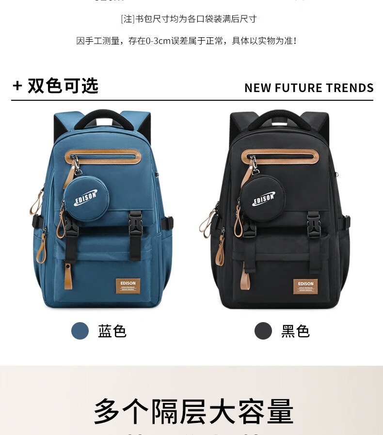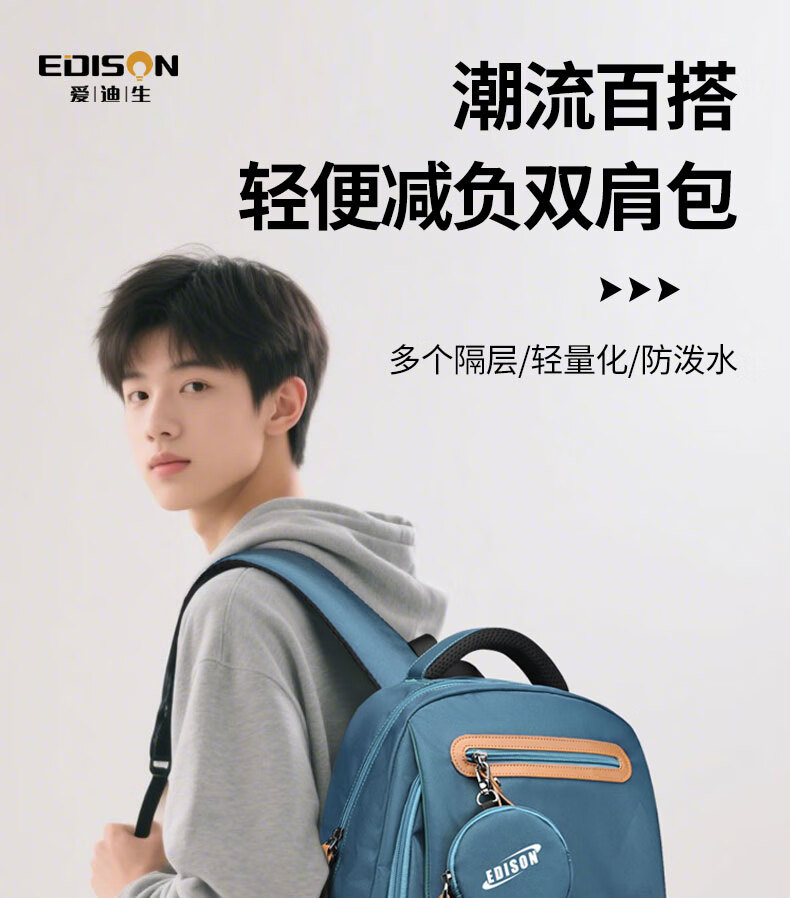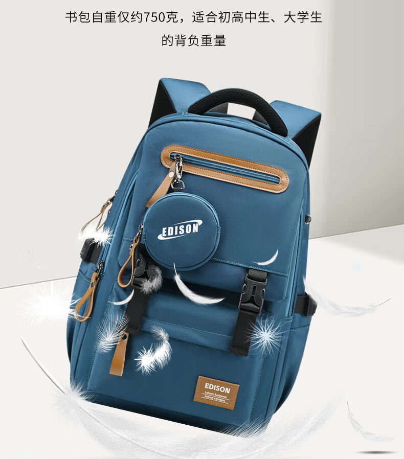 Edison inventor junior high school student schoolbag male burden reduction spine protection trendy high school student female large capacity backpack K072F-2 blue