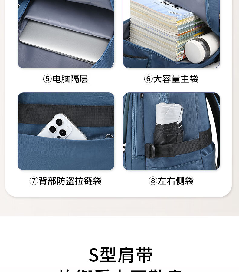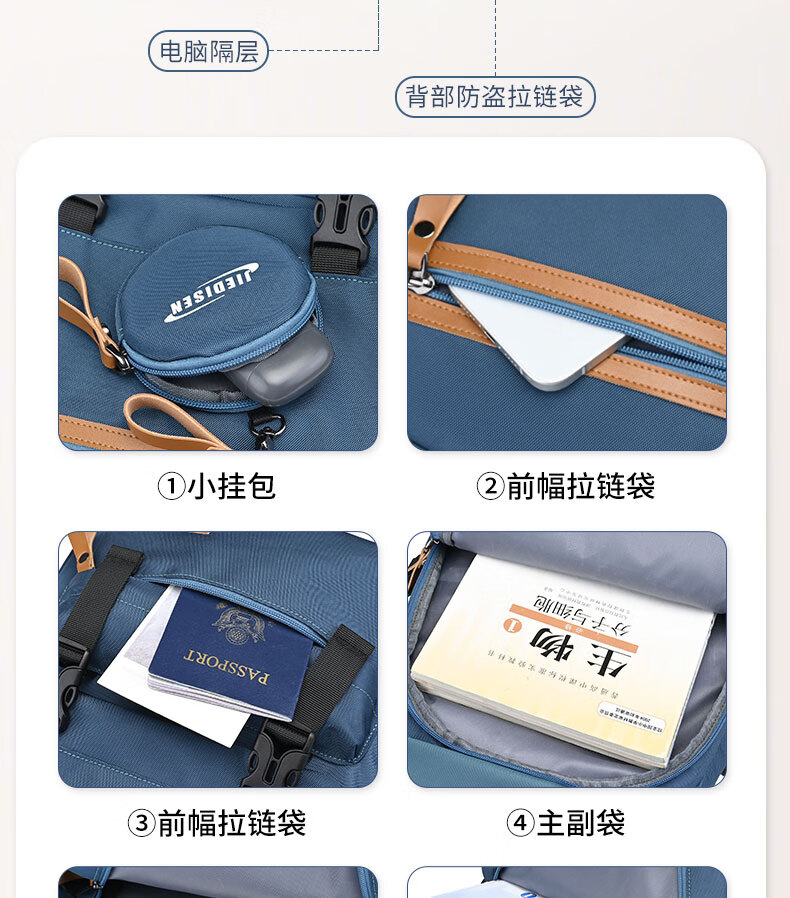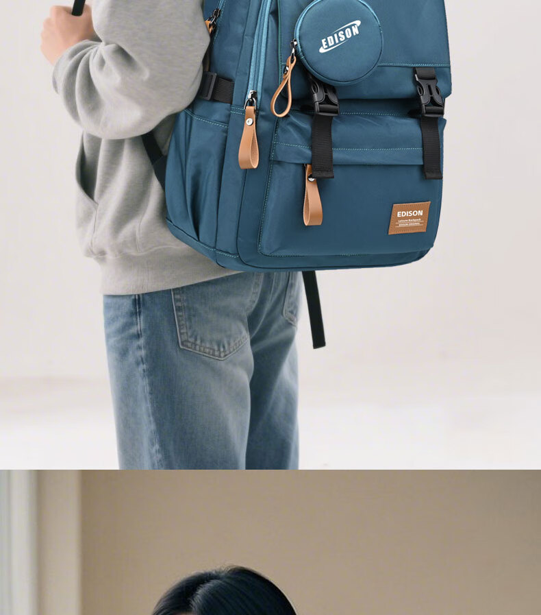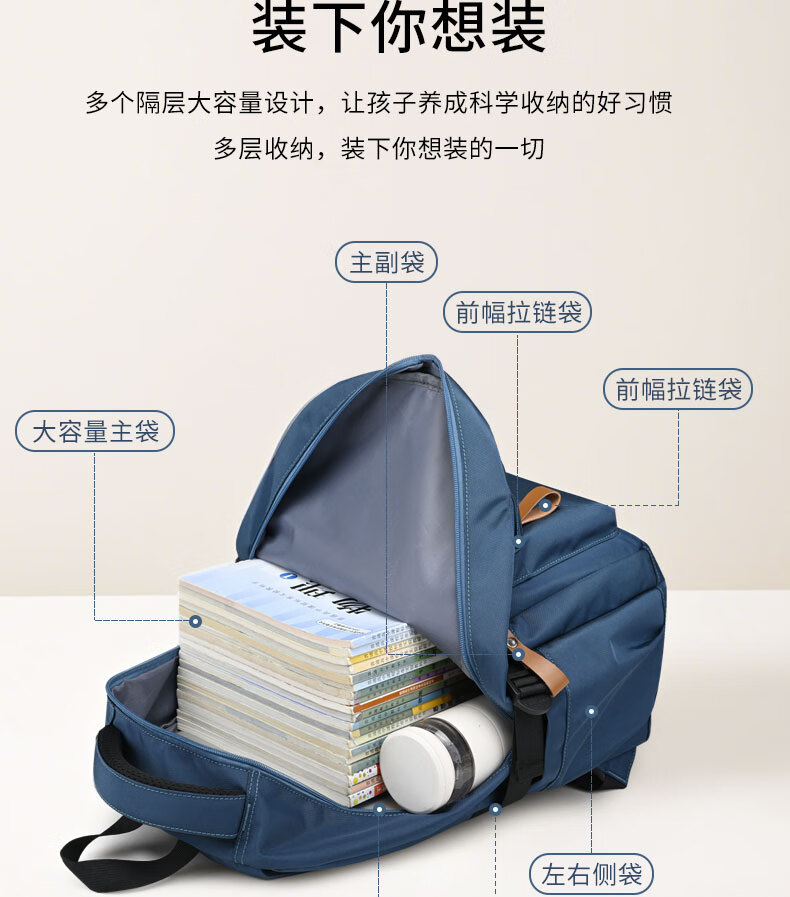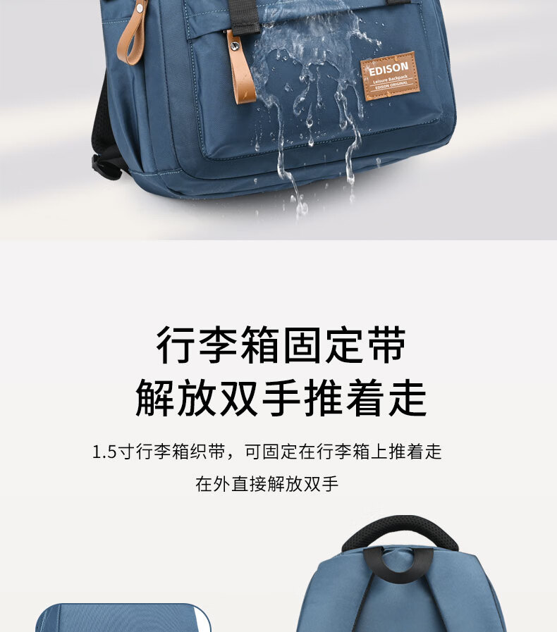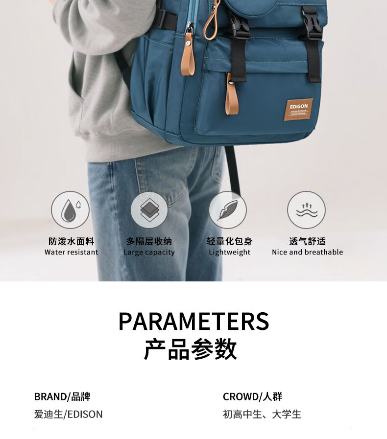 Edison inventor junior high school student schoolbag male burden reduction spine protection trendy high school student female large capacity backpack K072F-2 blue