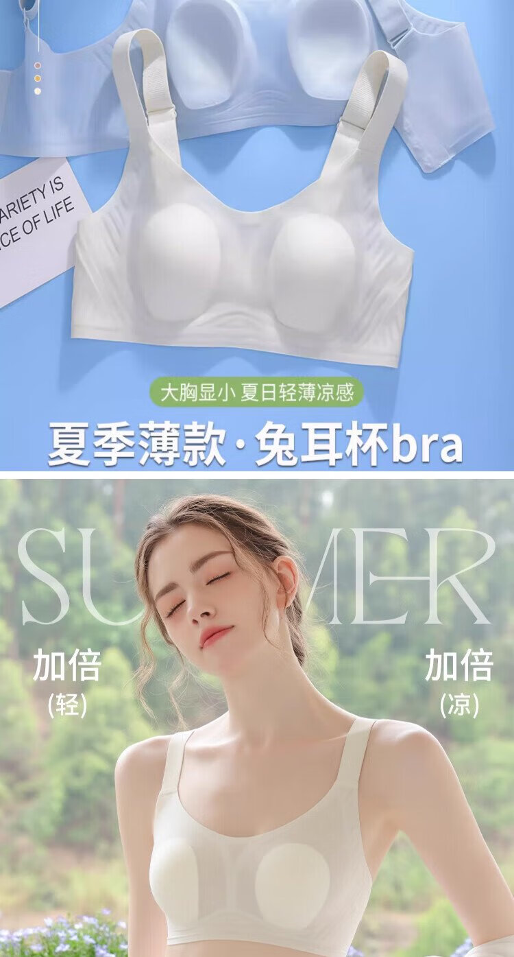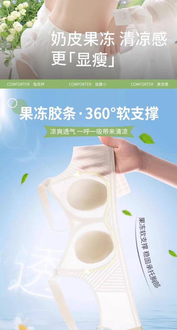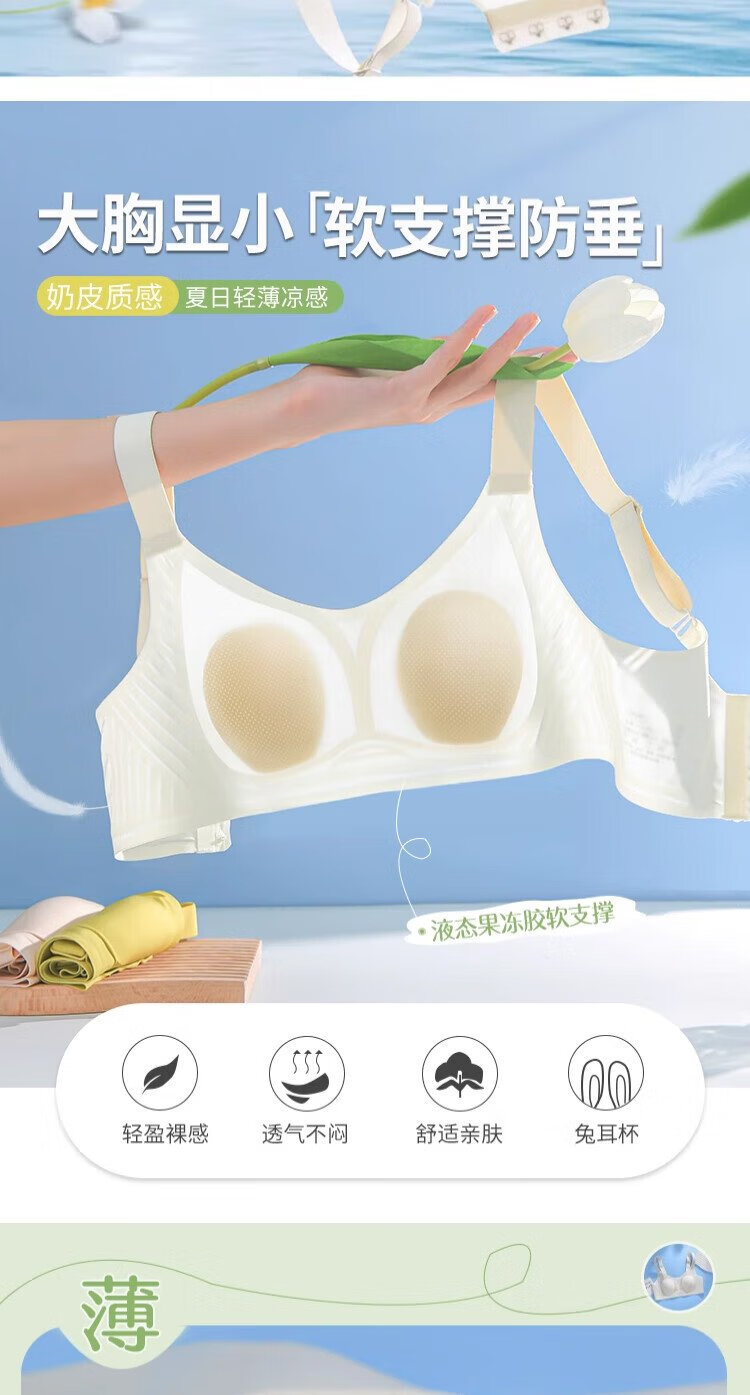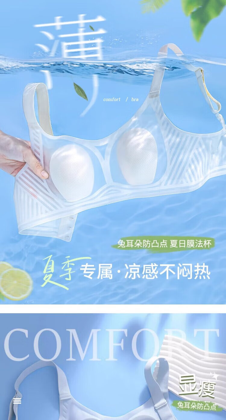 古今(GUJIN)兔耳朵凉感内衣女夏季薄款大胸显小无痕果冻软支撑夏天超薄文胸