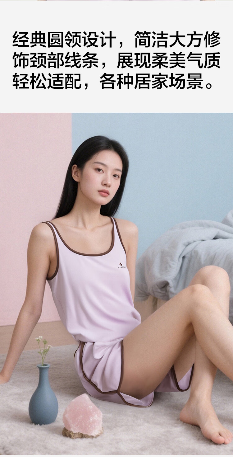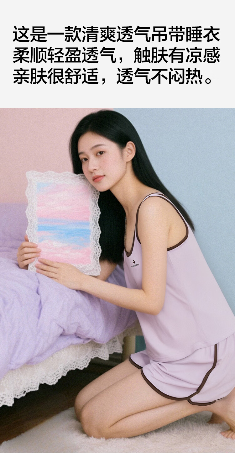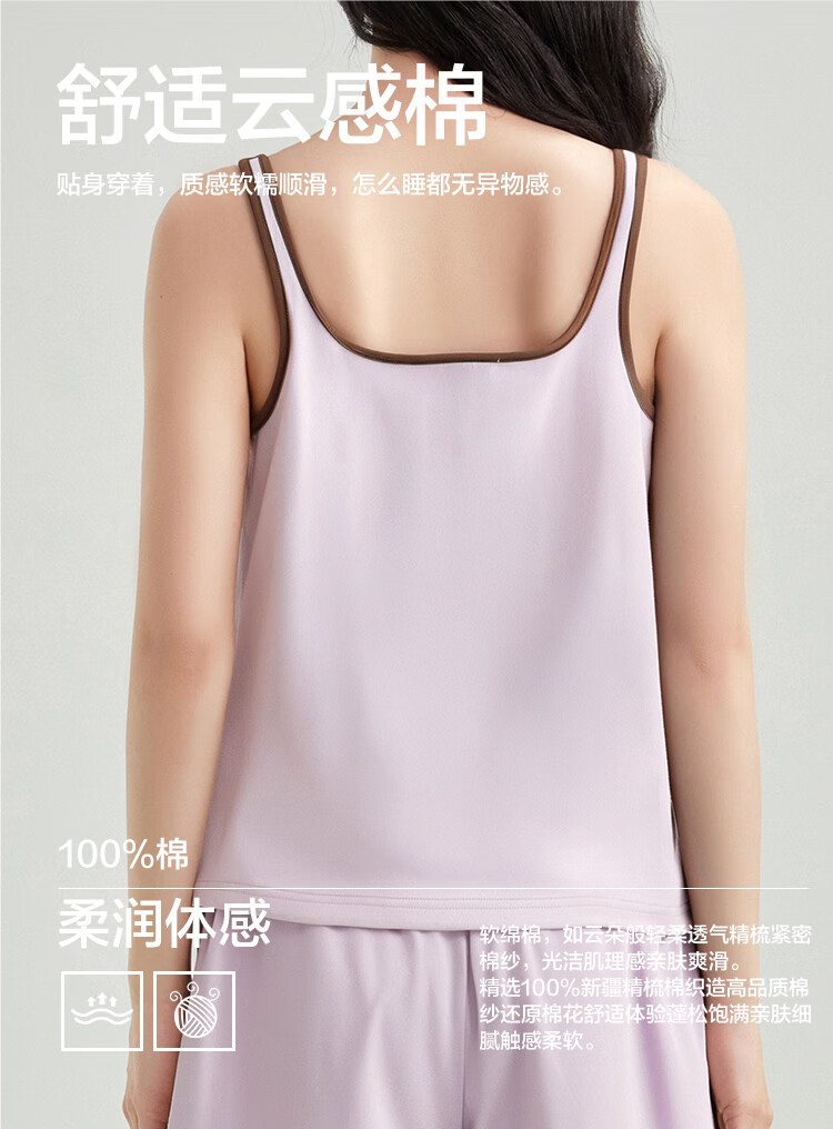 有棵树100%棉女士睡衣夏季25年新款全棉吊带短裤休闲家居服可外穿